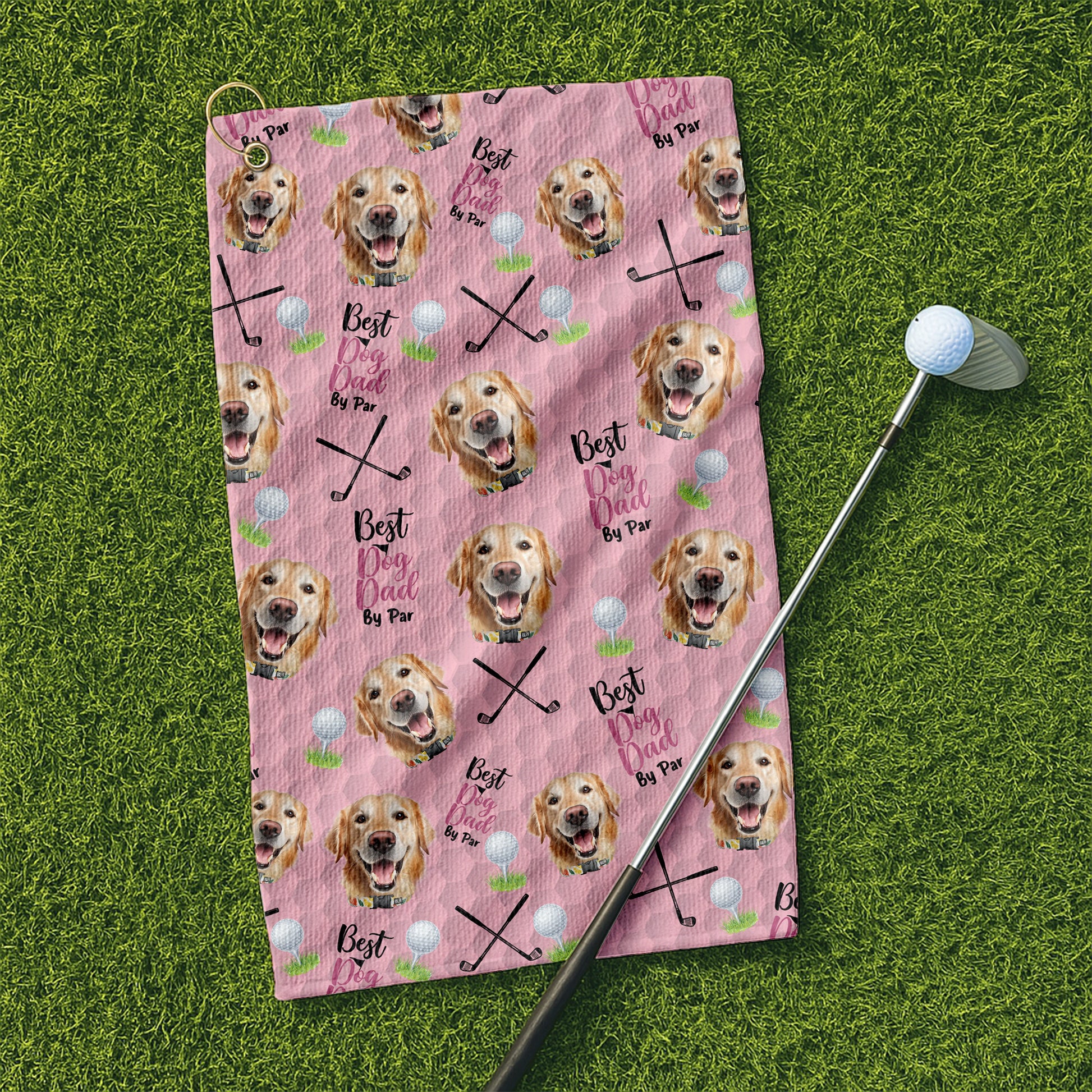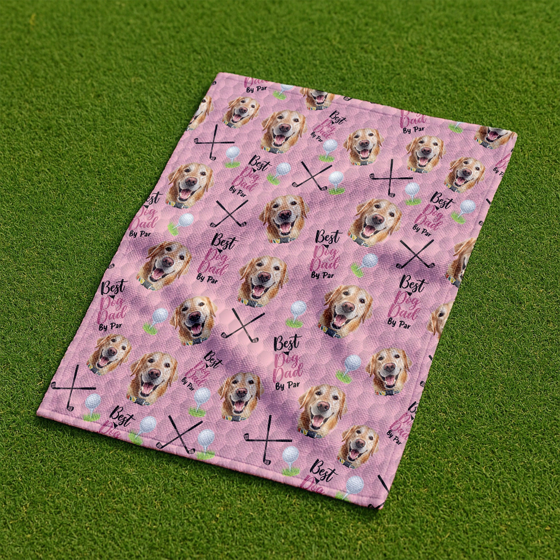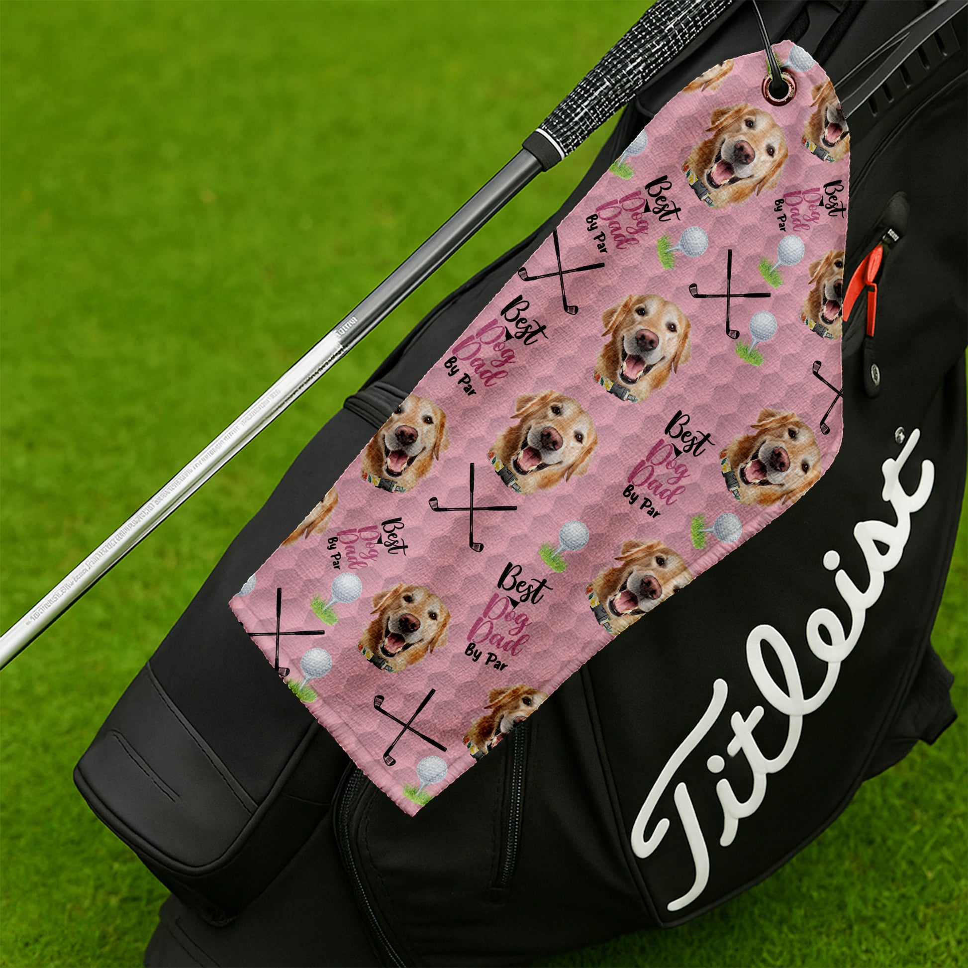 Best Dog Dad By Par Pink Golf Towel, Custom Pet Face Golf Towel, Christmas Golf Gift