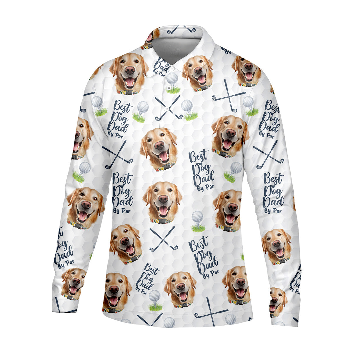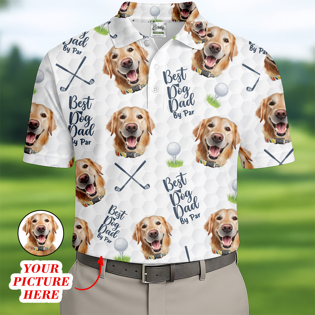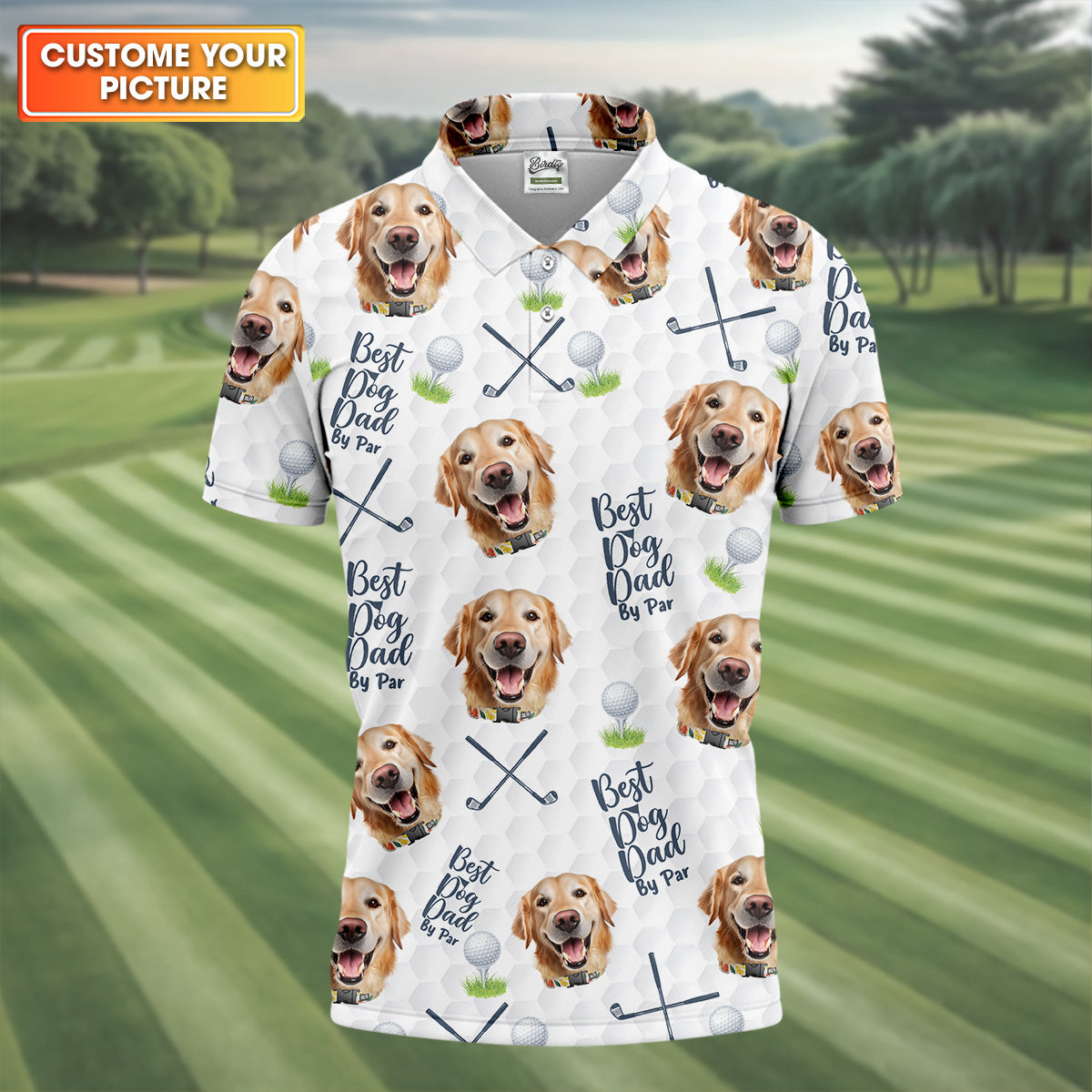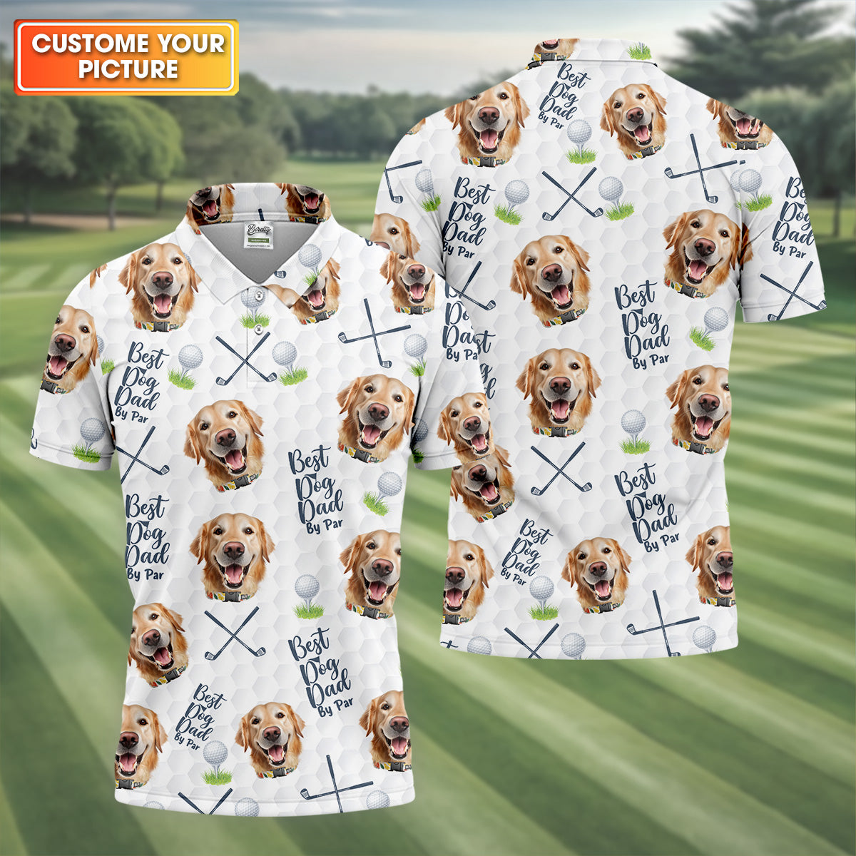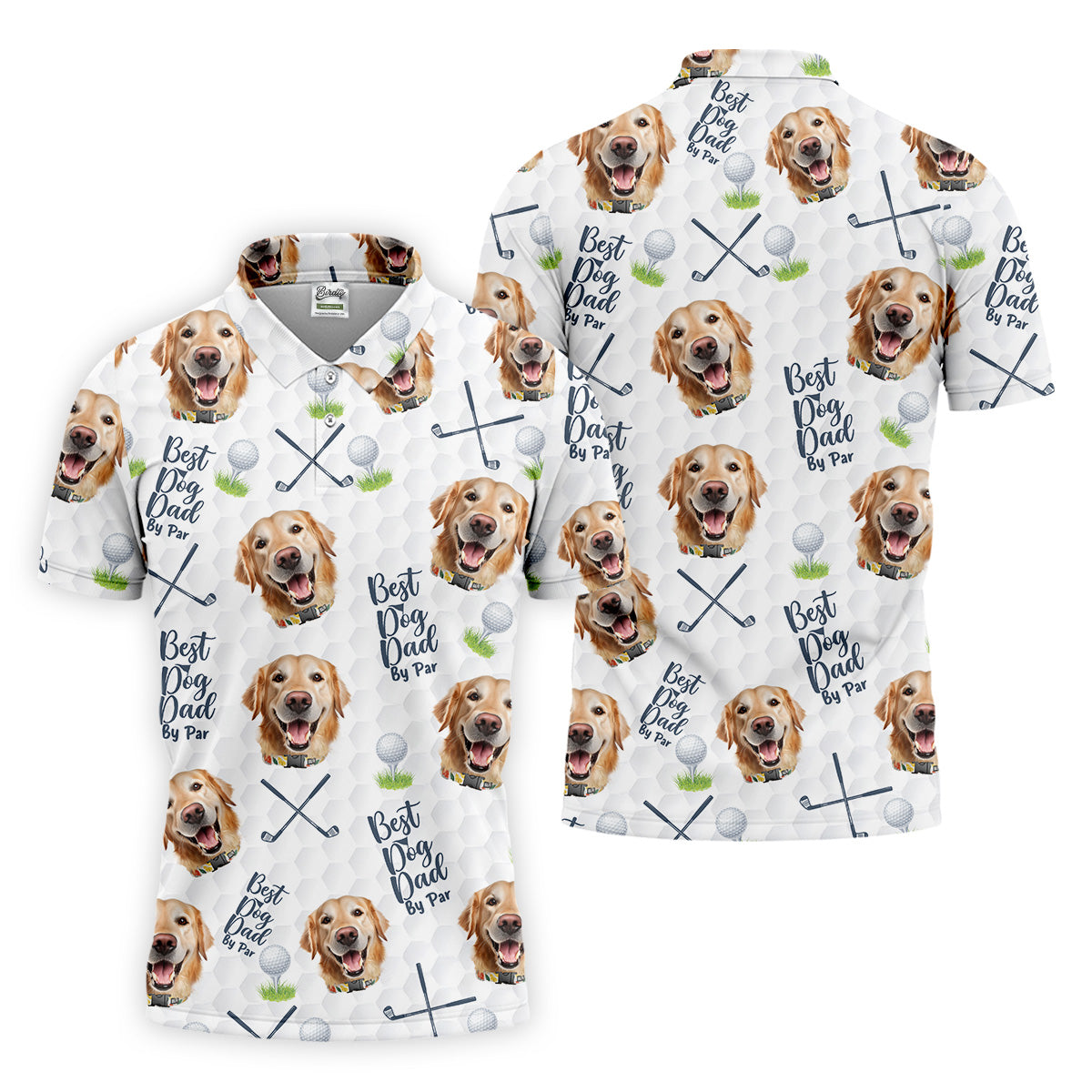 Best Dog Dad By Par White Custom Face Golf Shirt, Funny Golf Polo Shirt, Dad Golf Gift