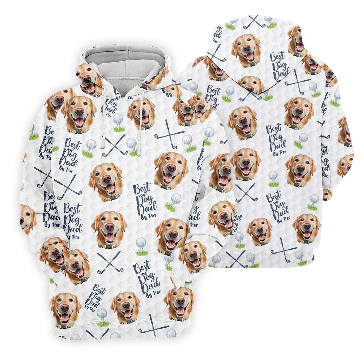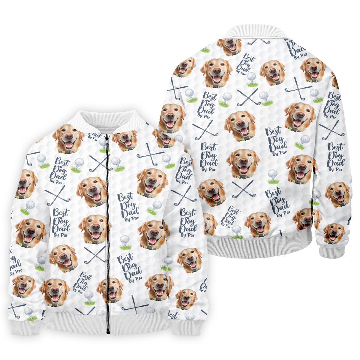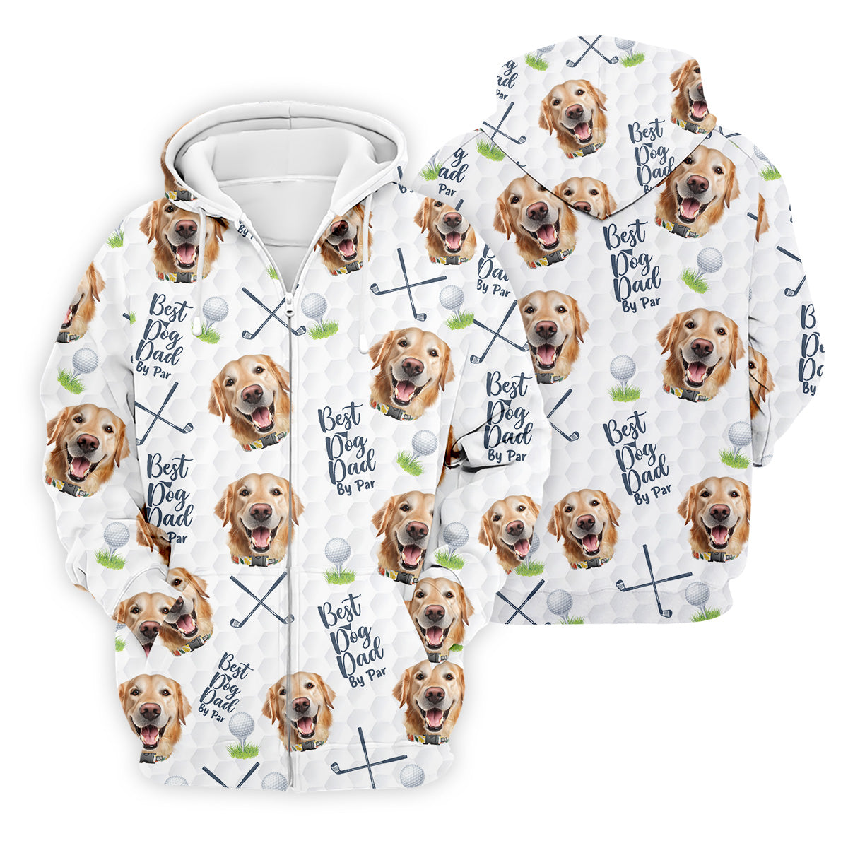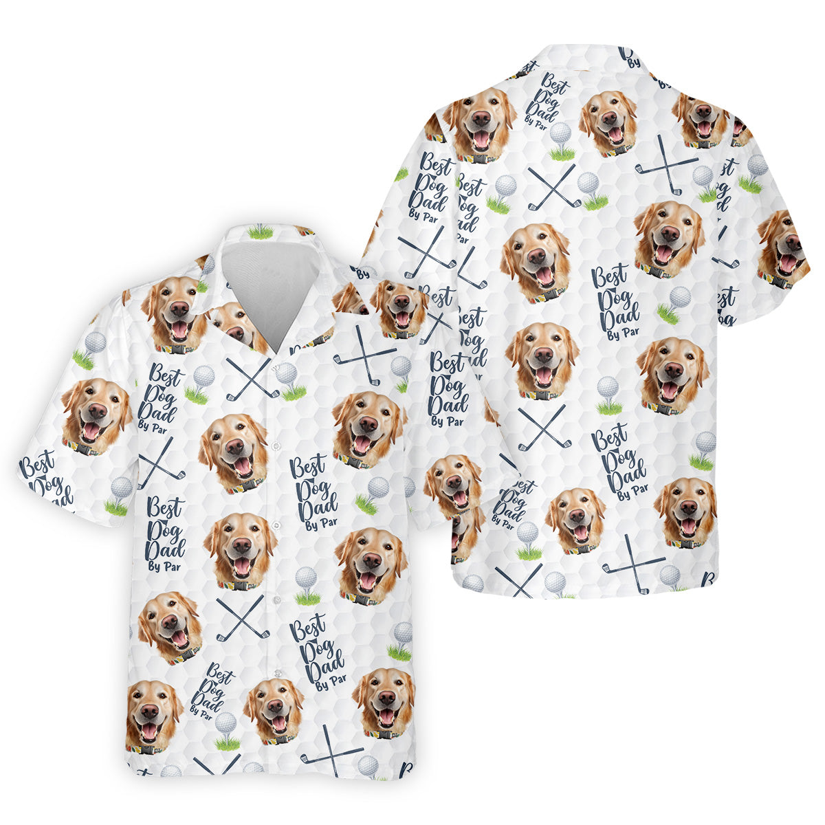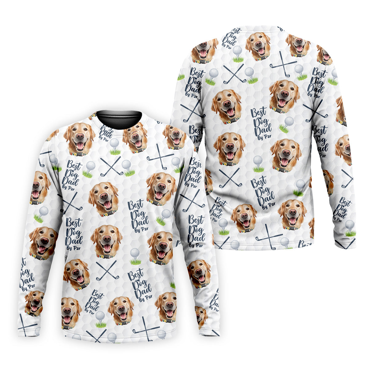 Best Dog Dad By Par White Custom Face Golf Shirt, Funny Golf Polo Shirt, Dad Golf Gift