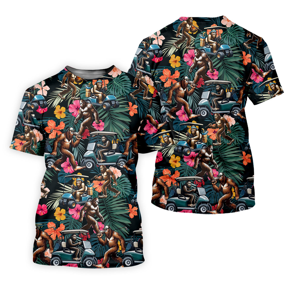 Bigfoot Golf Cart Tropical Floral Golf Tops For Men, Hawaiian Golf Shirts, Golf Gift For Men