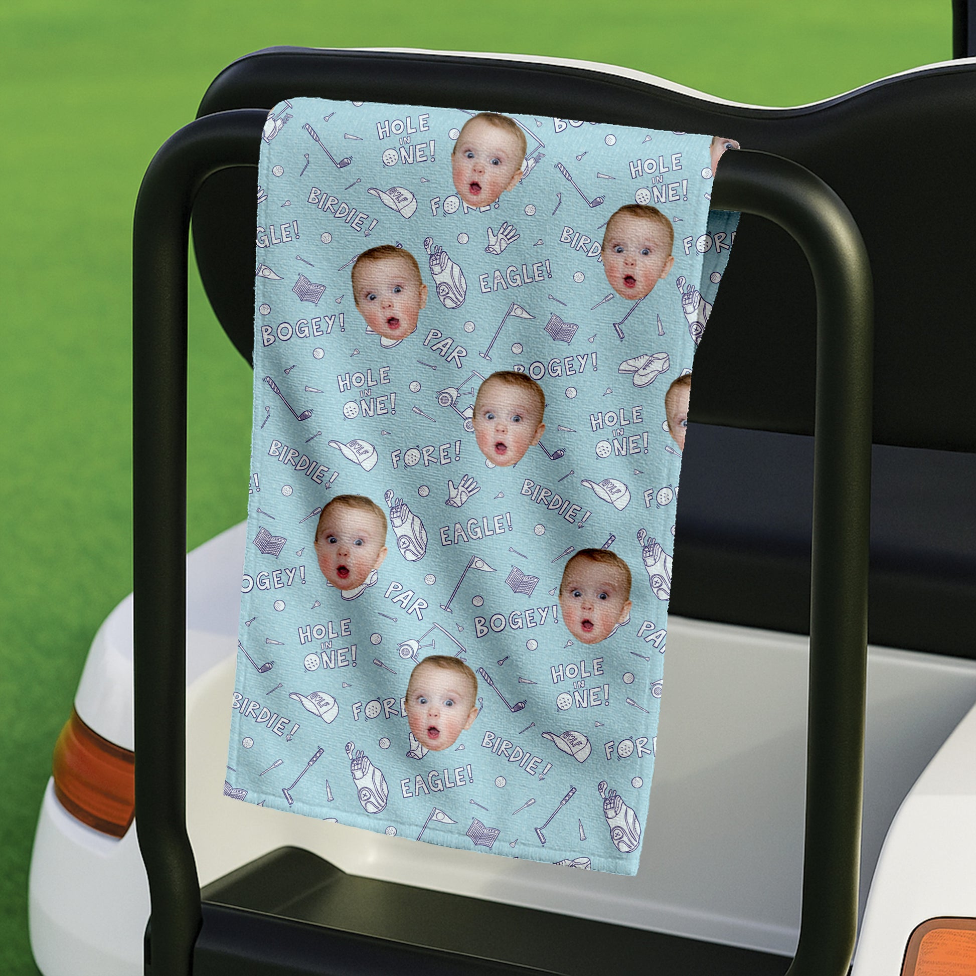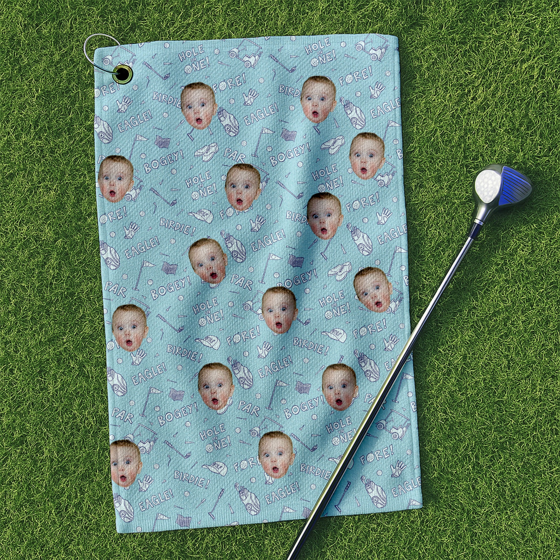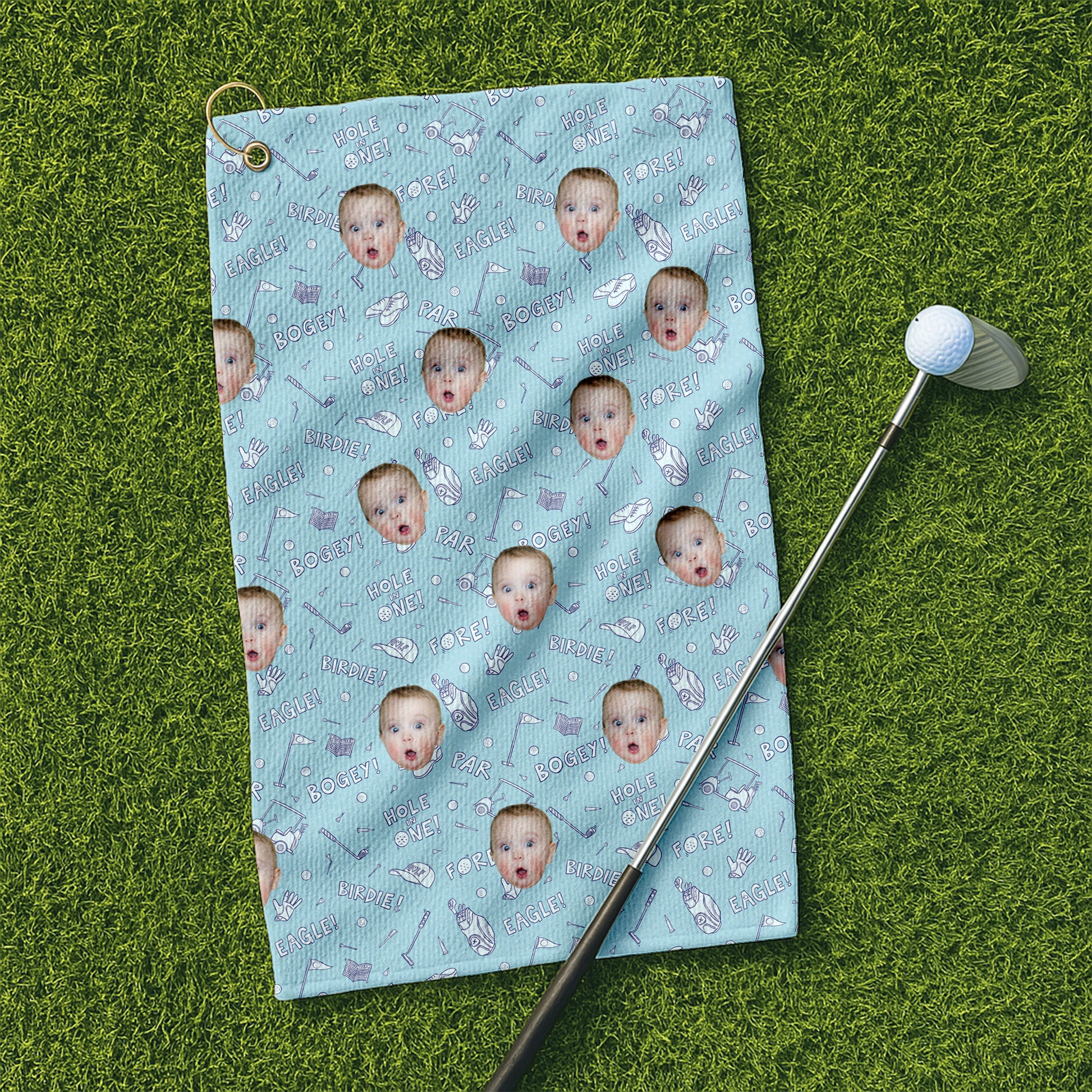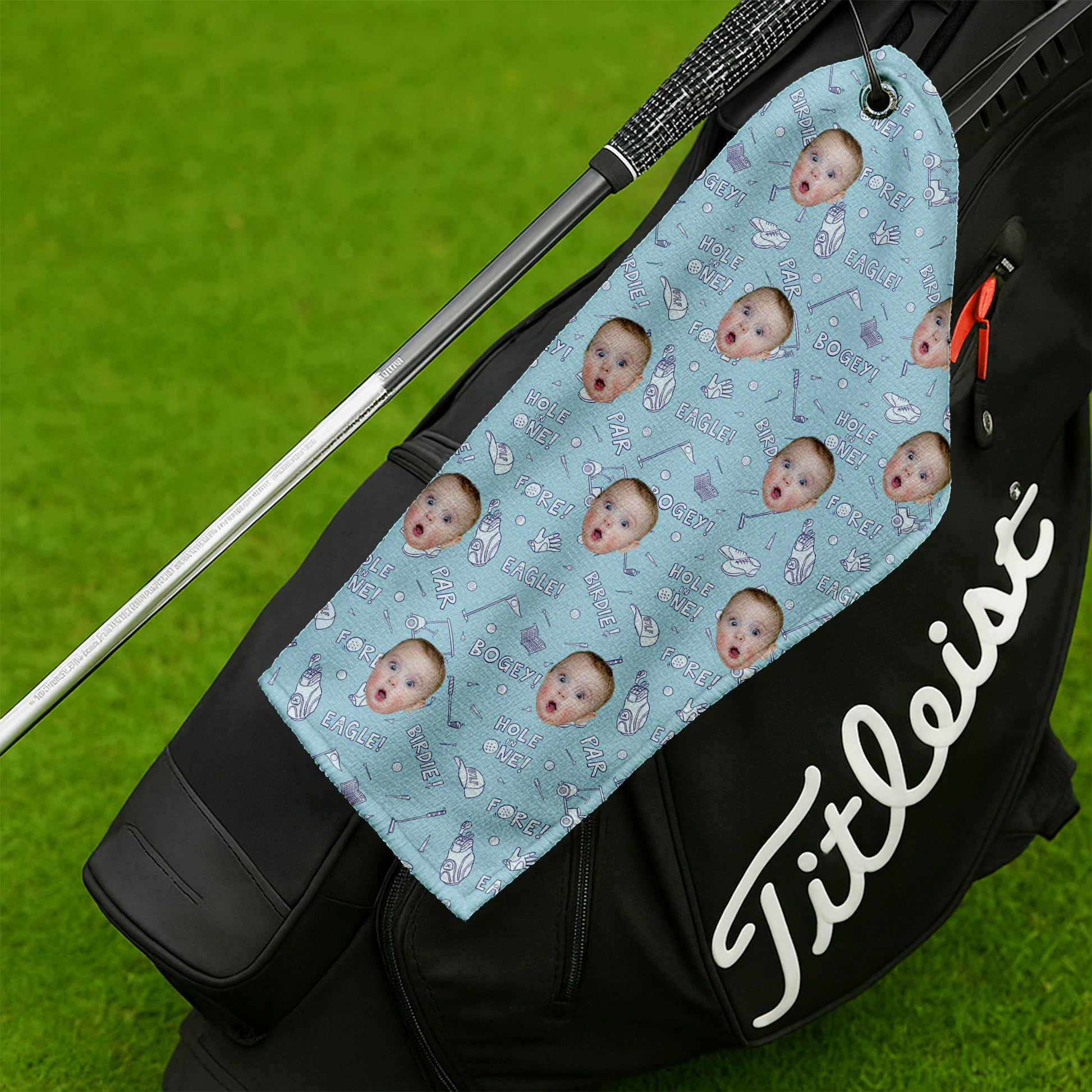 Birdie Bogey Eagle Par Custom Kid Face Microfiber Waffle Small Funny Golf Towel, Golf Rag, Dad Golf Gifts