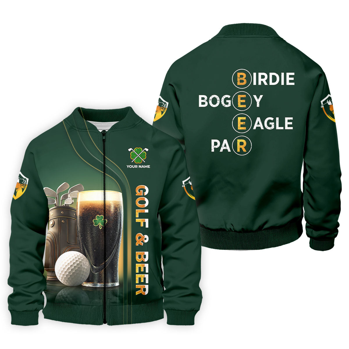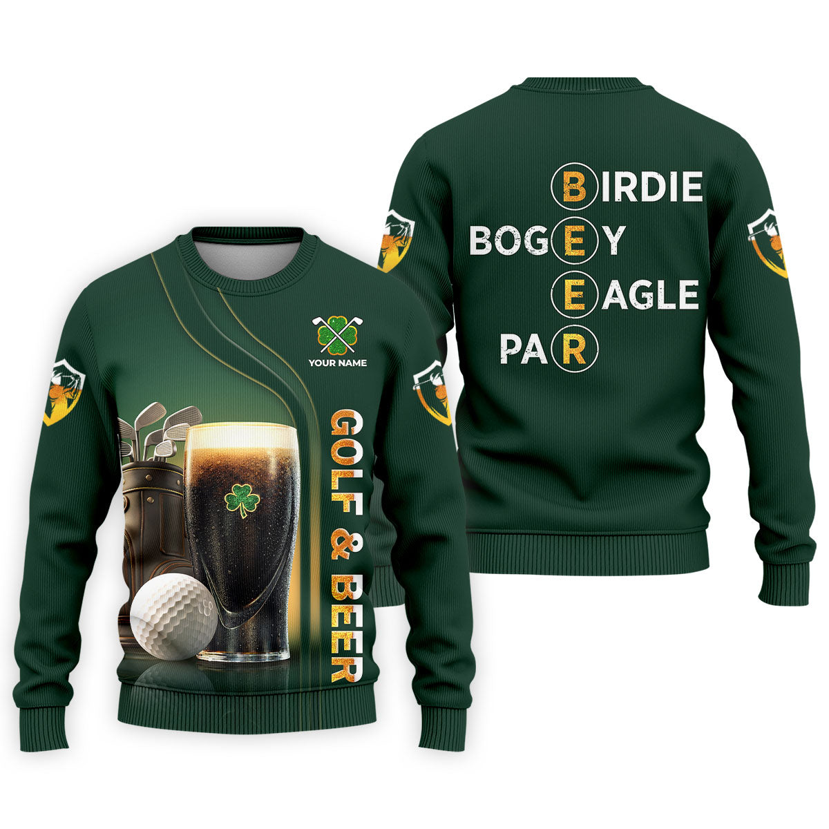 Birdie Bogey Eagle Par Golf And Beer St Patrick's Day Green Golf Tops For Men, Golf Shirts For Men