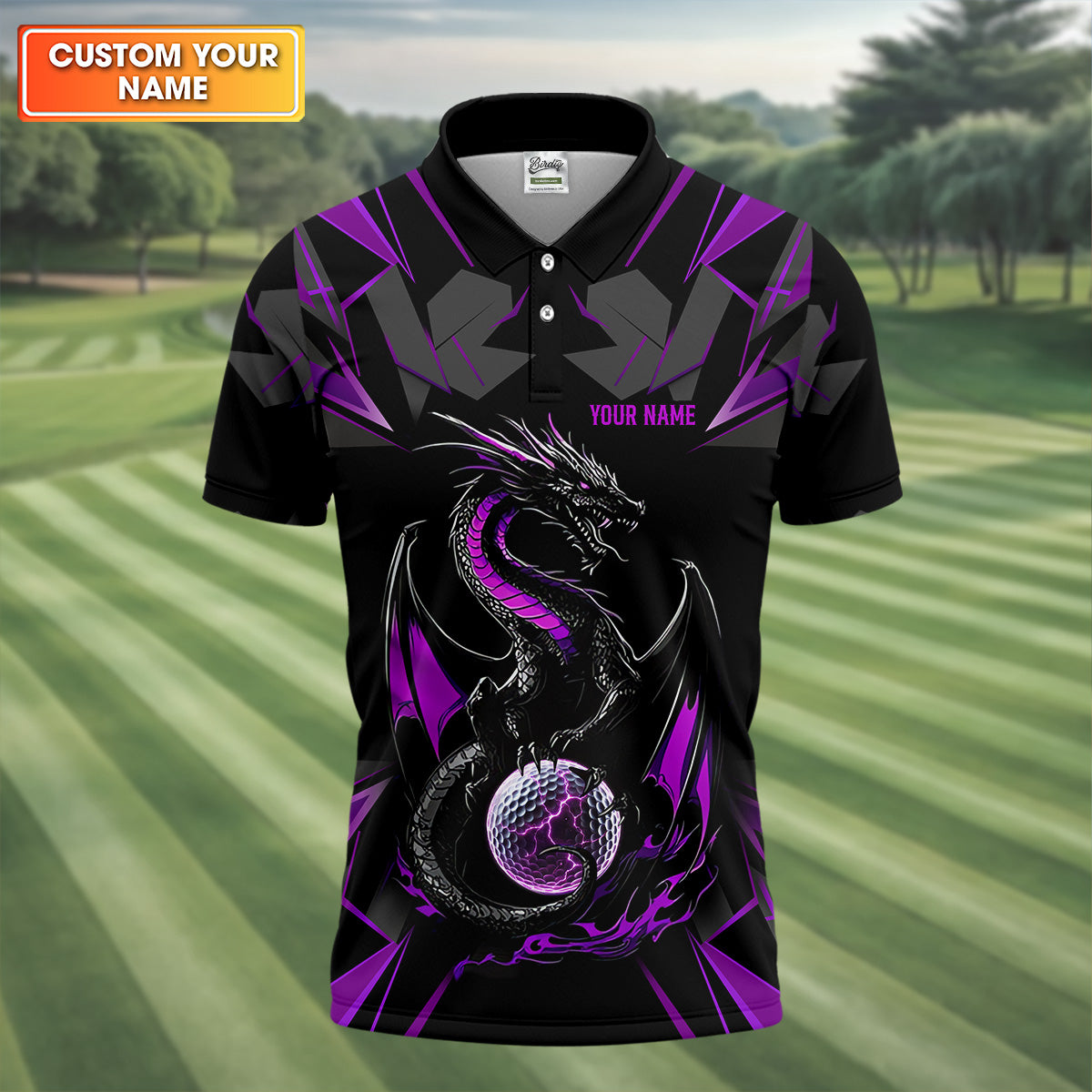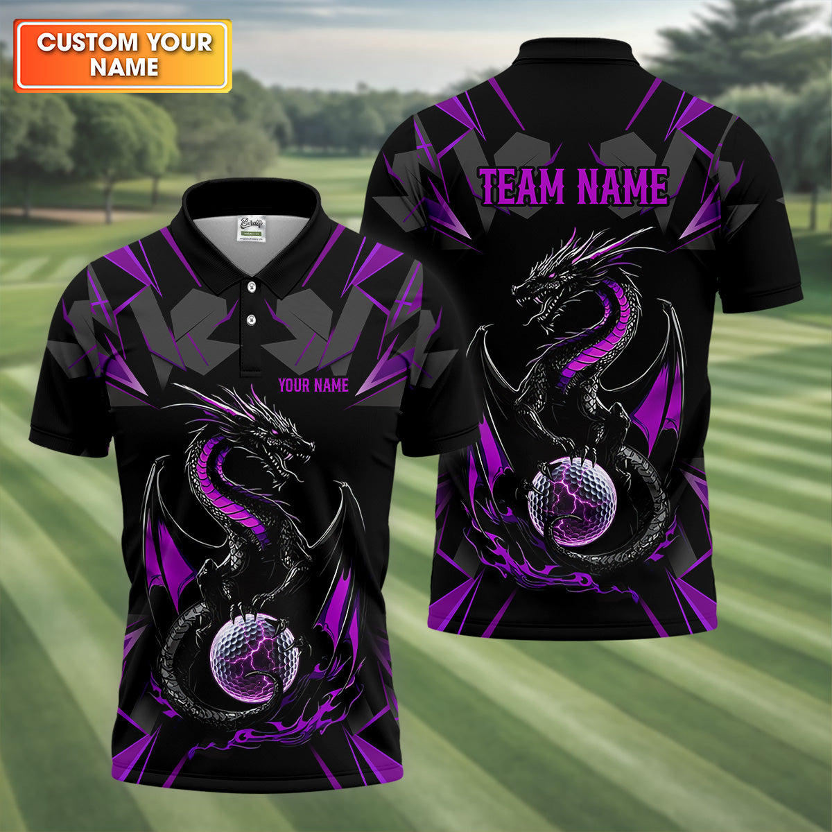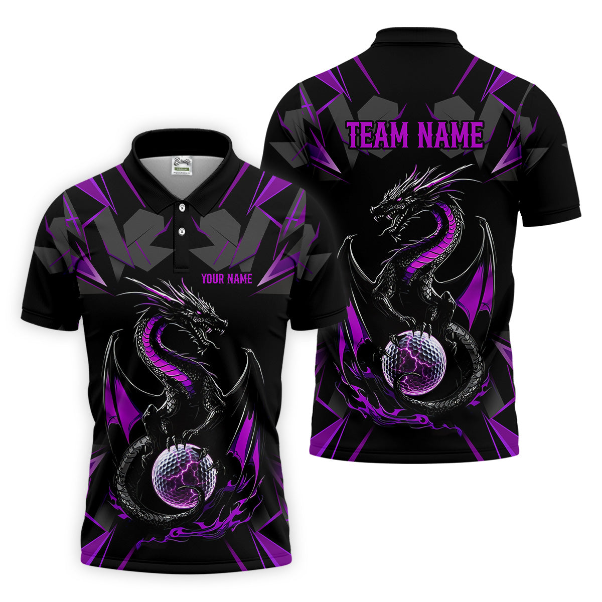 Black And Purple Dragon Golf Team Shirt, Mens Golf Polo Shirts, Cool Golf Gift, Golfing Apparel