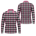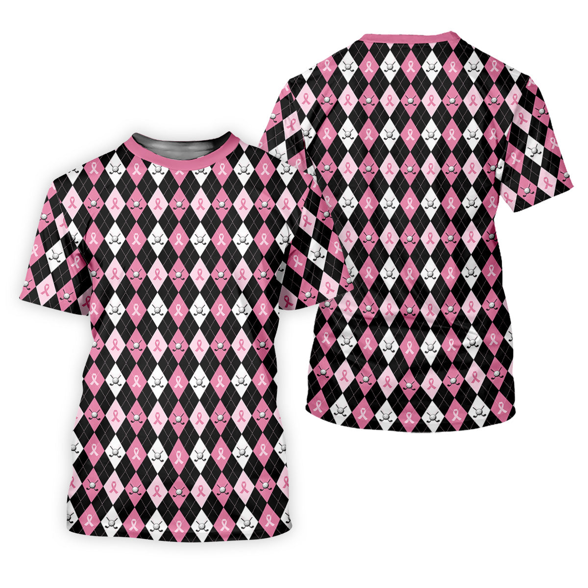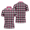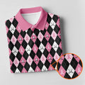 Black Pink Argyle Men's Golf Polo Shirt, Breast Cancer Golf Shirt, Golf Gift For Men, Matching Golf Shirts