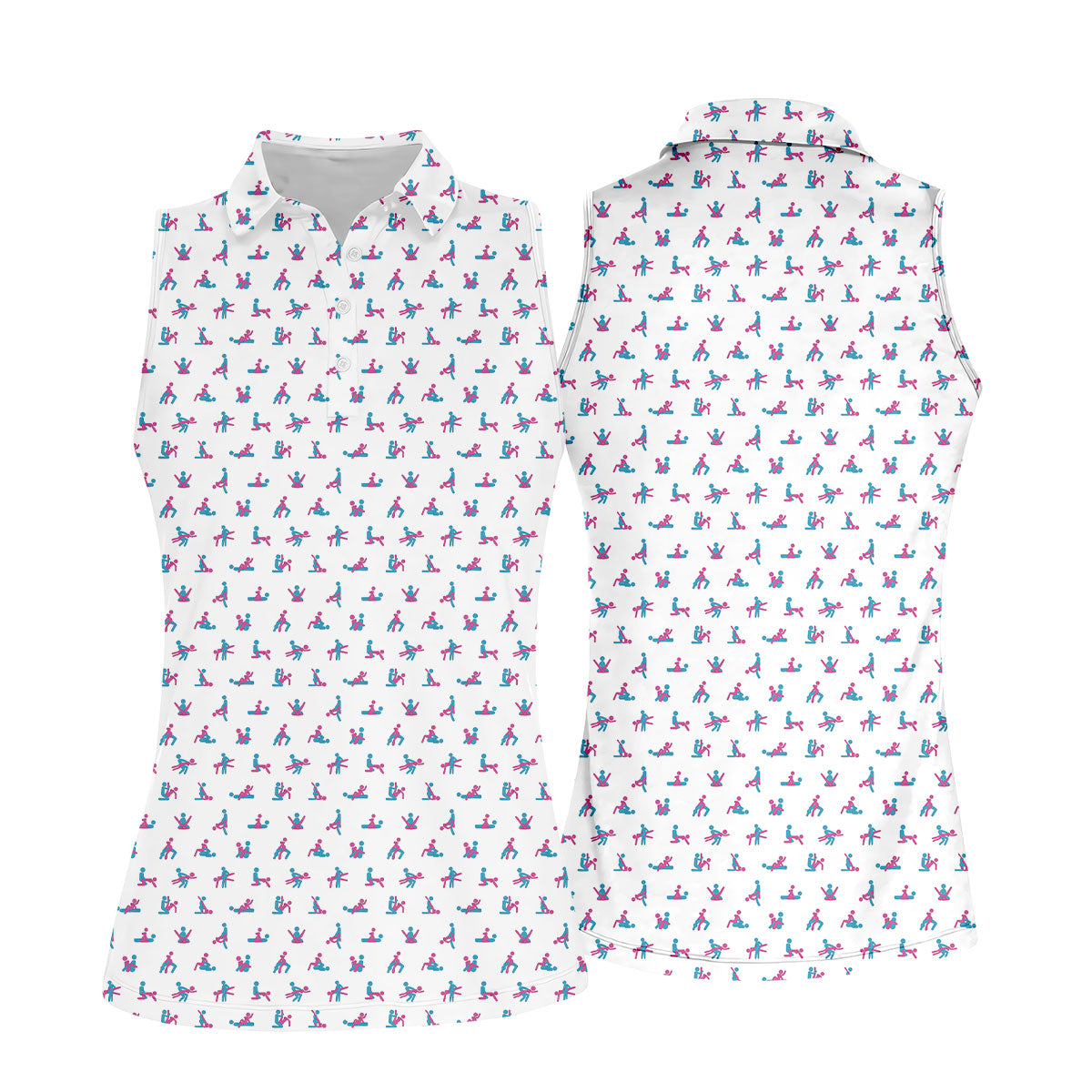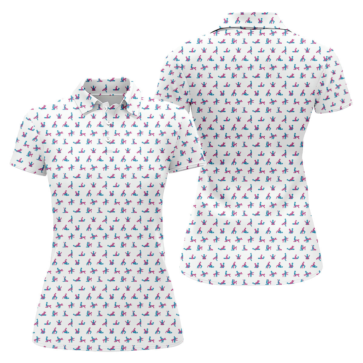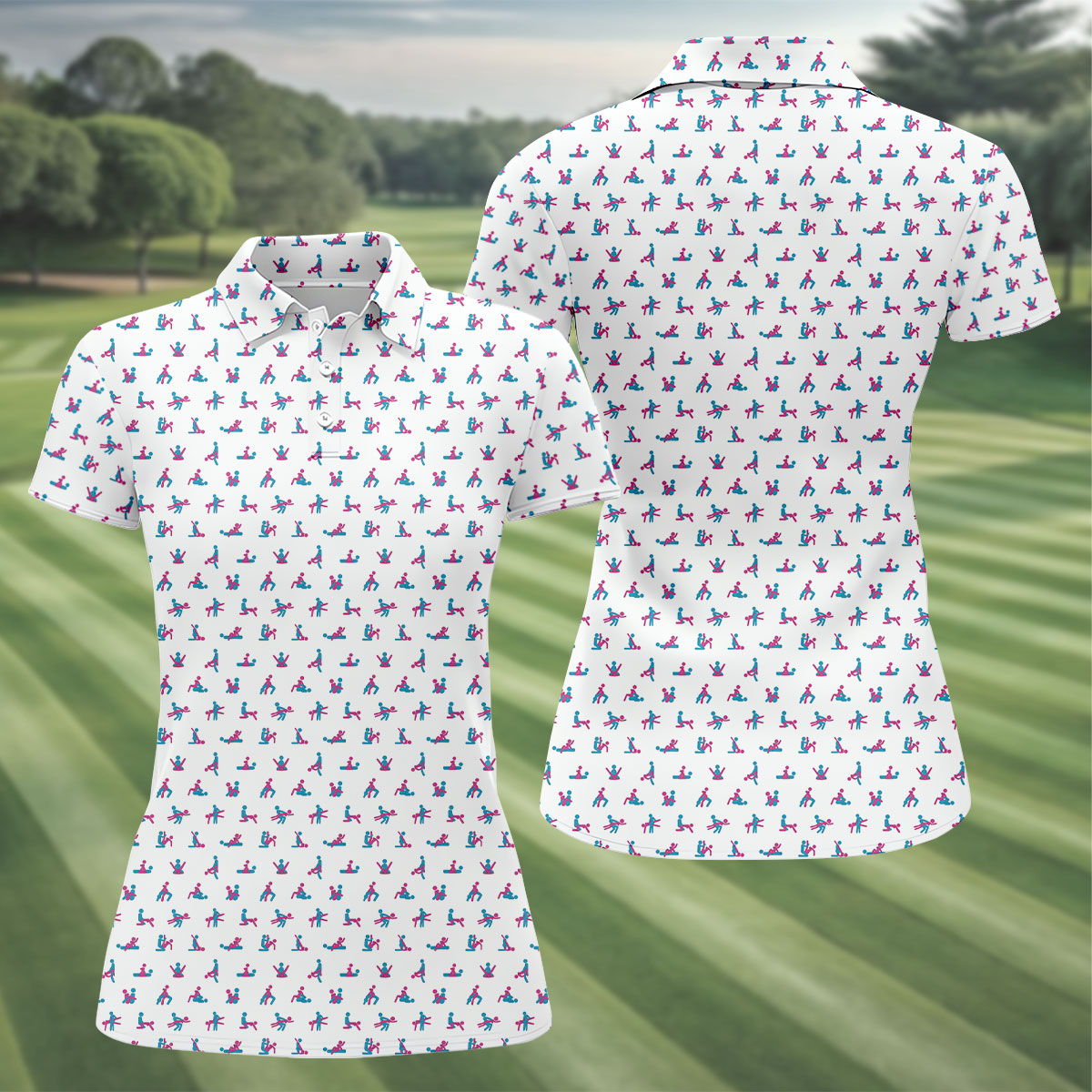 Blue And Pink Naughty Stick People White Golf Shirt, Ladies Golf Polos, Golf Gifts For Women