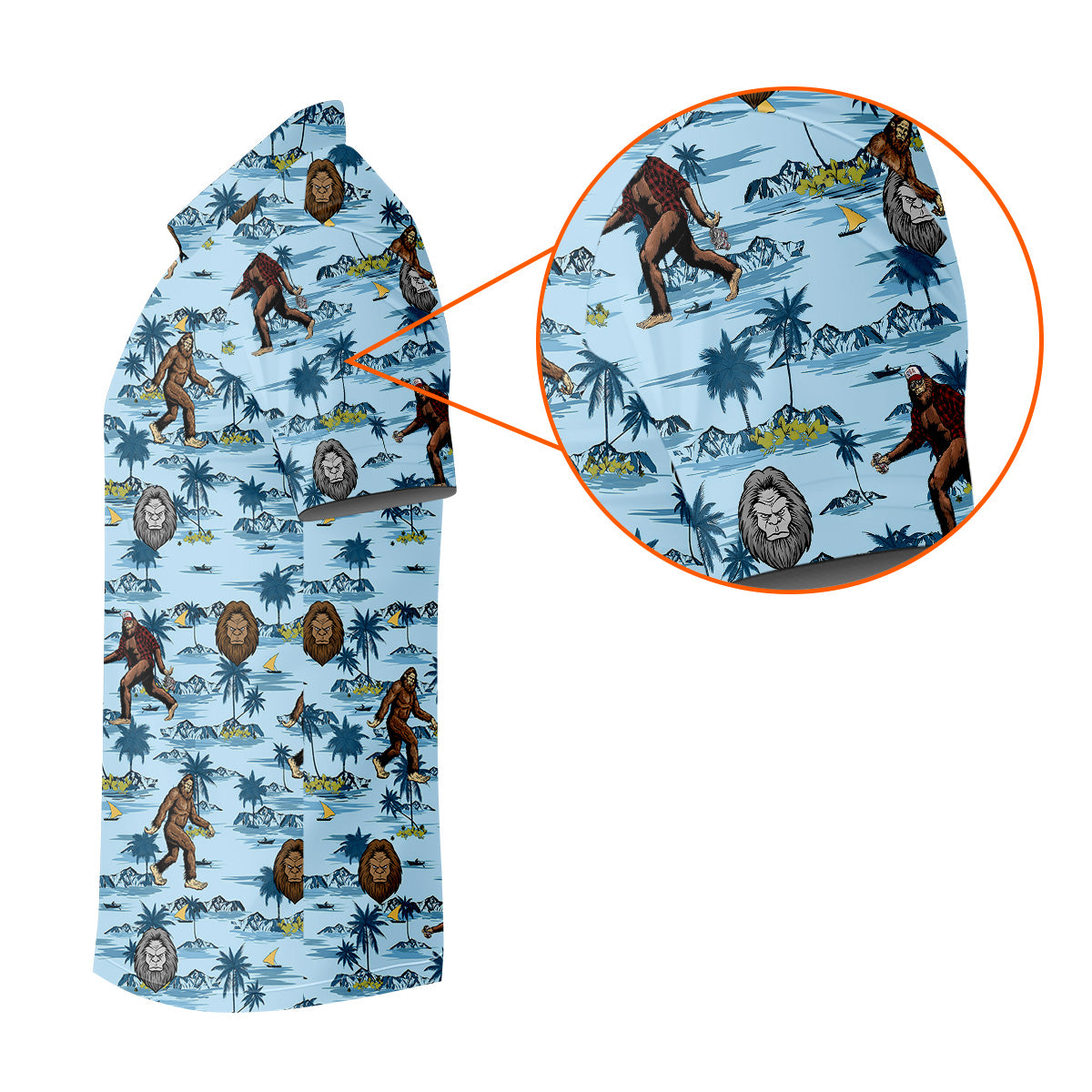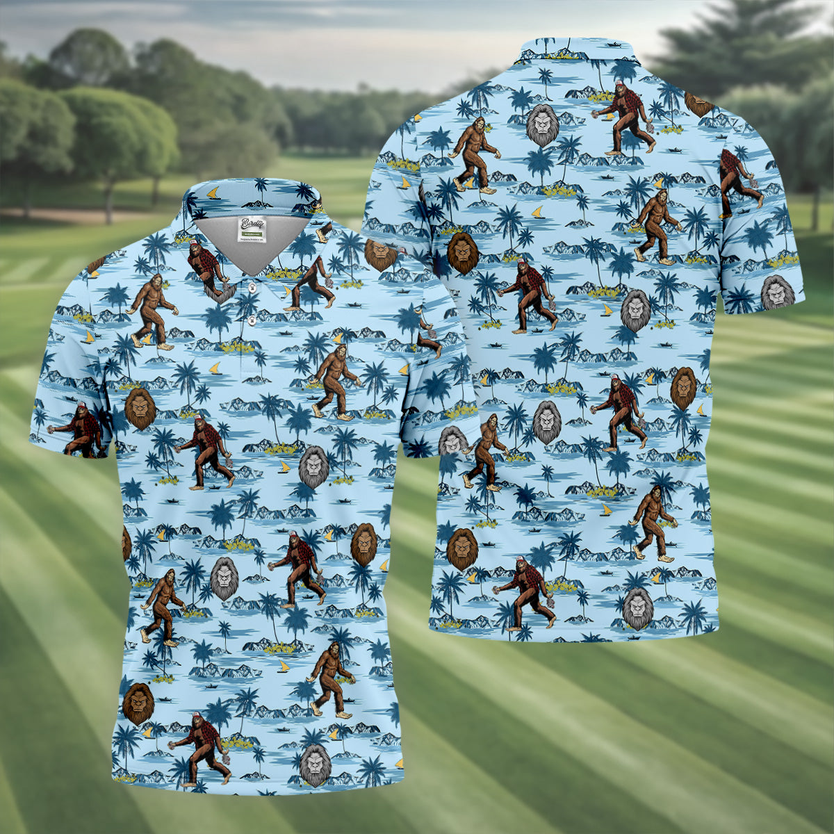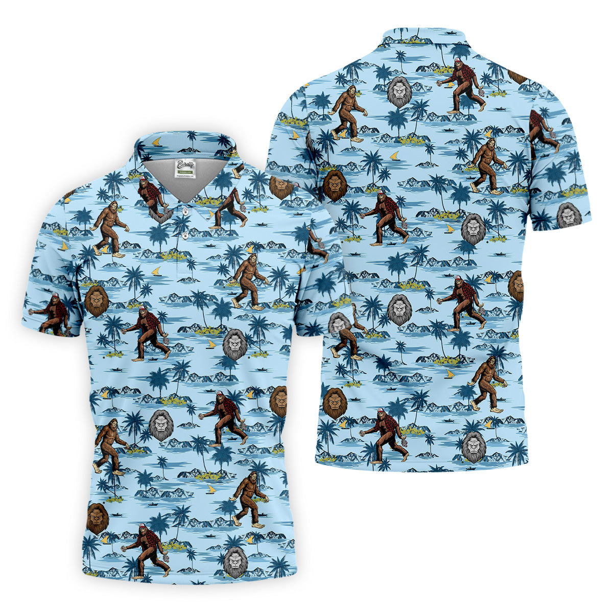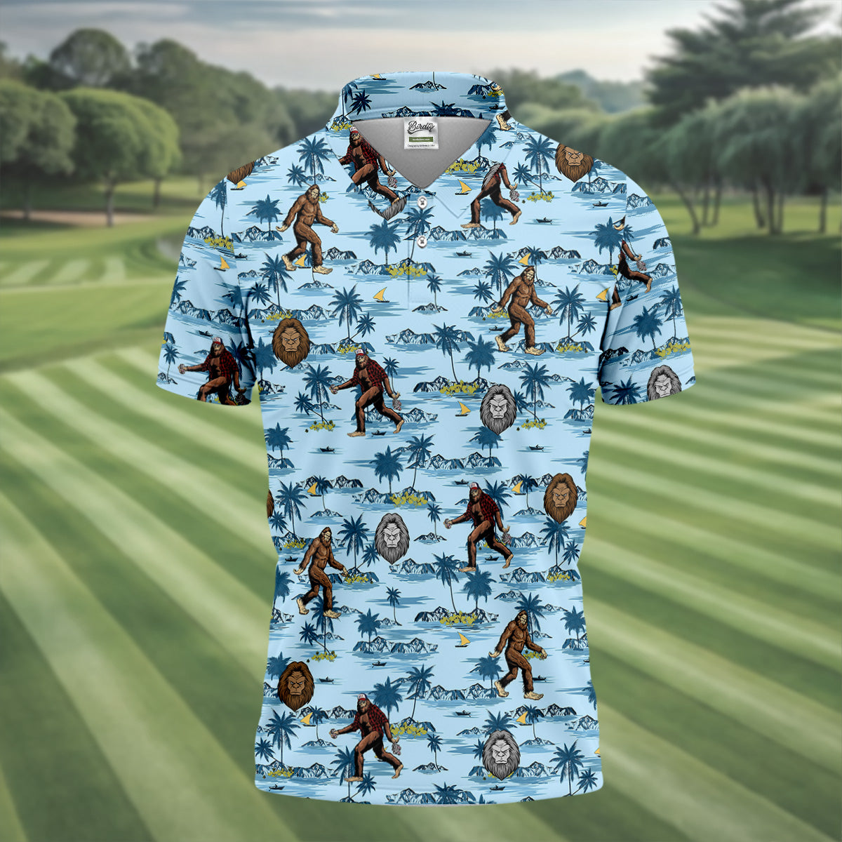 Blue Funny Sasquatch Tropical Golf Shirts, Men's Funny Golf Shirts, Golfing Apparel, Polo For Men