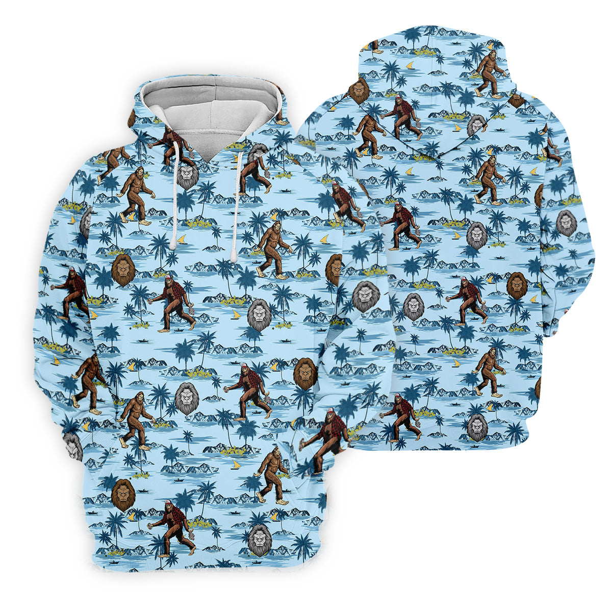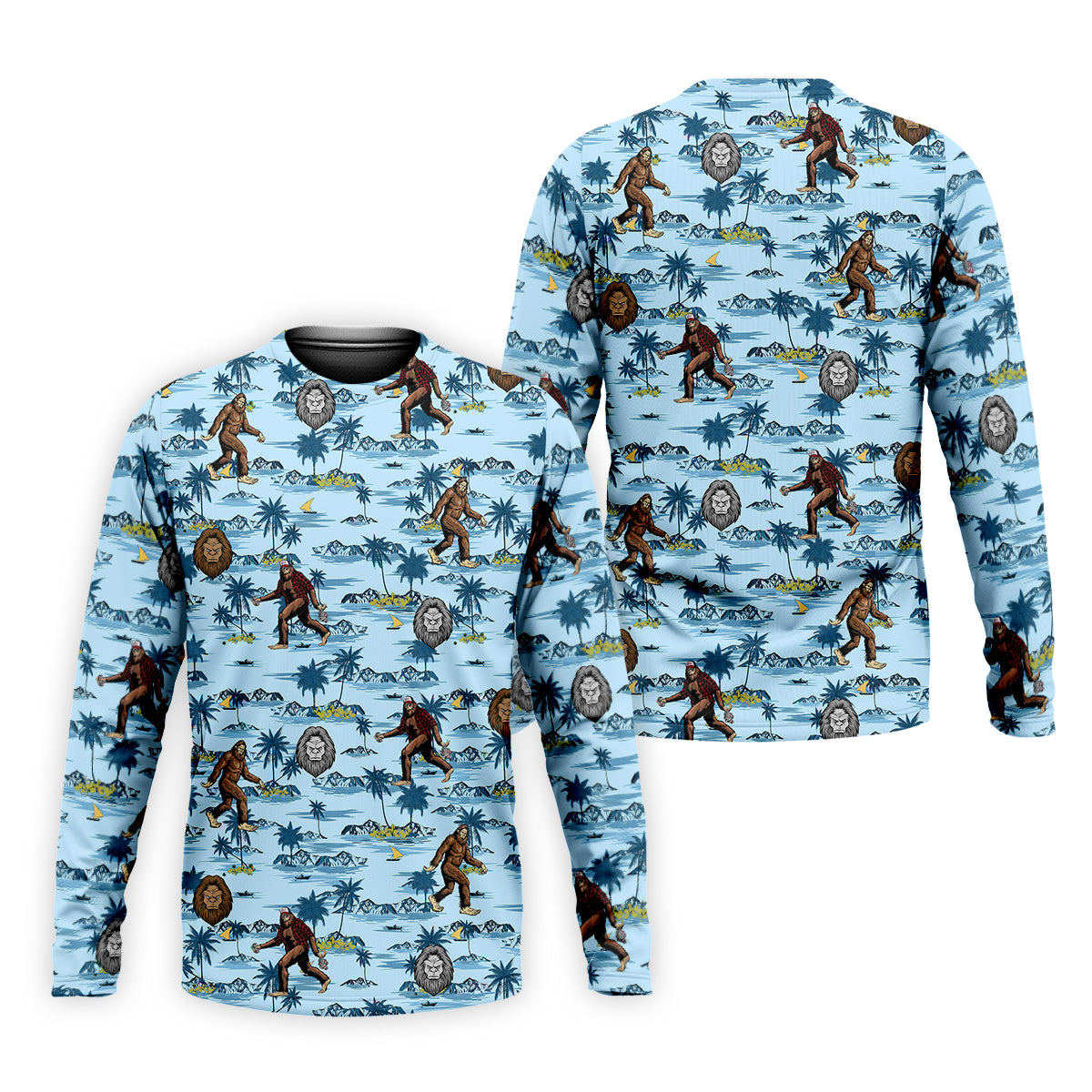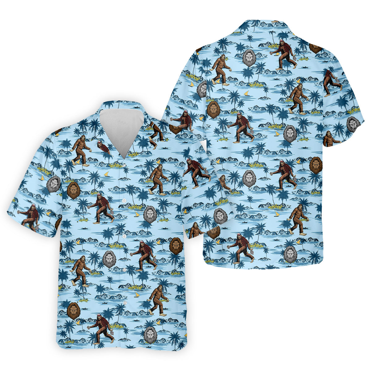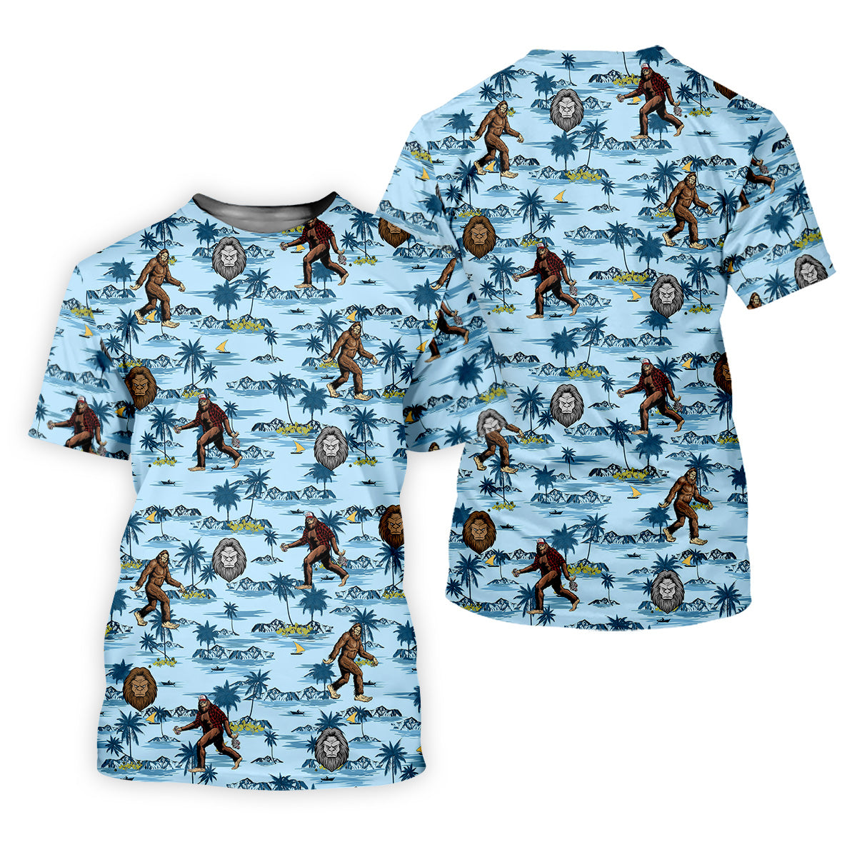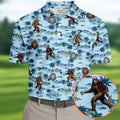 Blue Funny Sasquatch Tropical Golf Shirts, Men's Funny Golf Shirts, Golfing Apparel, Polo For Men