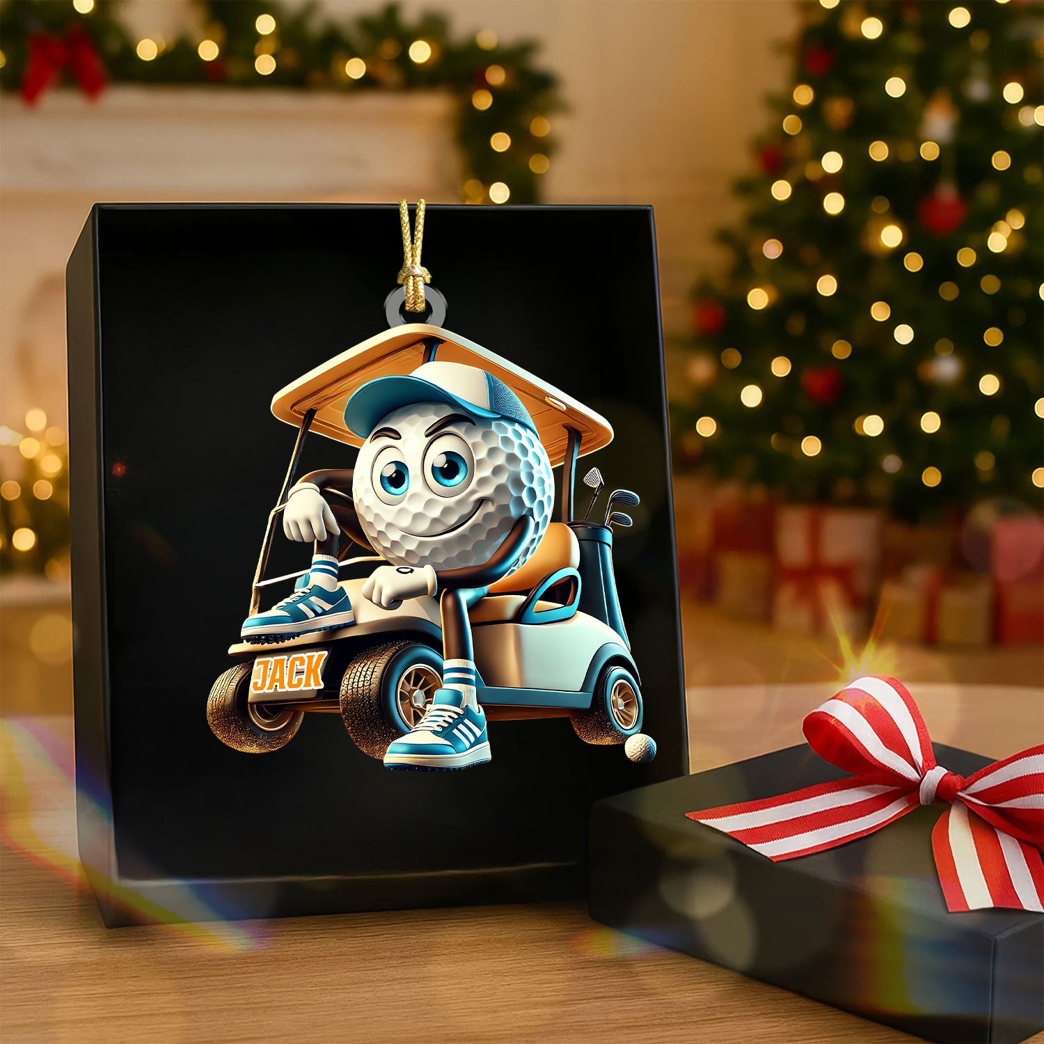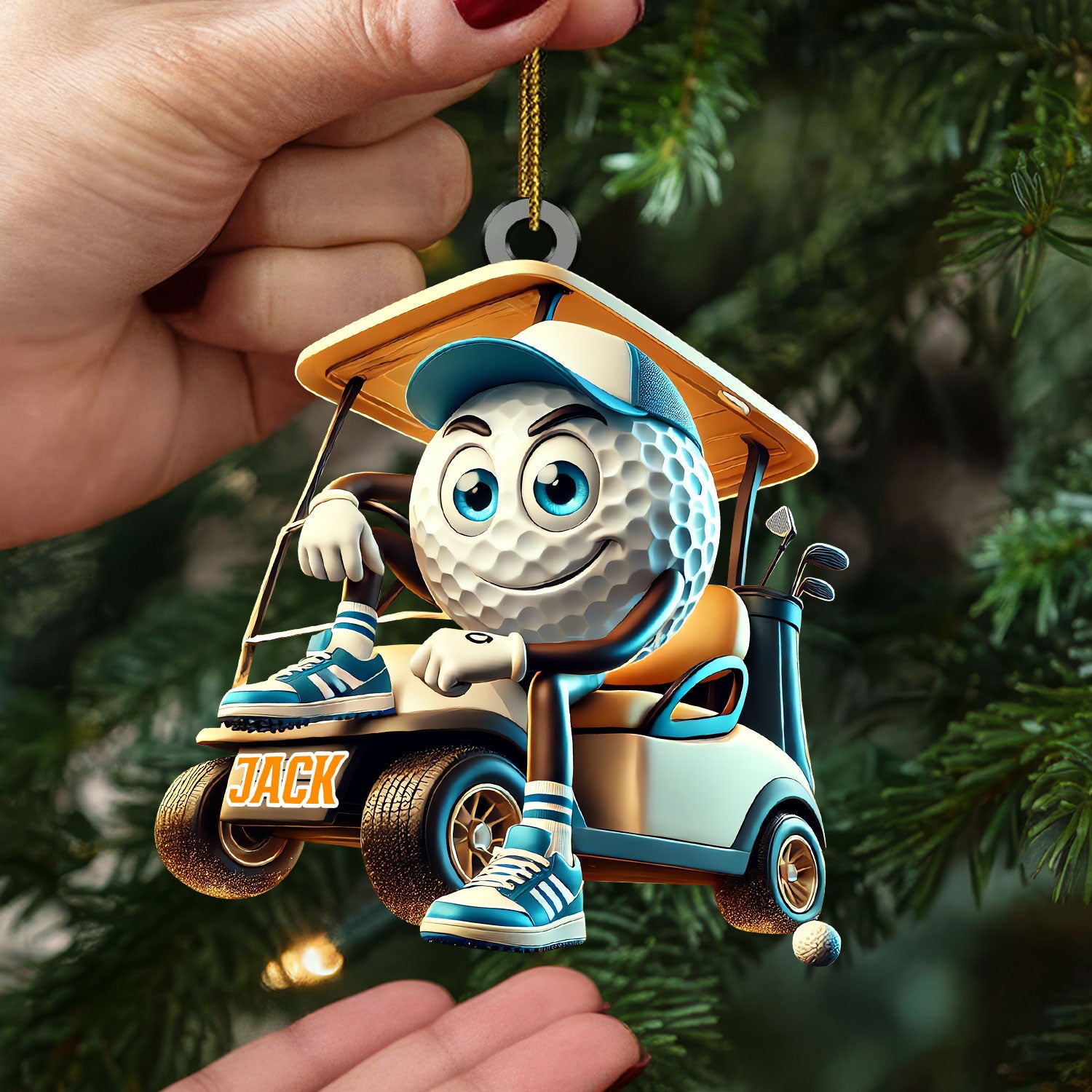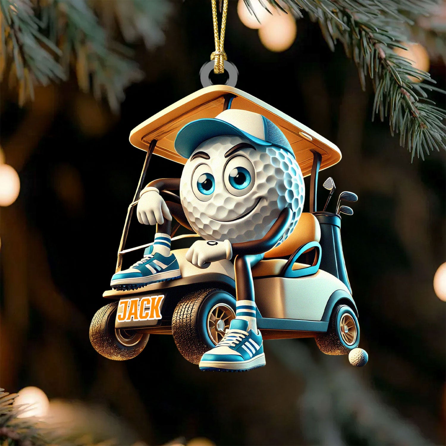 Blue Golf Ball Driving Golf Cart Acrylic Ornament, Golf Xmas Ornaments, Golf Christmas Gifts, Cool Golf Gift