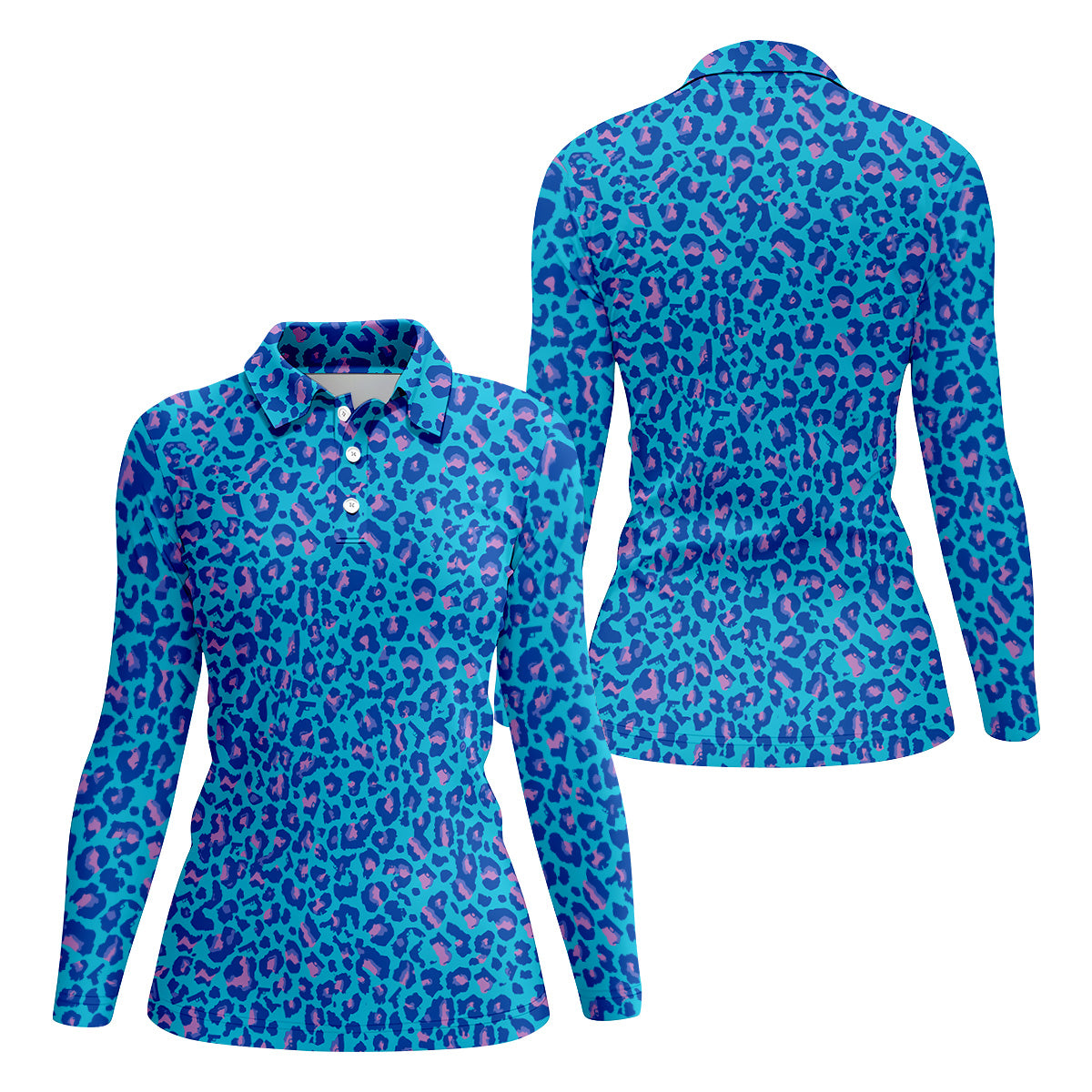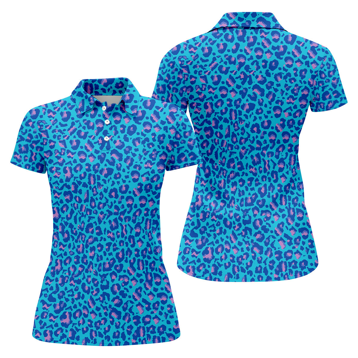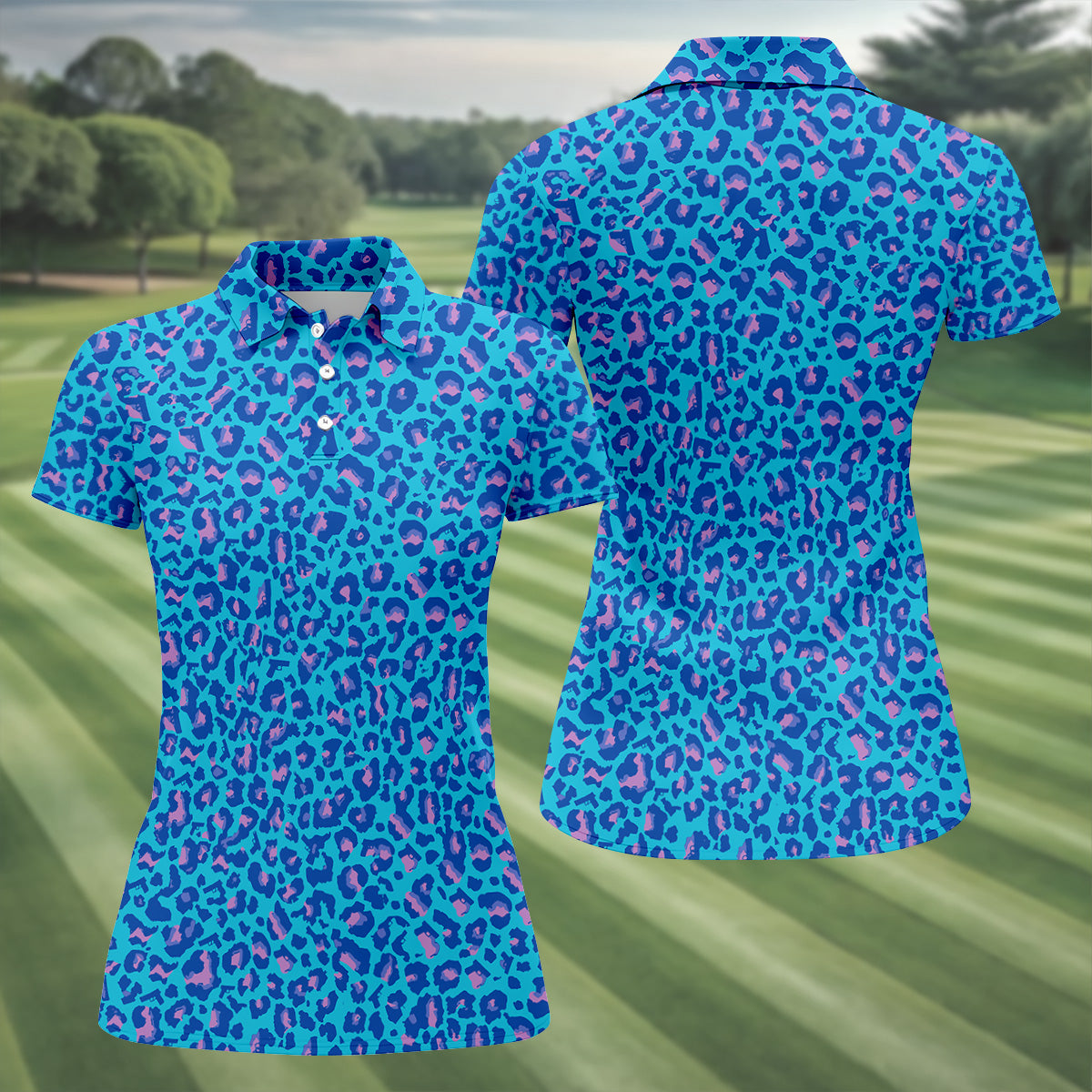 Blue Leopard Women Golf Top, Cool Golf Gift, Ladies Golf Shirts, Golfing Apparel