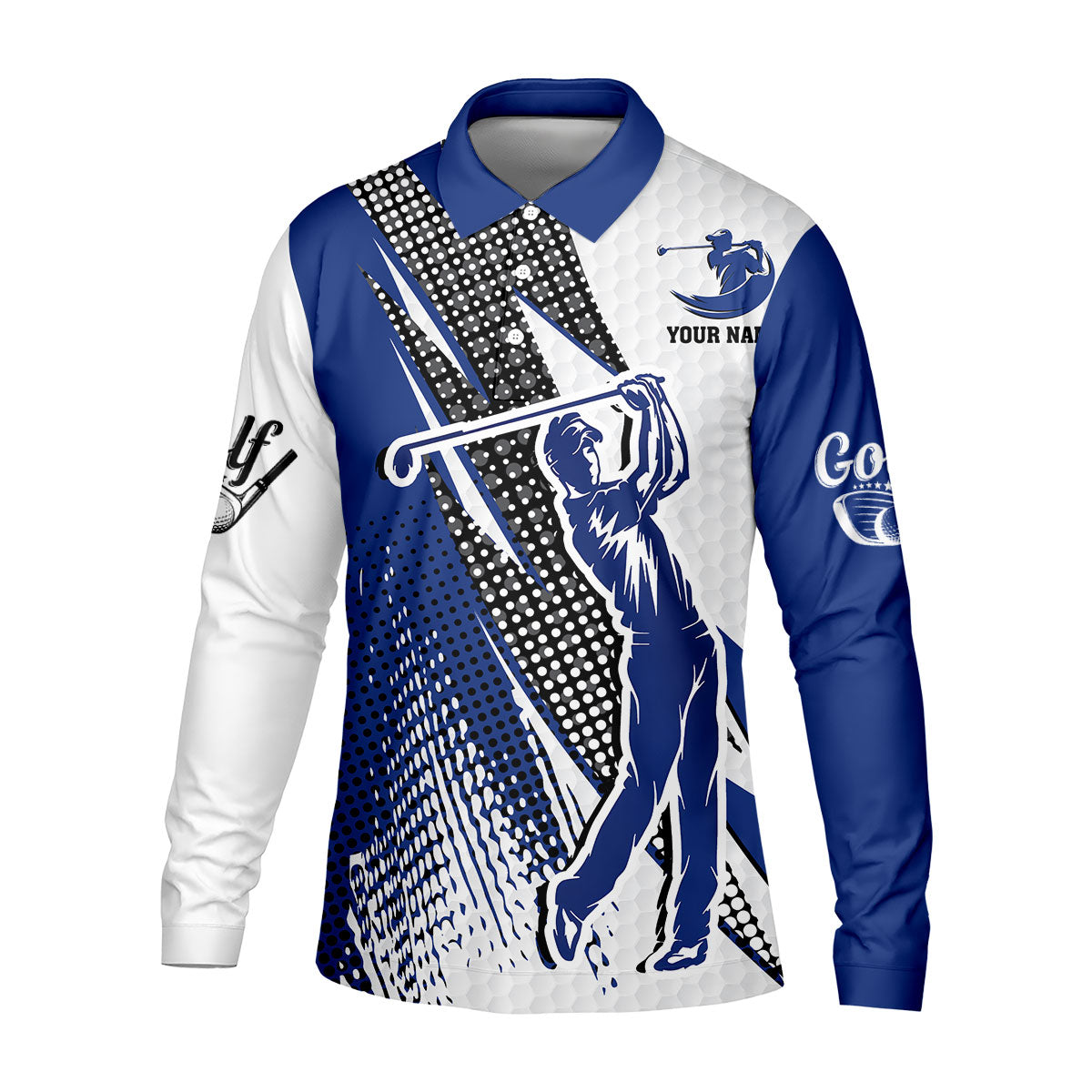 Blue White Golf Men's Golf Polo Shirt, Customized Golf Polos, Mens Golf Gift, Funny Golf Shirt