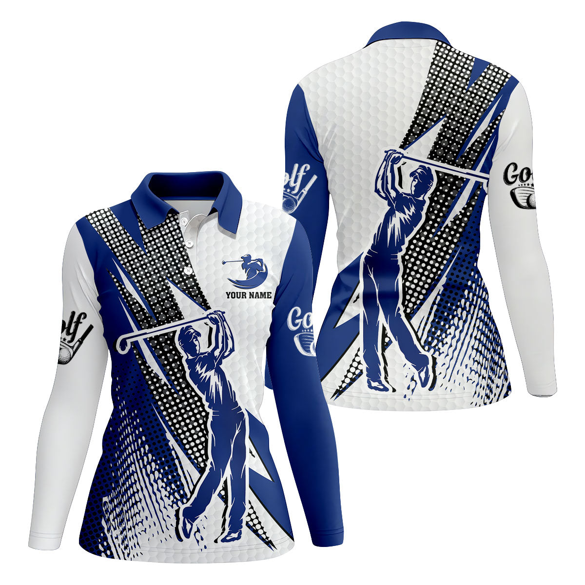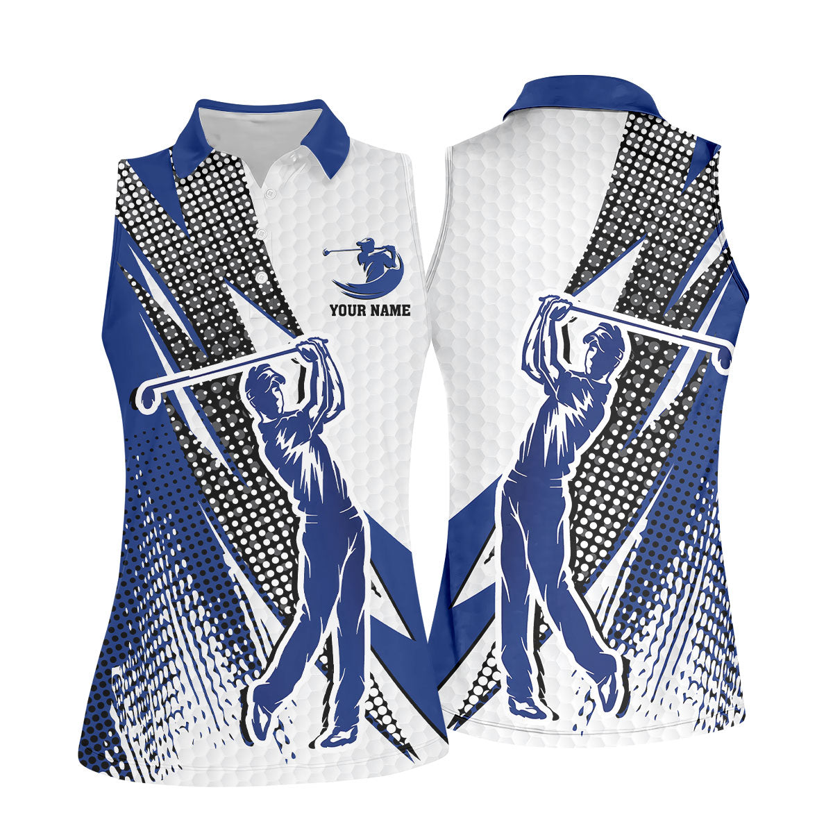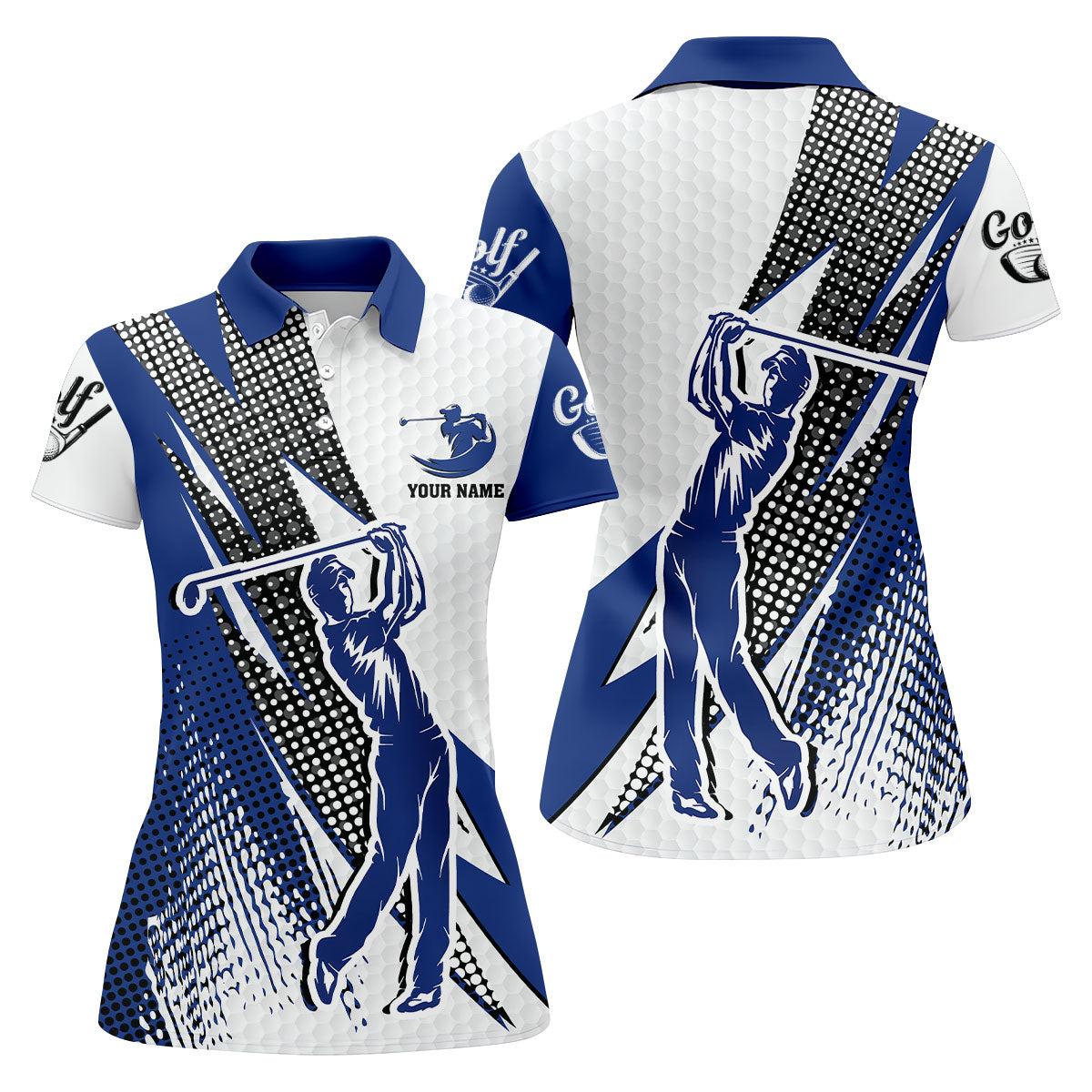 Blue White Women's Golf Tops, Customized Golf Polos, Ladies Golf Polos, Funny Golf Shirt