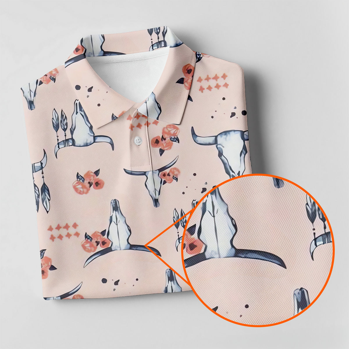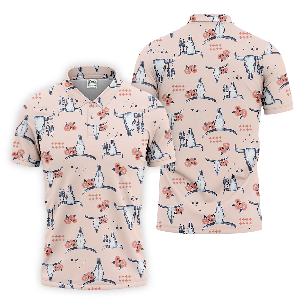 Boho Buffalo Skull Seamless Pattern Golf Tops For Men, Hawaiian Golf Shirts, Polo For Men