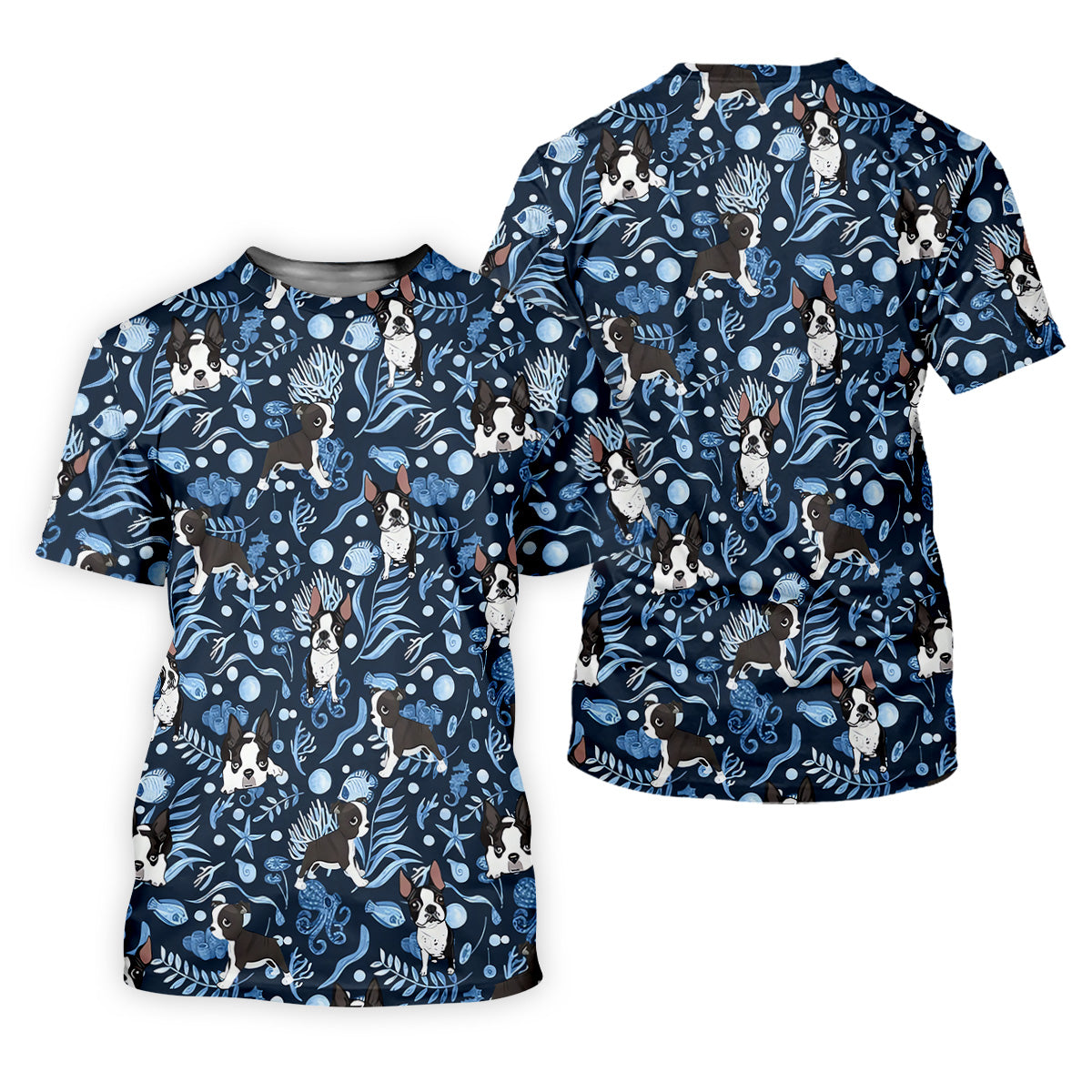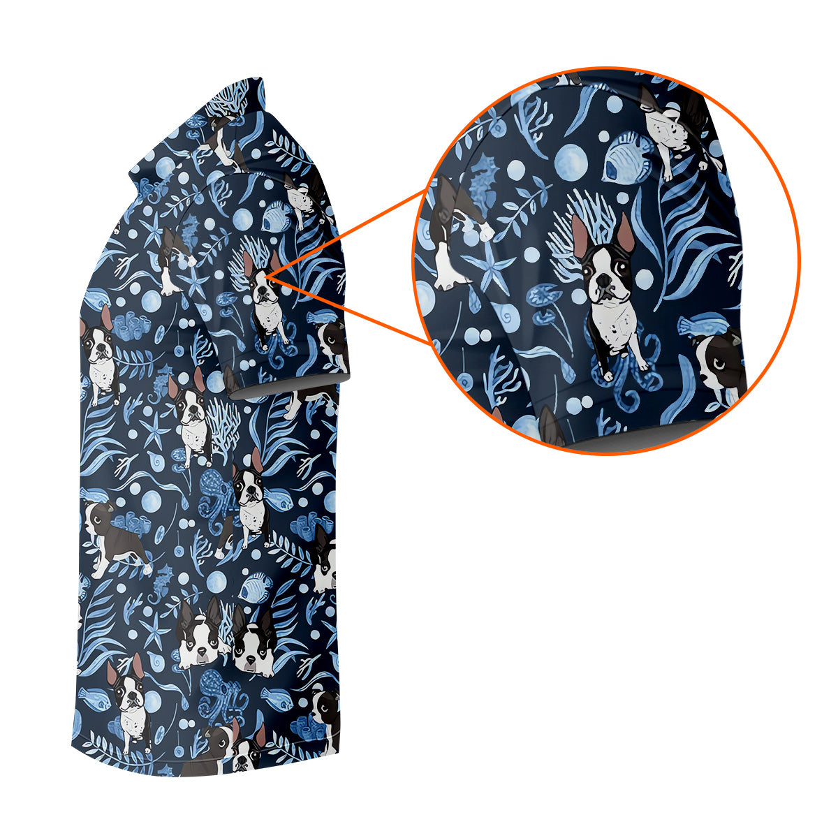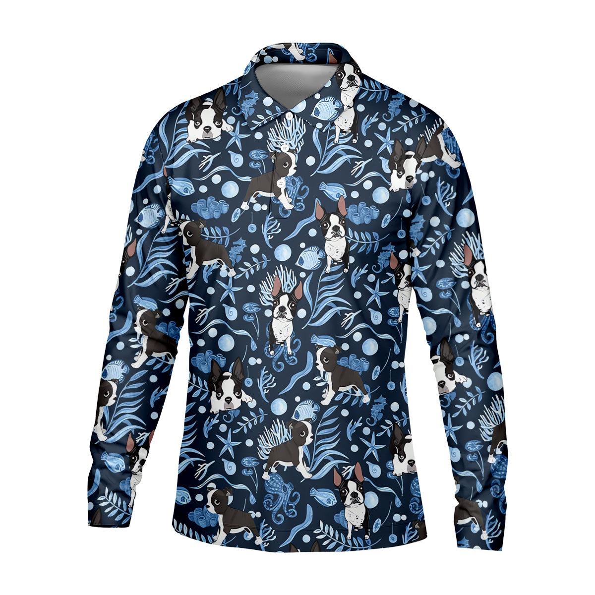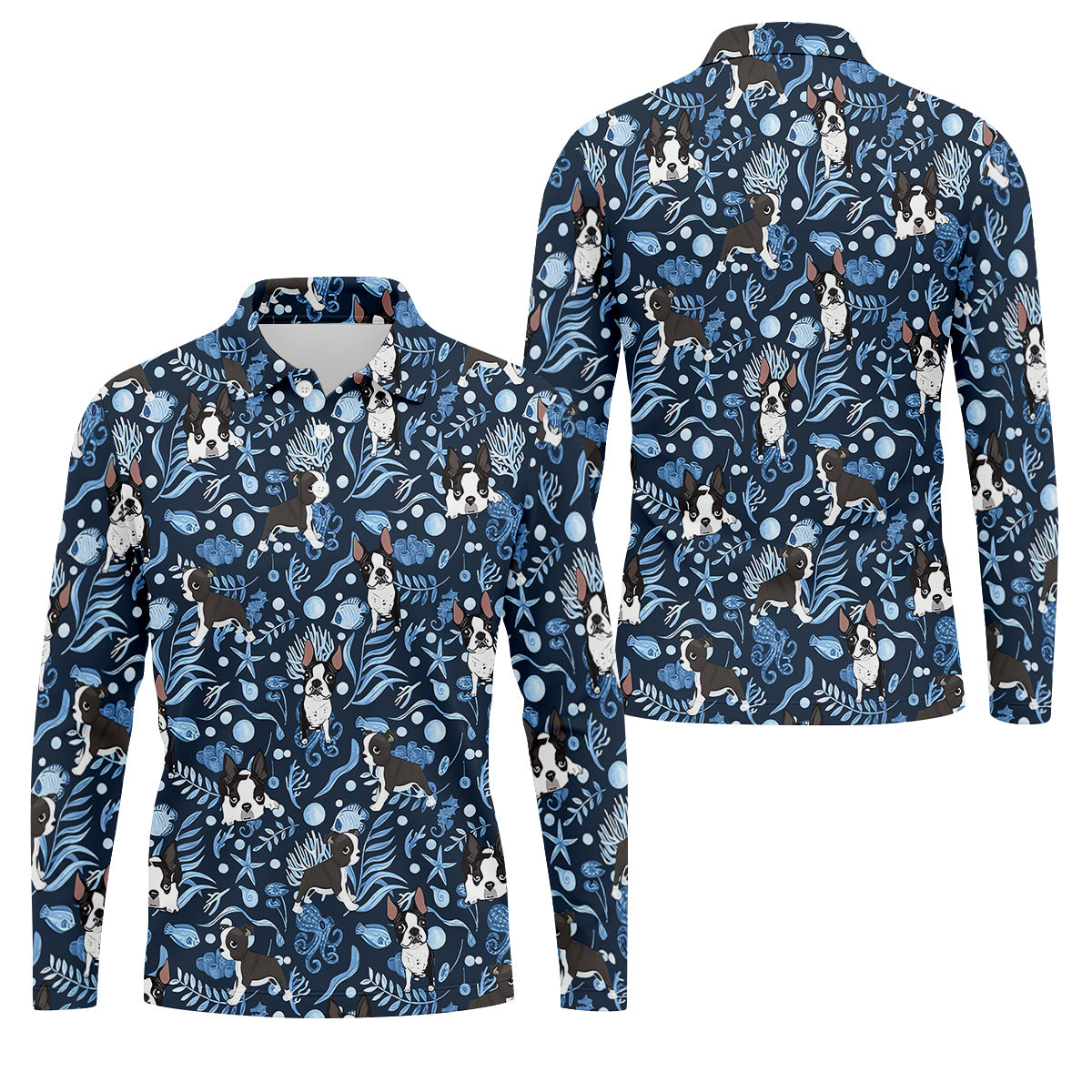 Boston Terrier Ocean Vibe Blue Tropical Golf Shirts, Men's Funny Golf Shirts, Gifts For Dog Lovers