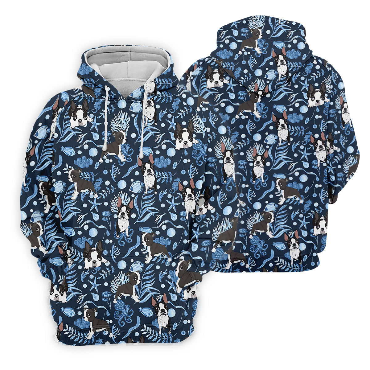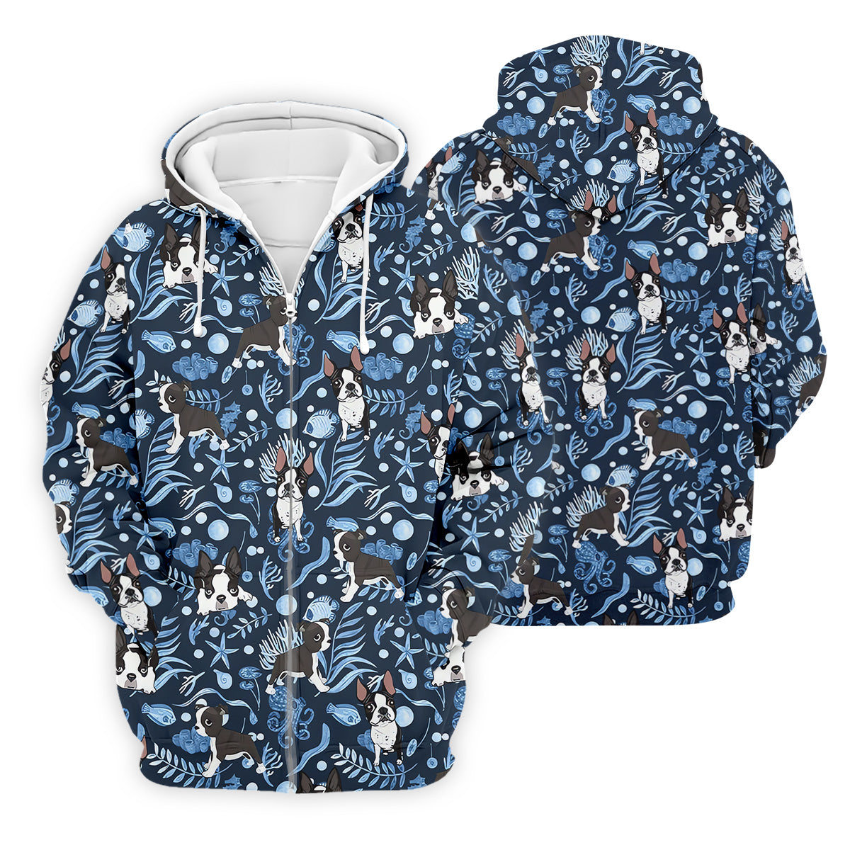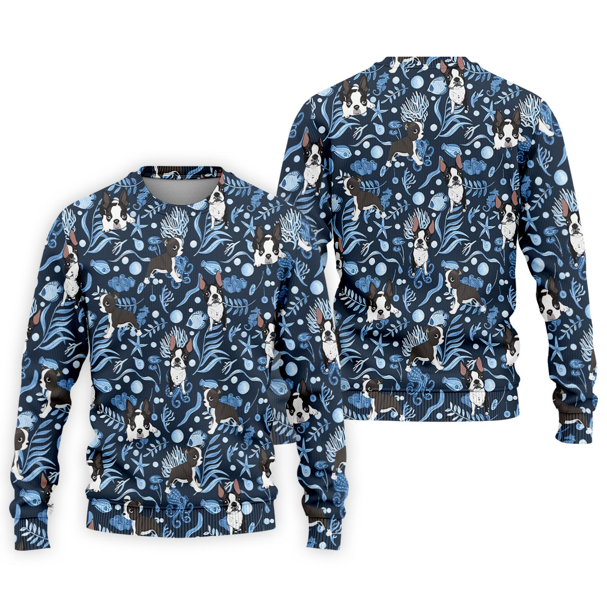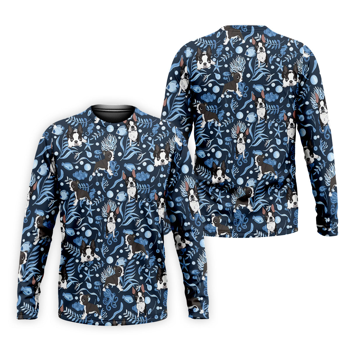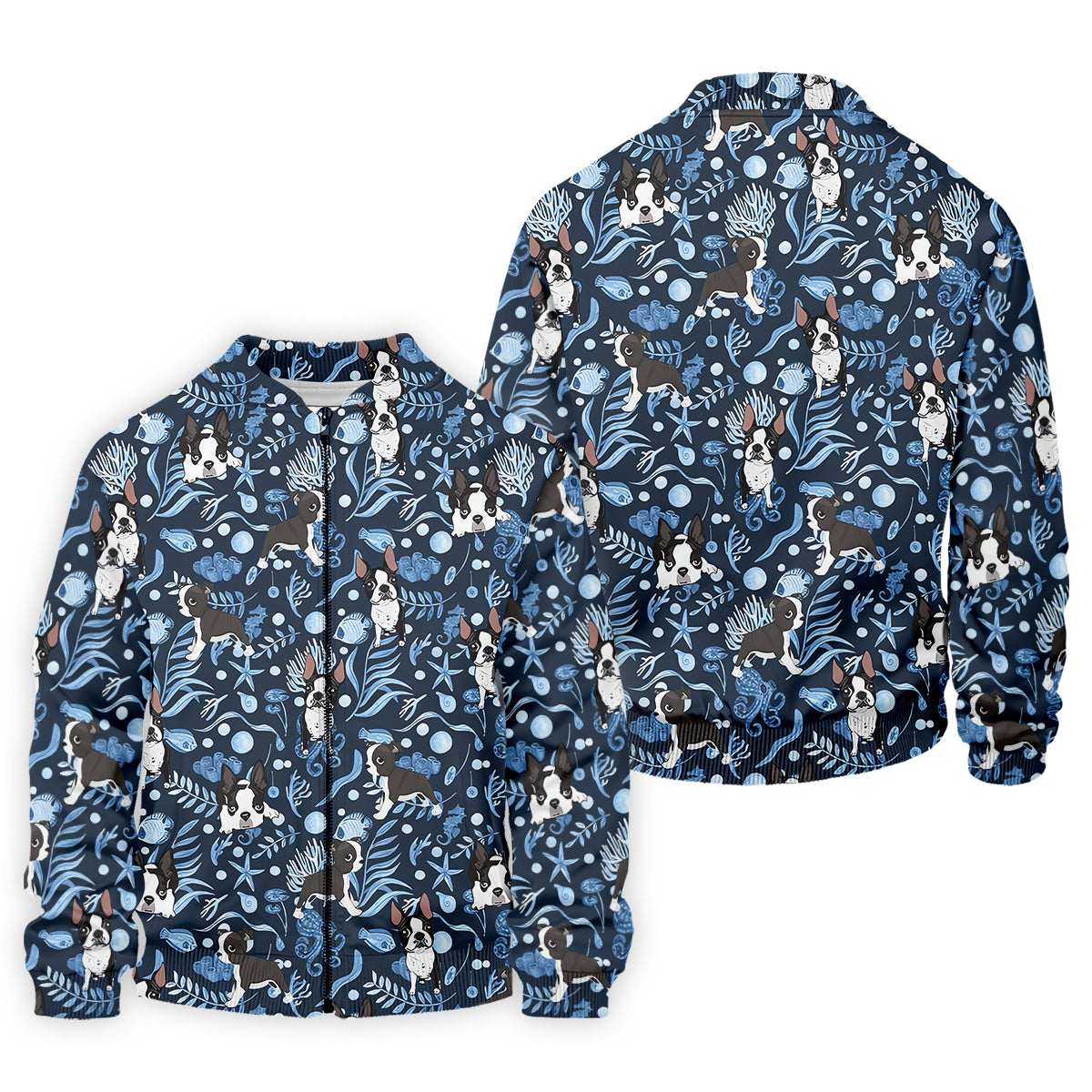 Boston Terrier Ocean Vibe Blue Tropical Golf Shirts, Men's Funny Golf Shirts, Gifts For Dog Lovers