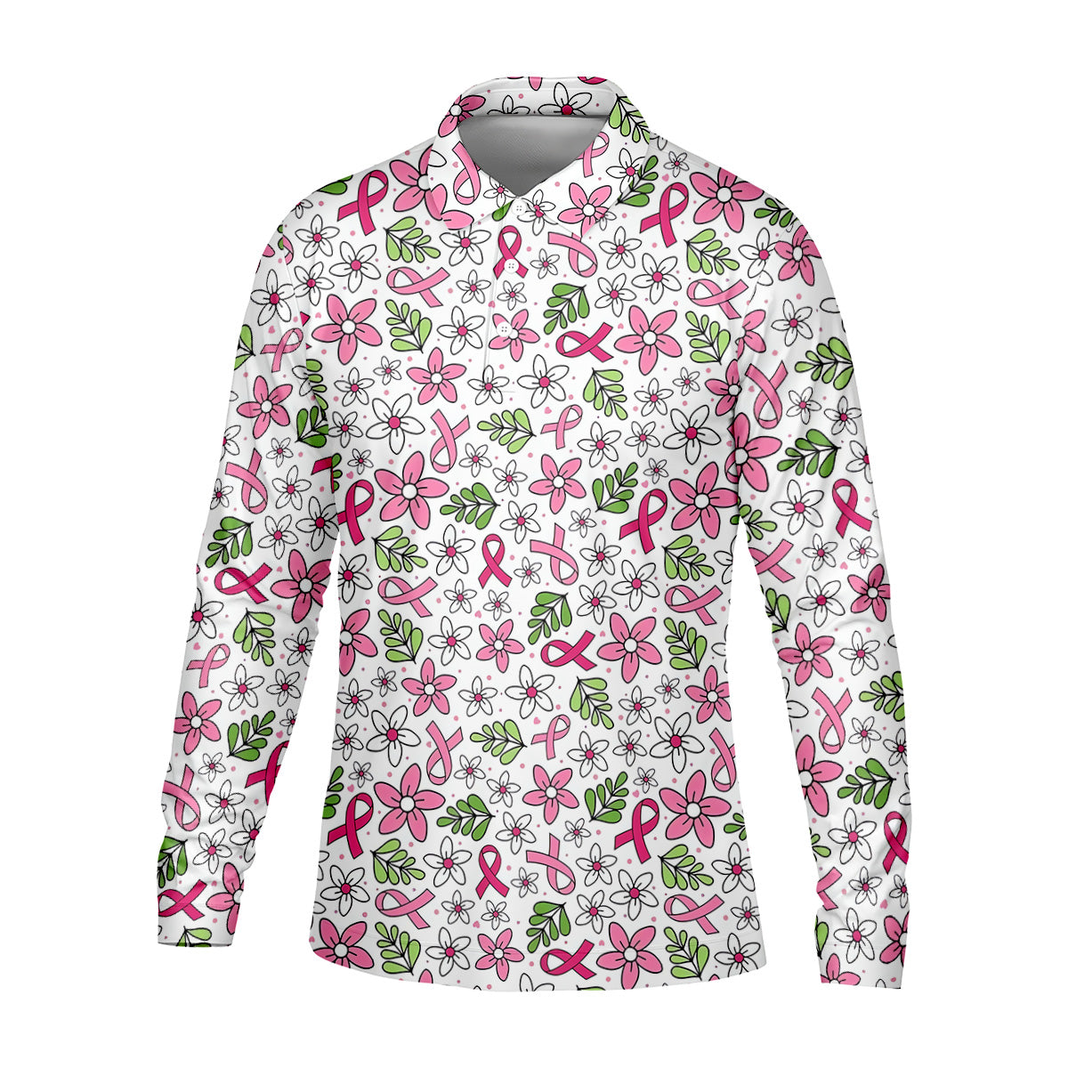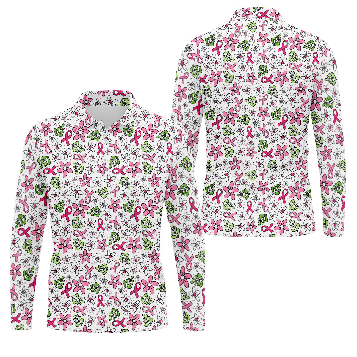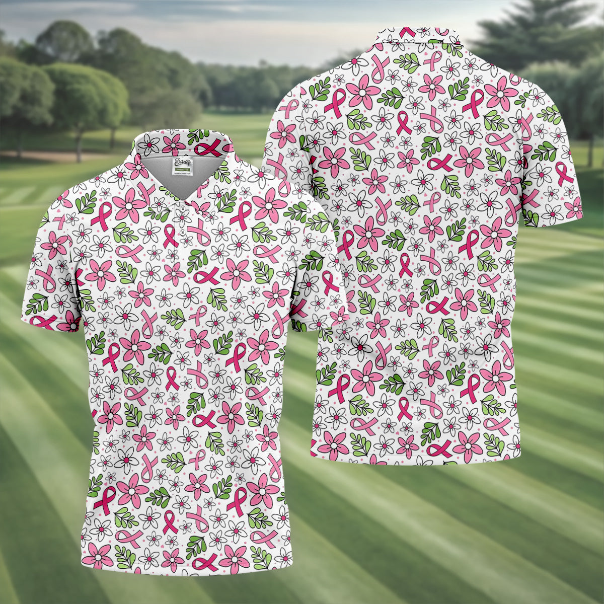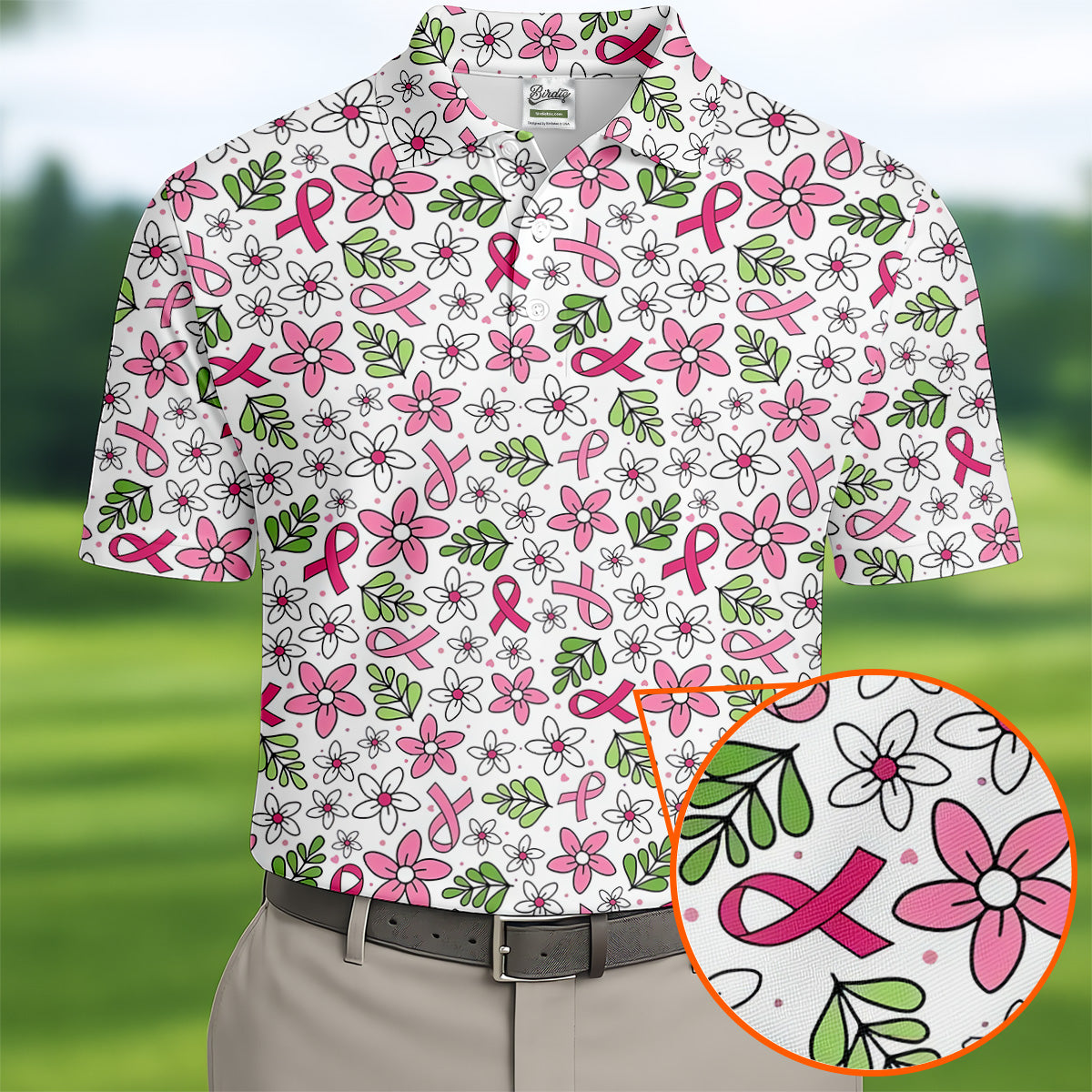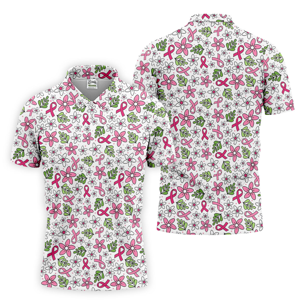 Breast Cancer Awareness Ribbon Flower Men Shirt, Cancer Awareness Shirt, Polo Shirts For Men