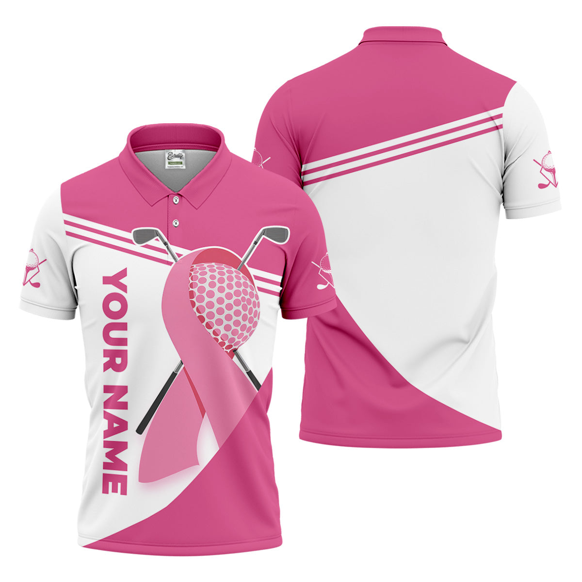 Breast Cancer Pink Men's Golf Polo Shirt, Golf Shirts For Men, Breast Cancer Awareness Shirt