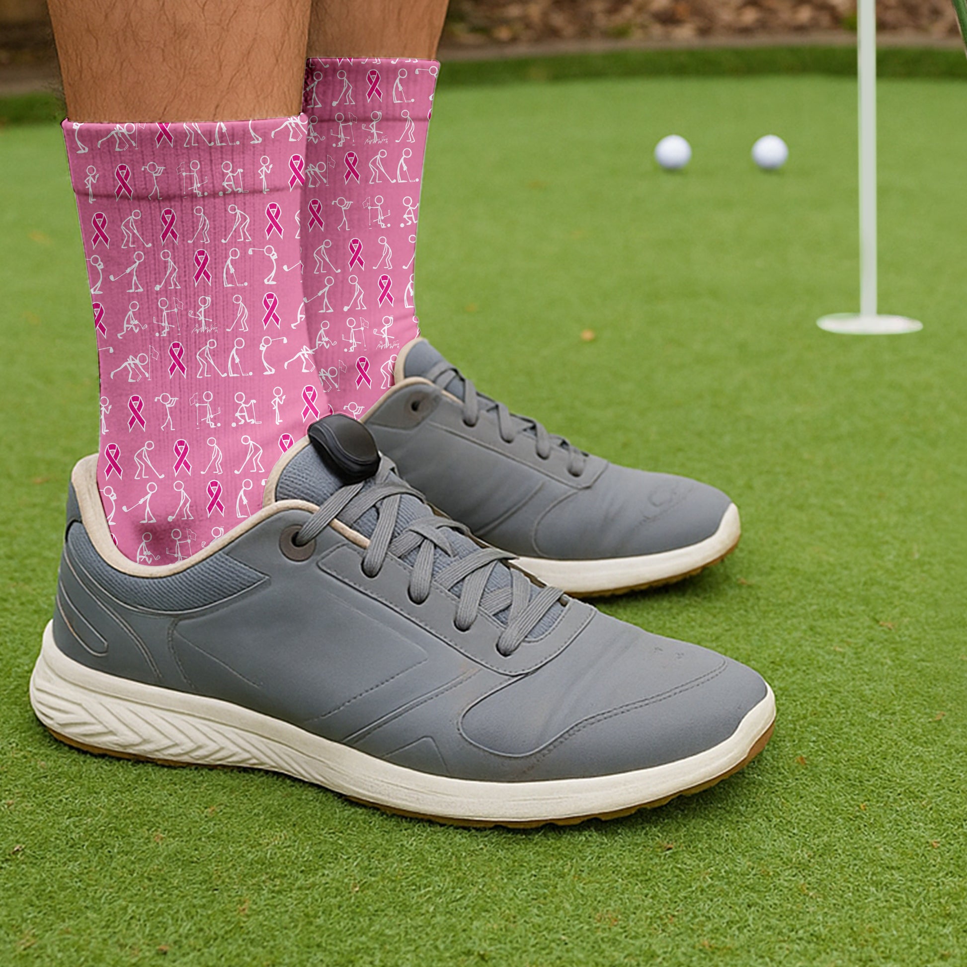 Breast Cancer Stick Figure Pink Golf Socks, Christmas Golf Gift, Golfing Apparel