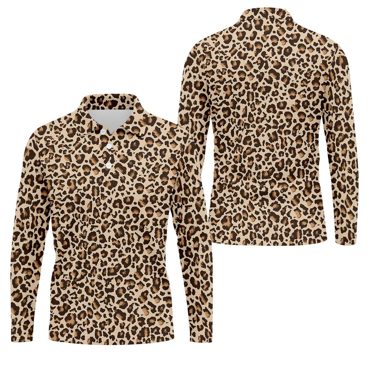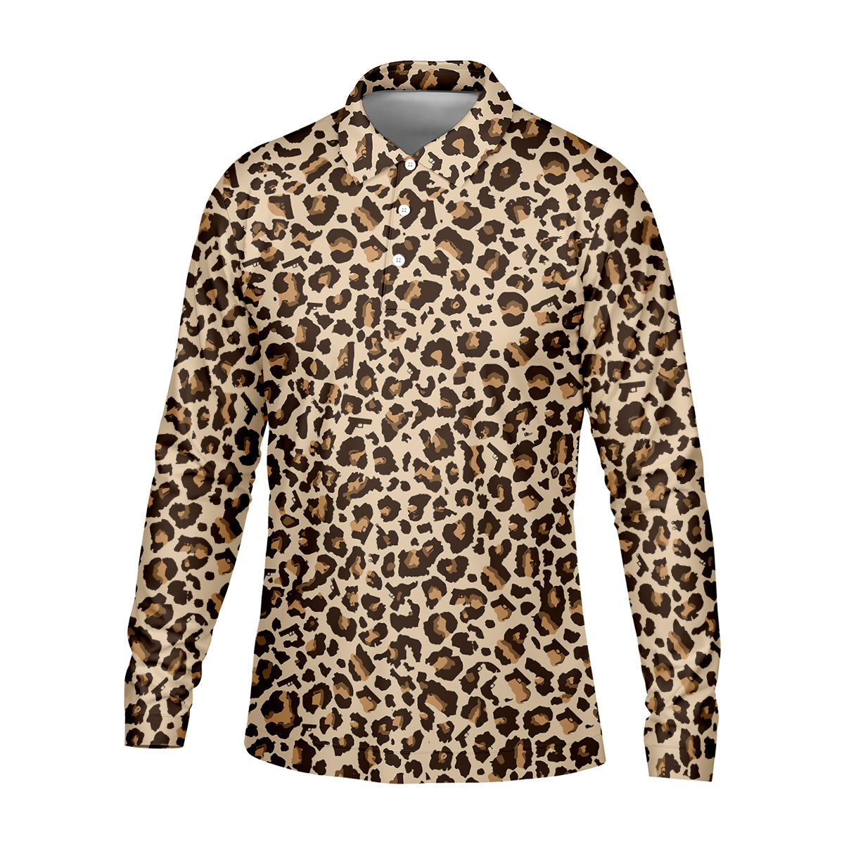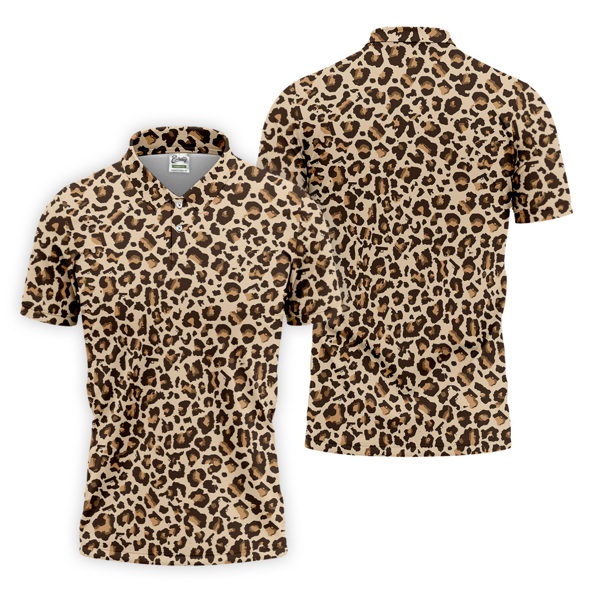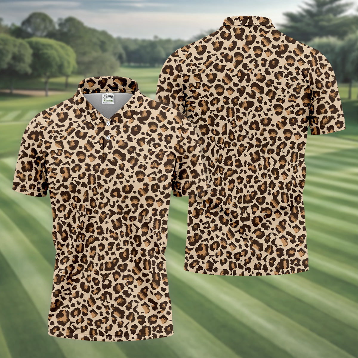Brown Leopard Golf Tops For Men, Golf Gift For Men, Golf Shirts For Men, Golfing Apparel
