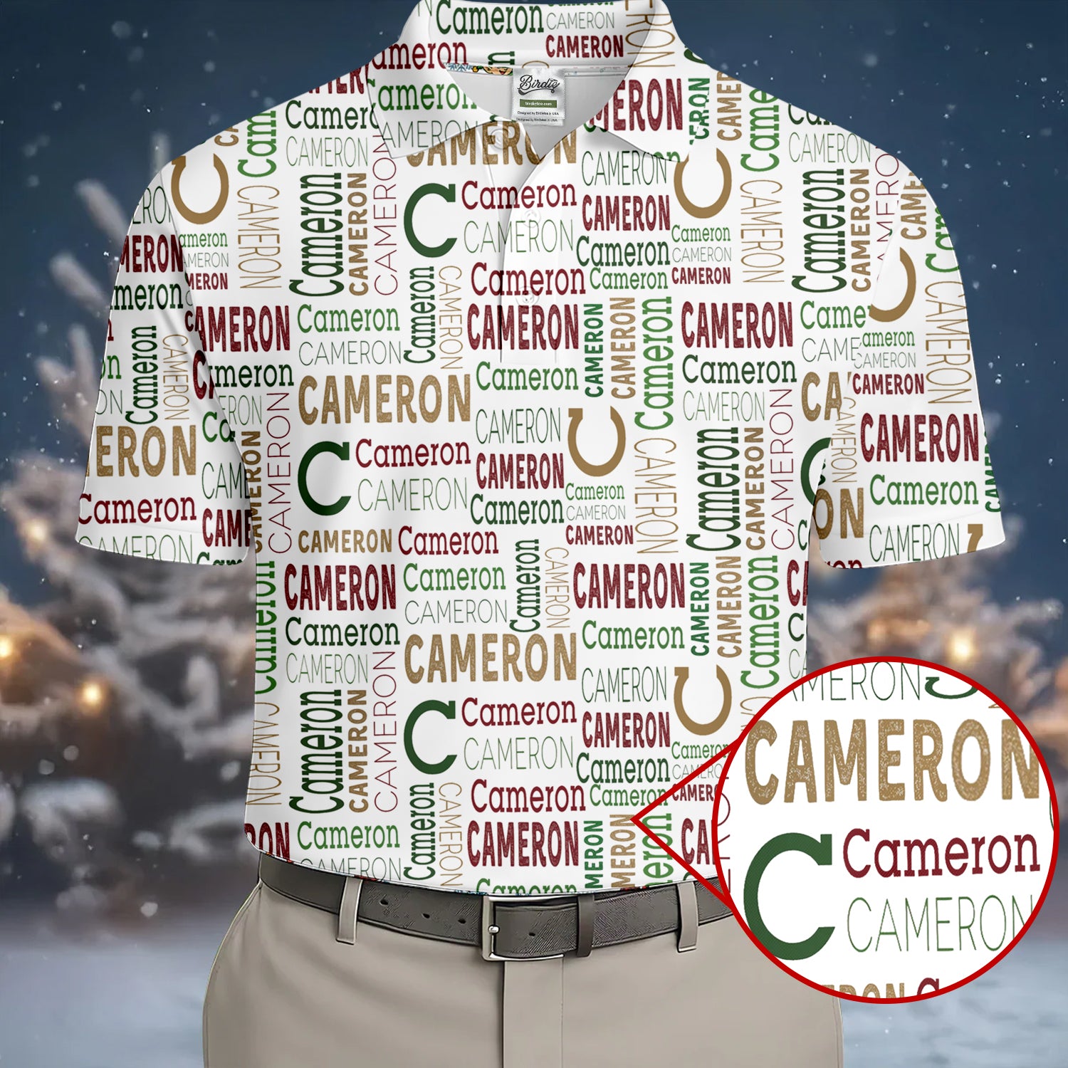 Cameron Pattern Christmas Golf Tops For Men, Christmas Golf Shirt, Men Golf Apparel