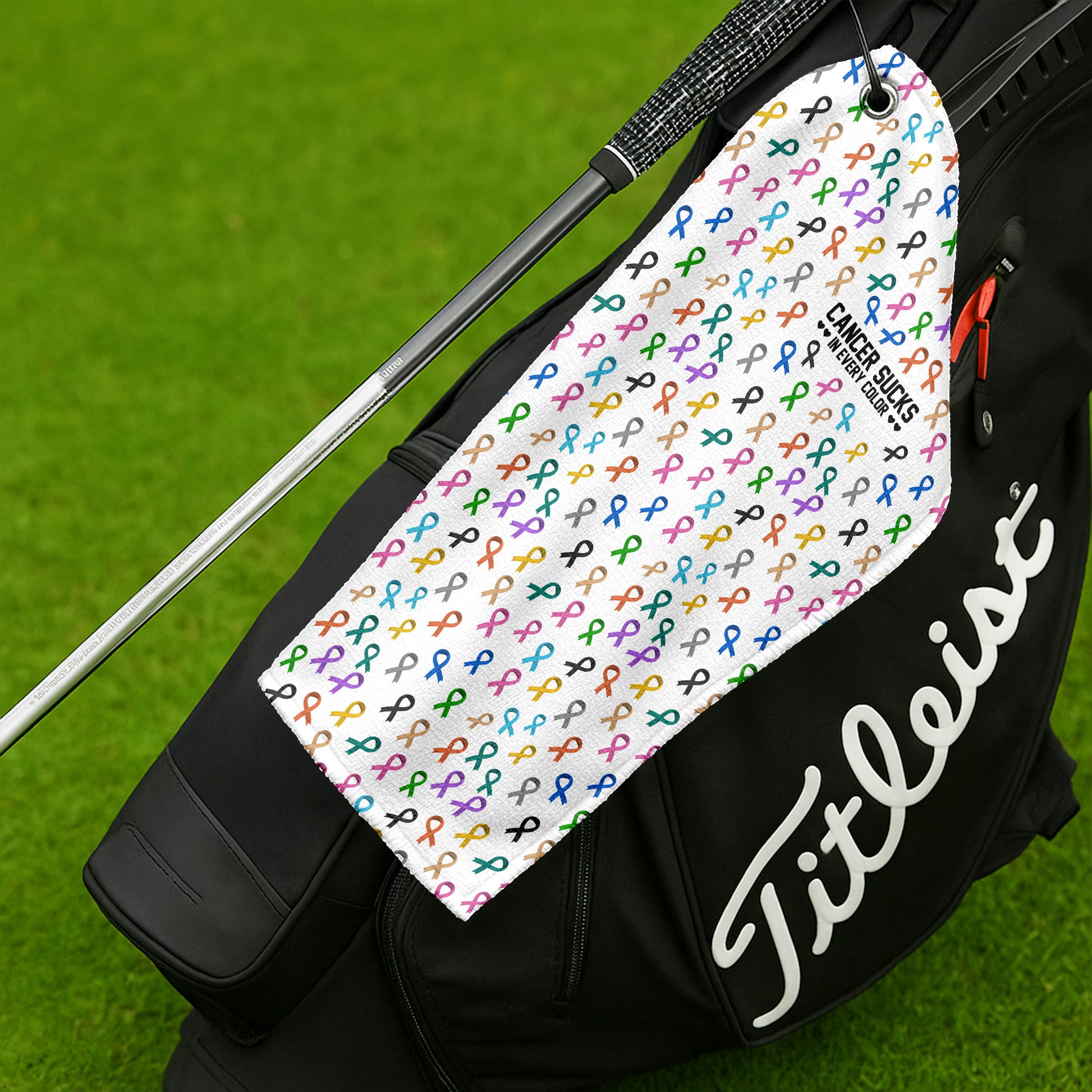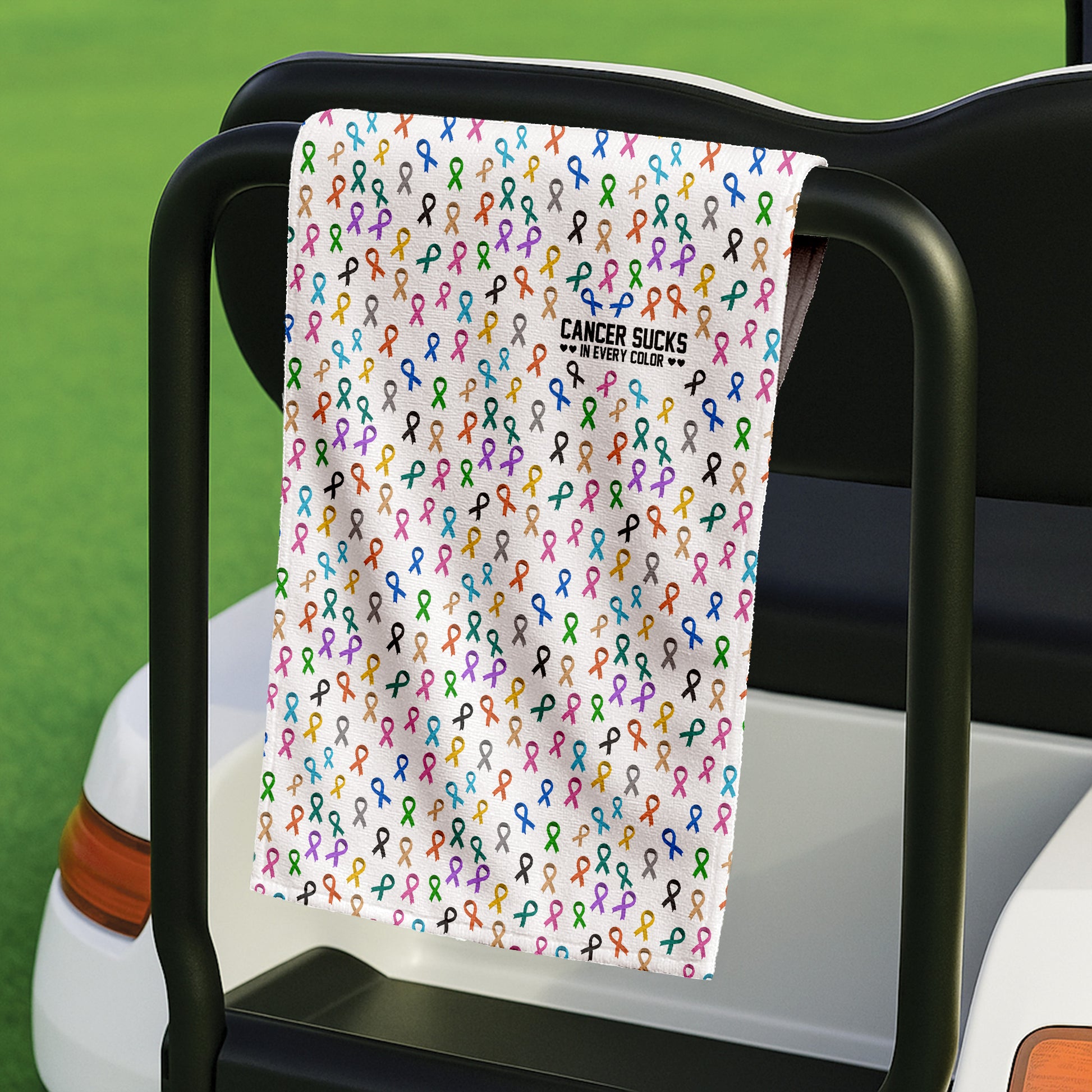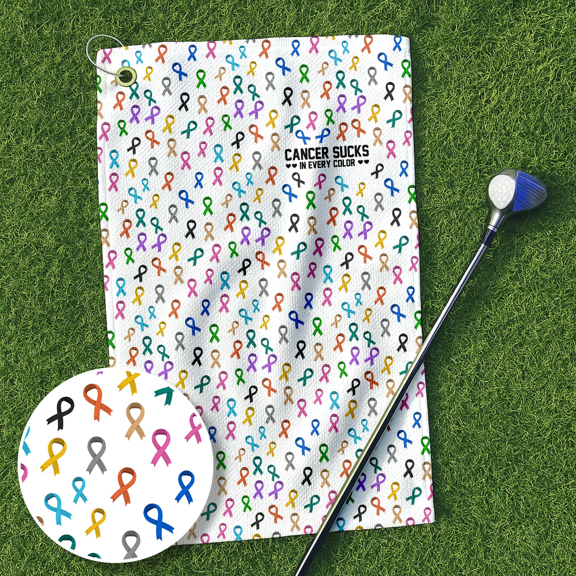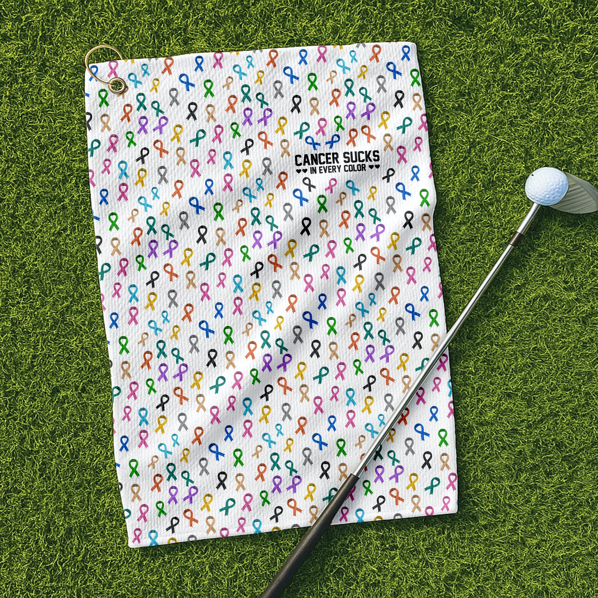 Cancer Awareness Ribbons White Golf Towel, Christmas Golf Gift, Golf Accessories