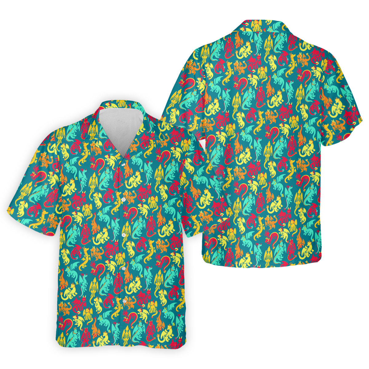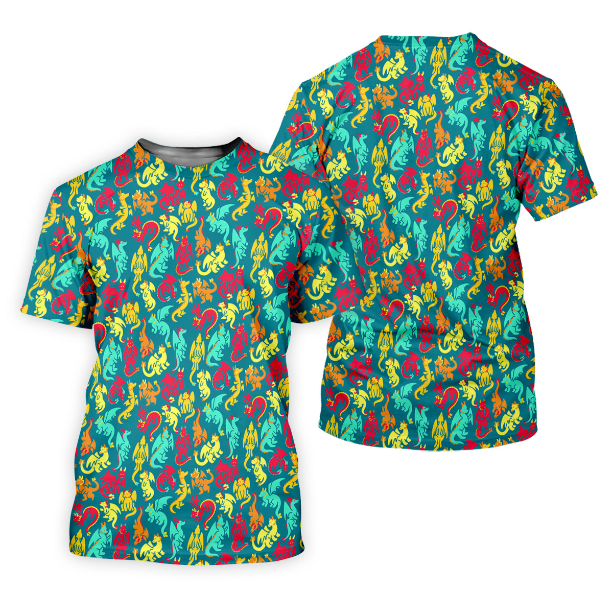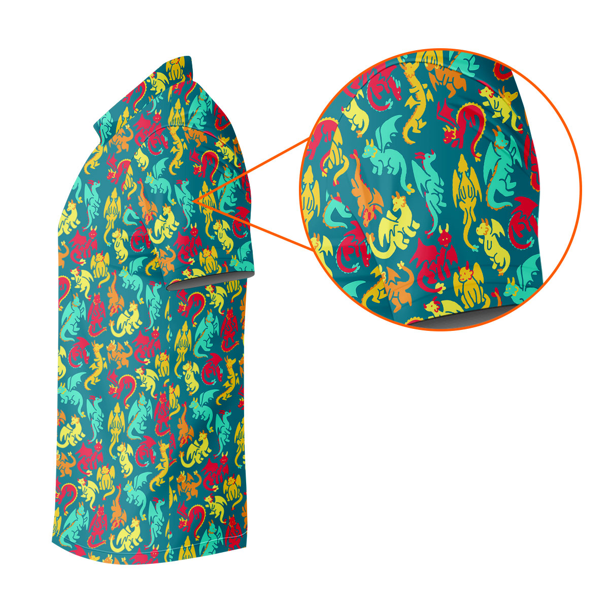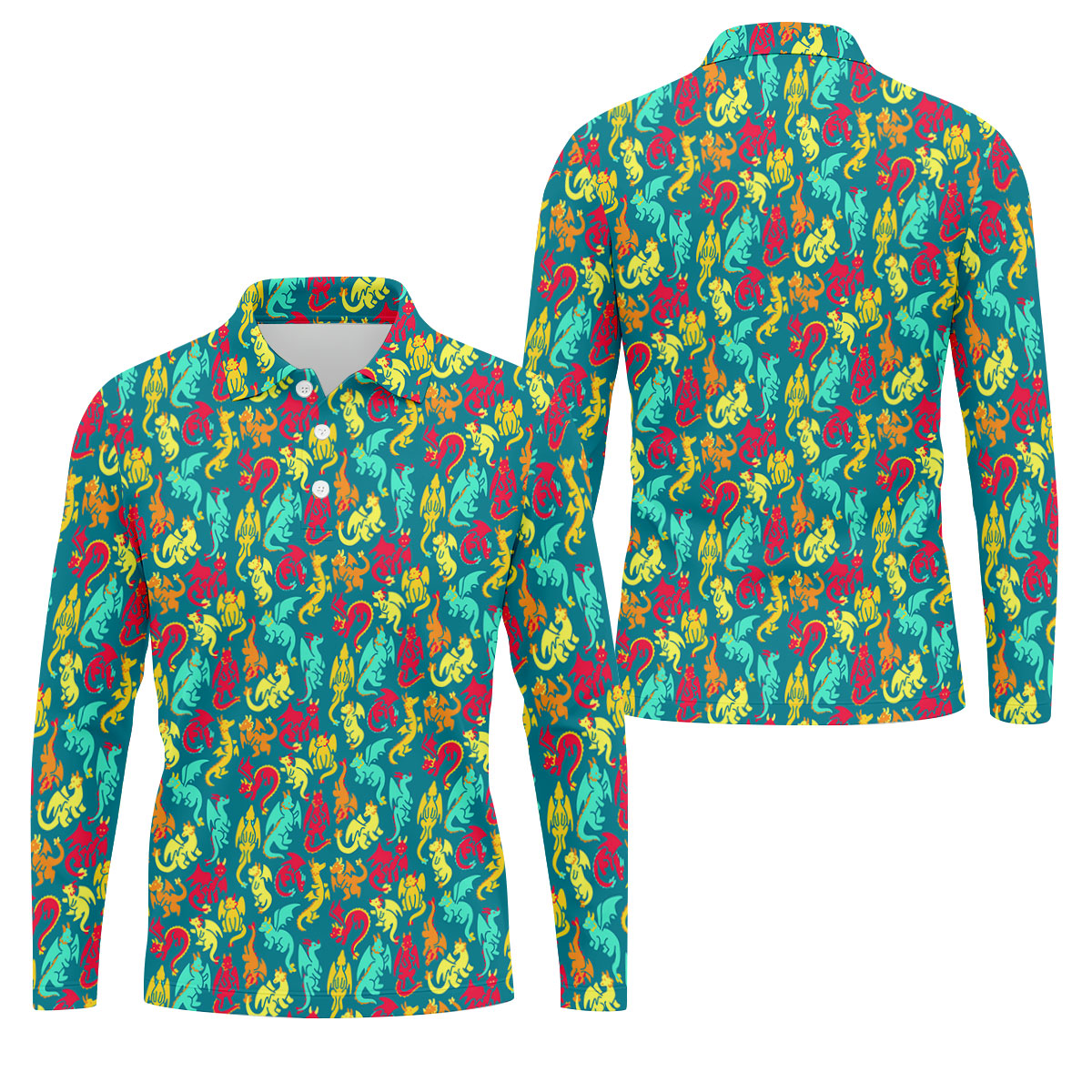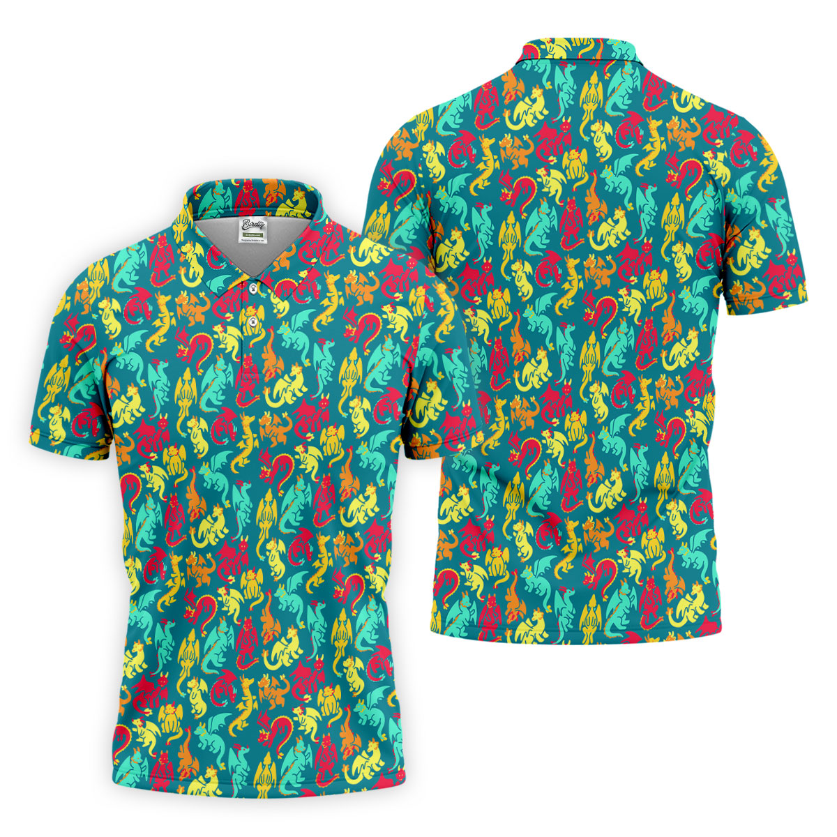 Cartoon Dragons Colorful Golf Shirt, Cute Golf Outfit, Polo Shirts For Men, Golf Shirts For Men