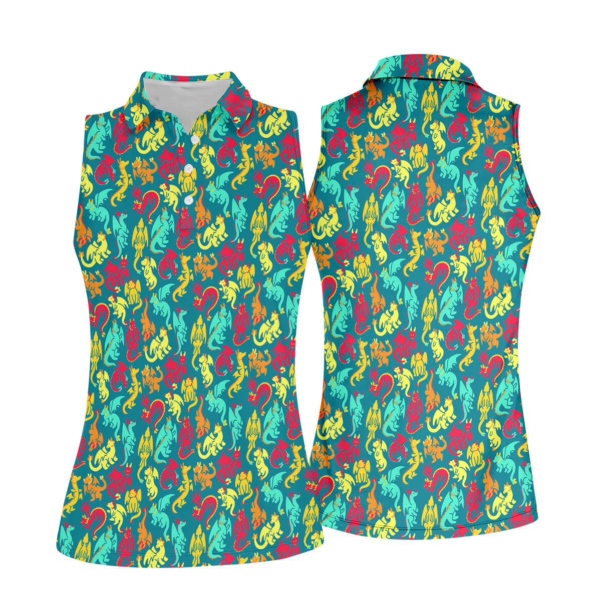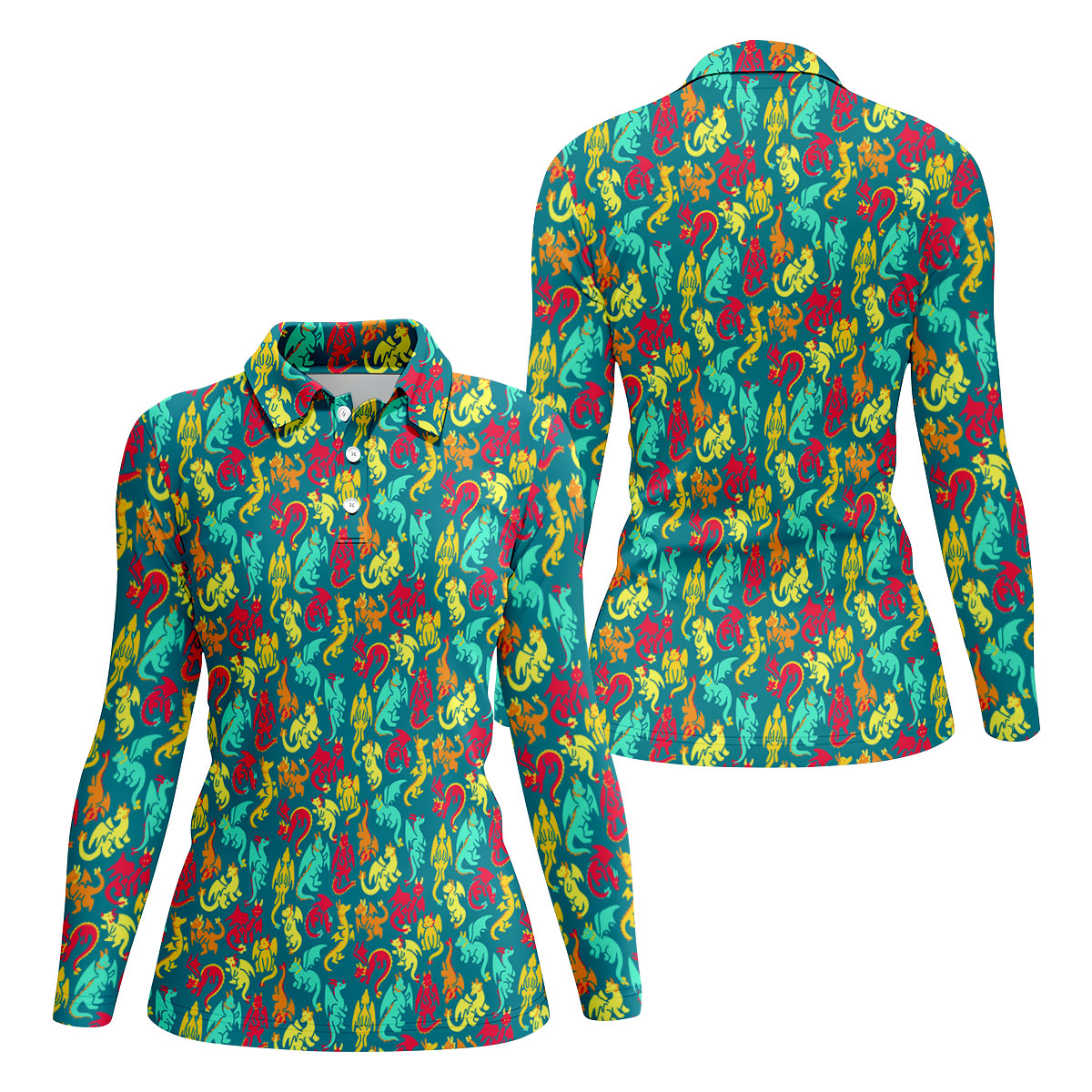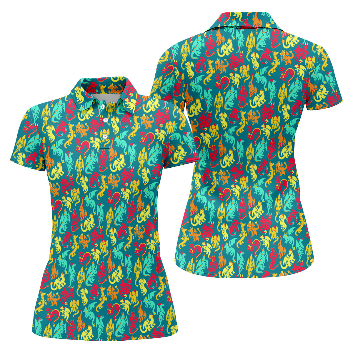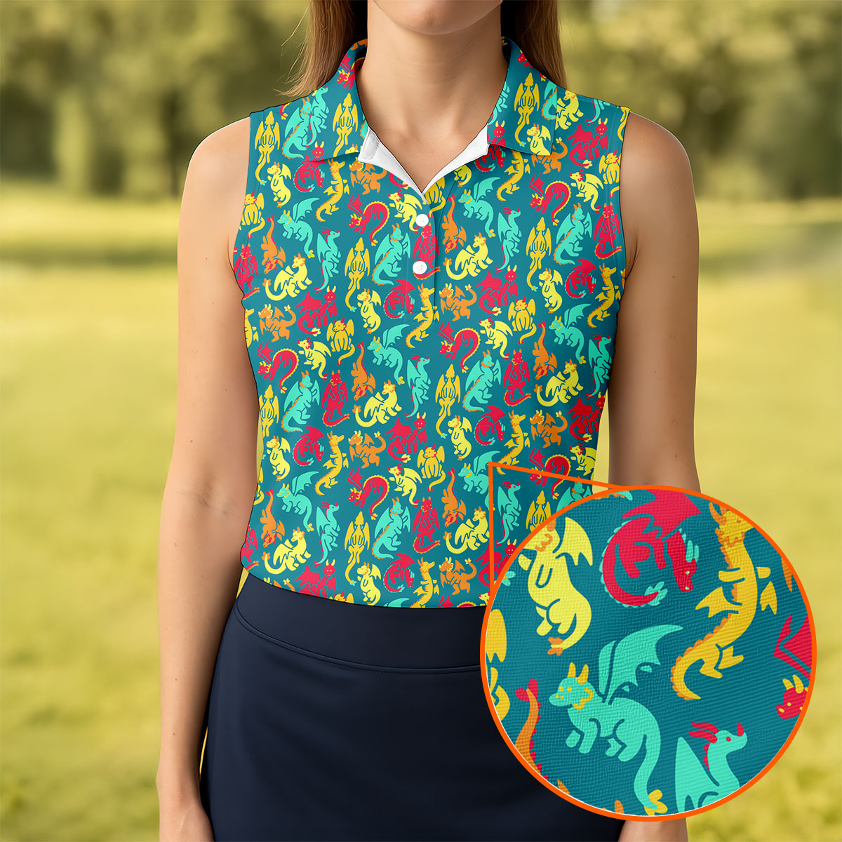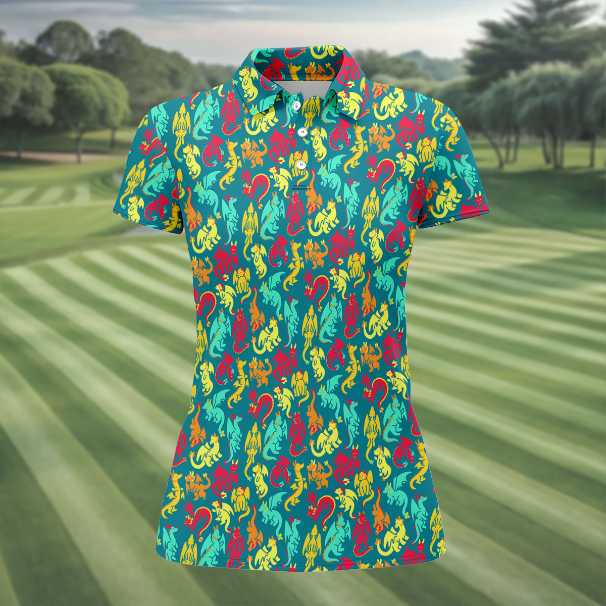 Cartoon Dragons Colorful Golf Shirt, Cute Golf Outfit, Women's Polo Shirt, Ladies Golf Shirts