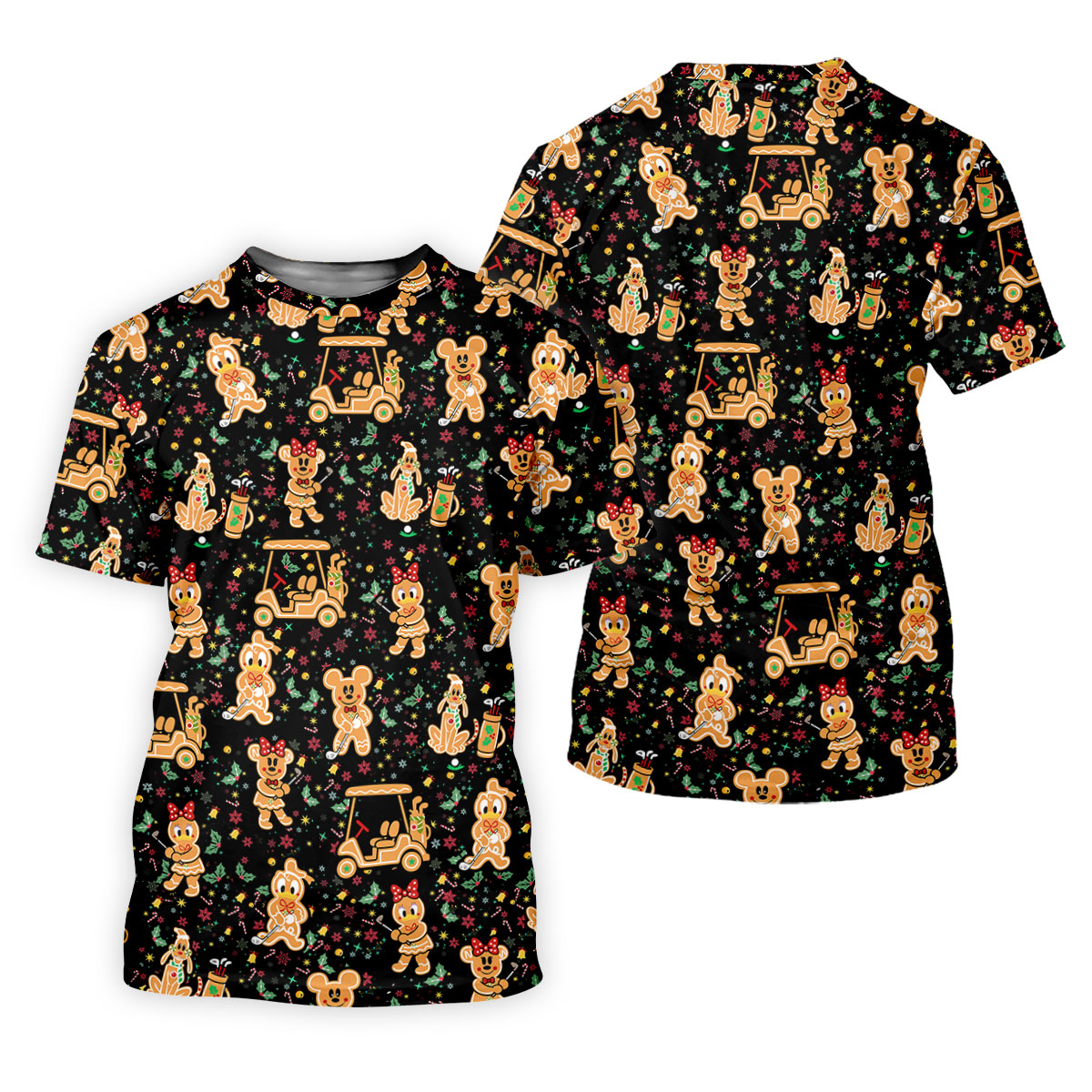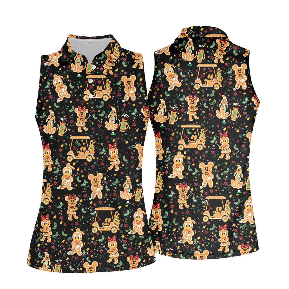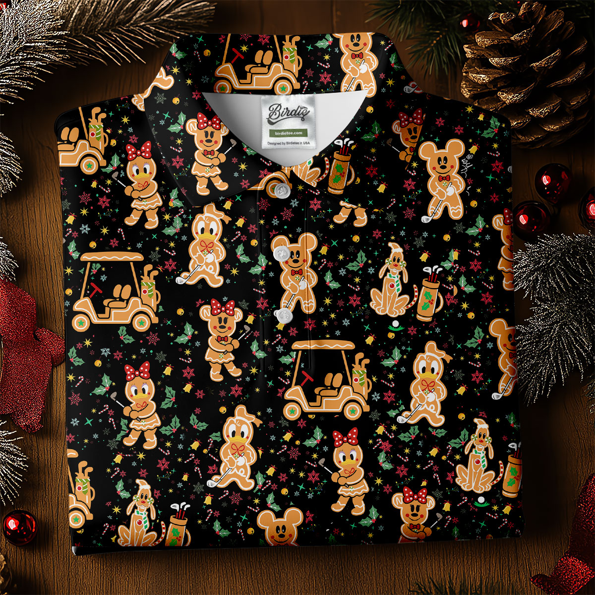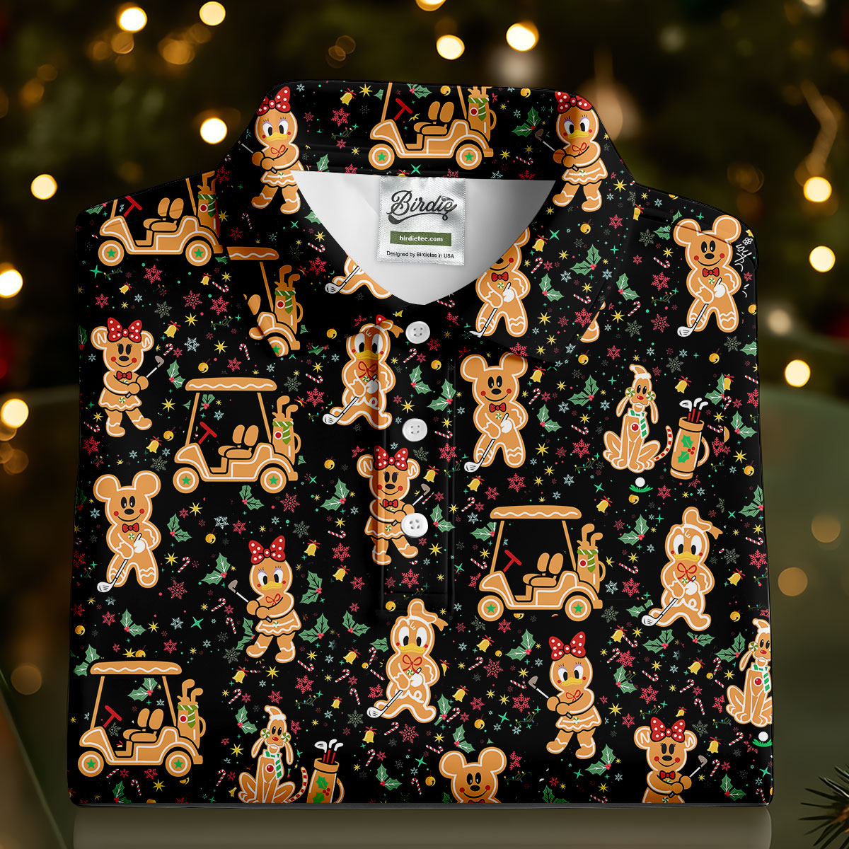 Cartoon Gingerbread Black Golf Shirt, Christmas Golf Shirt, Ladies Golf Shirts, Women's Polo Shirt