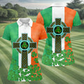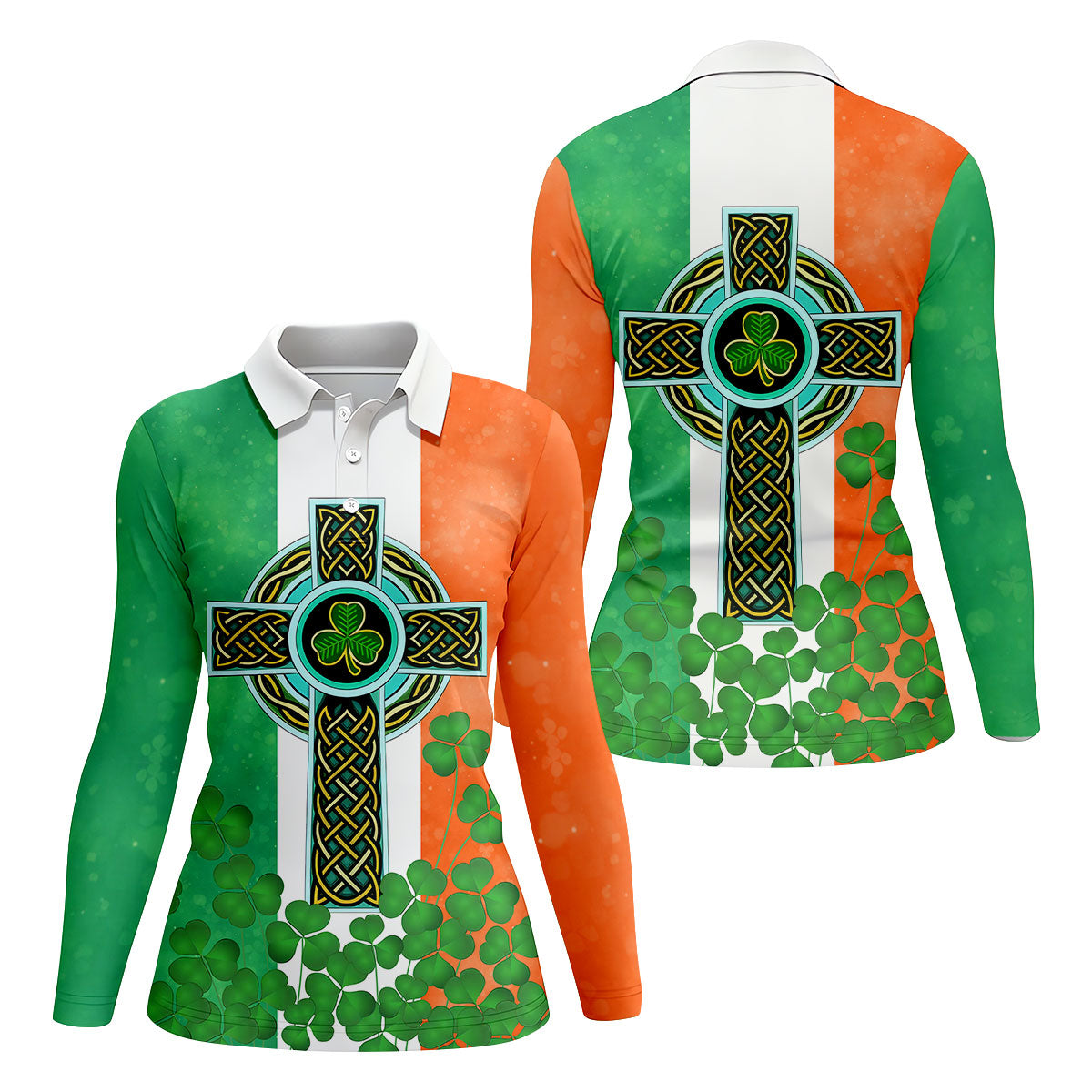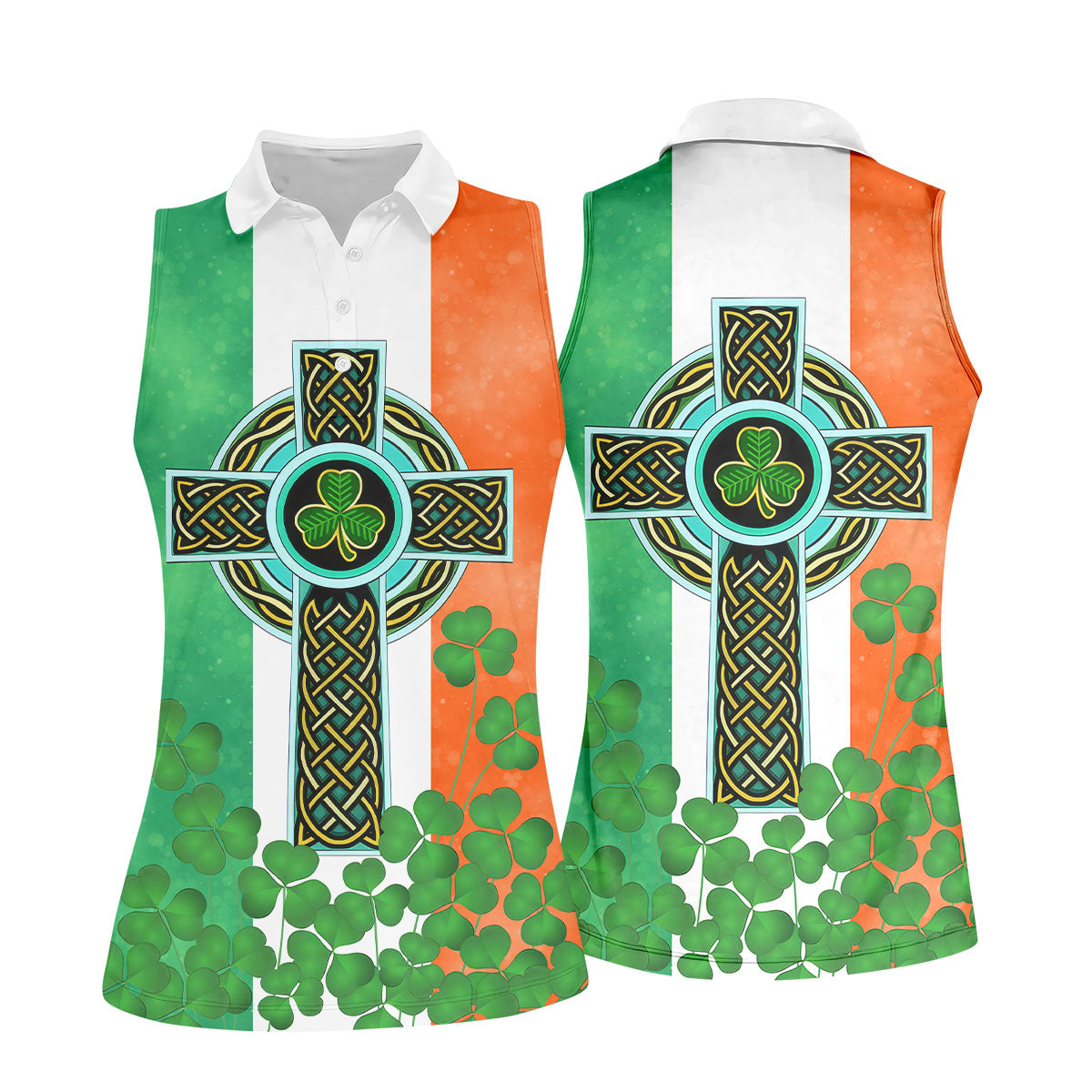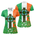 Celtic Cross Knotwork St Patrick's Day Shamrock Golf Shirt, Women's Golf Tops, Ladies Golf Shirts