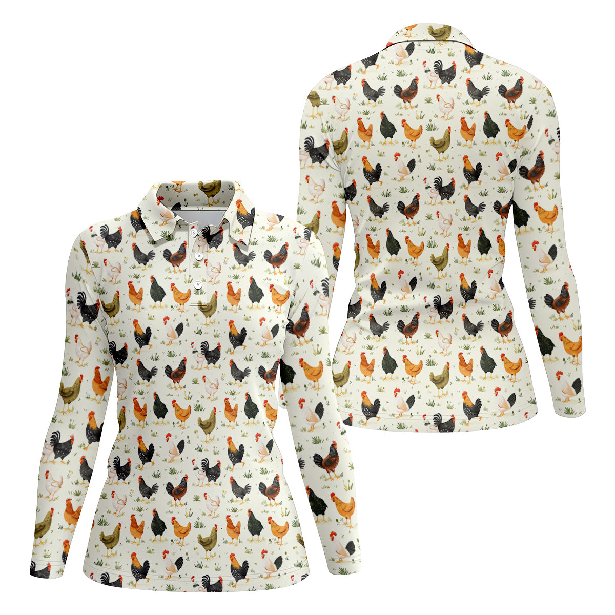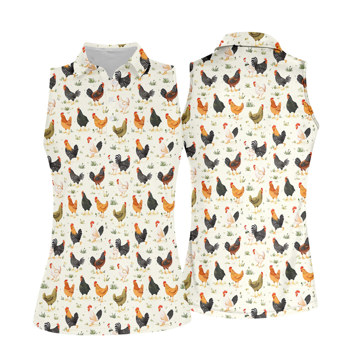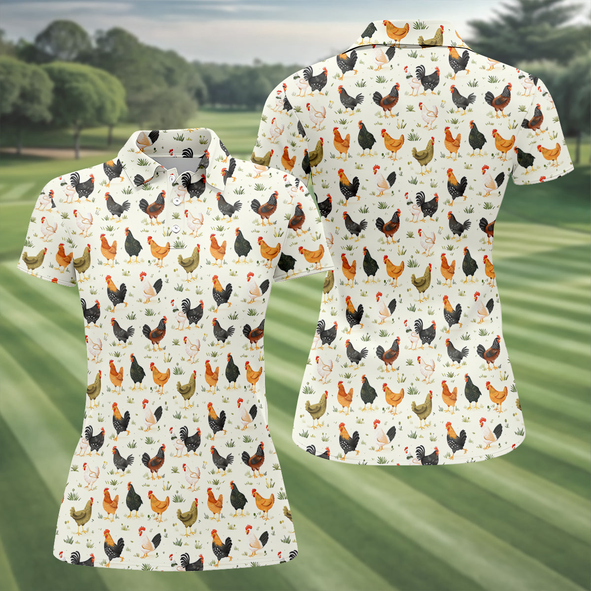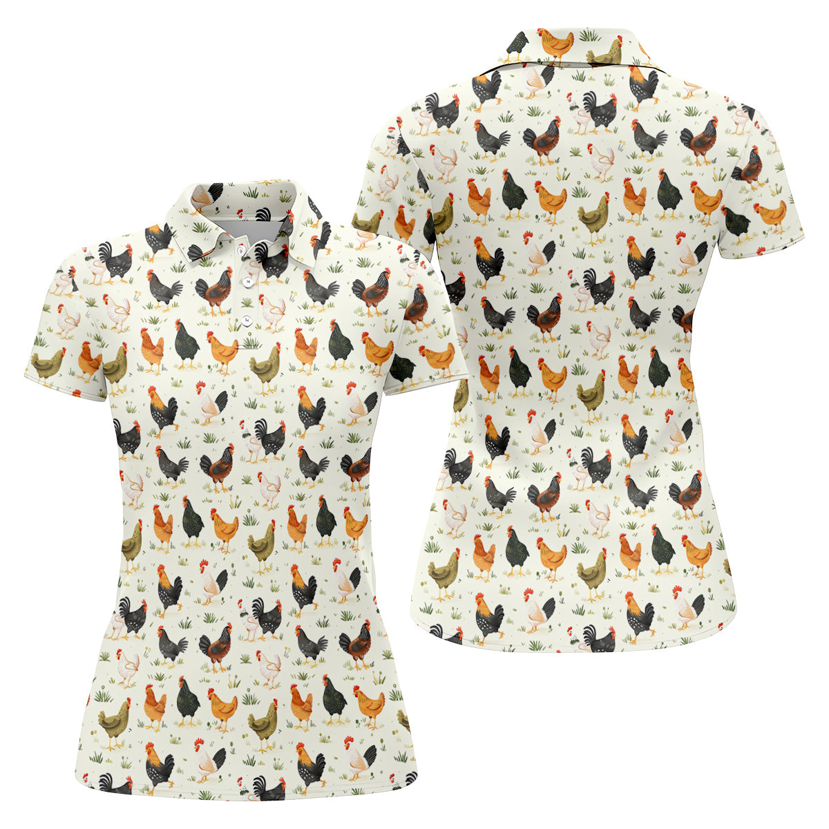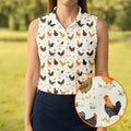 Chicken Rooster Beige Women Golf Top, Gift For Chicken Lover, Ladies Golf Shirts, Women's Polo Shirt