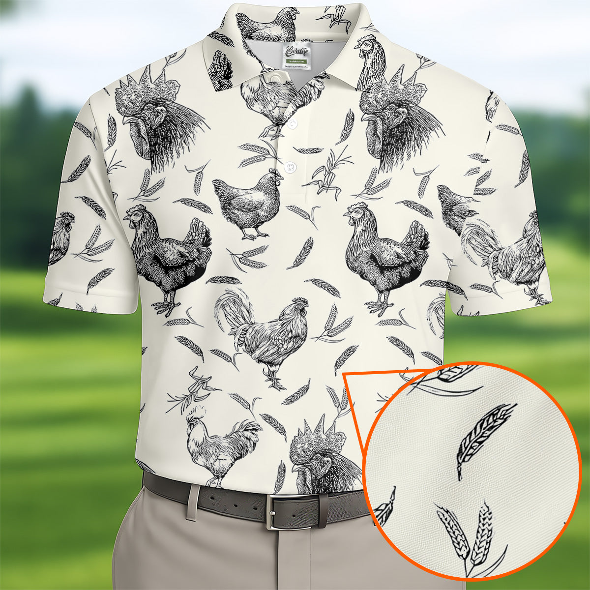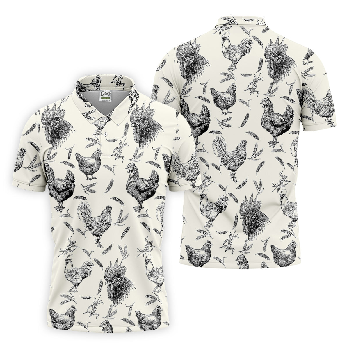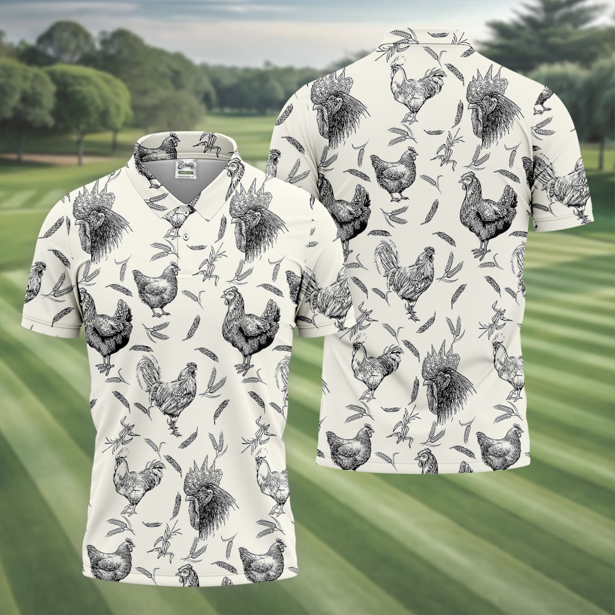 Chicken Rooster Golf Tops For Men, Gift For Chicken Lover, Fun Golf Shirts For Men, Polo Shirts For Men