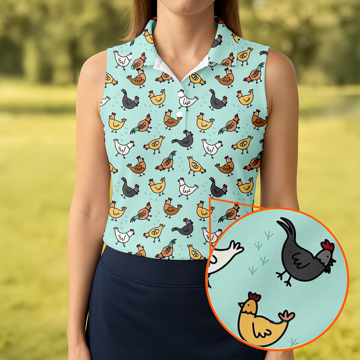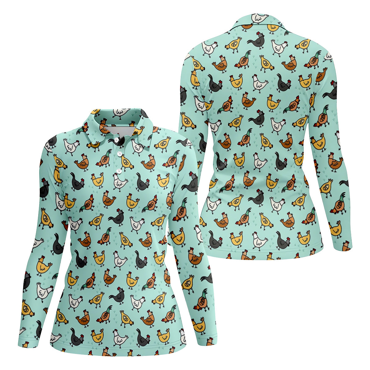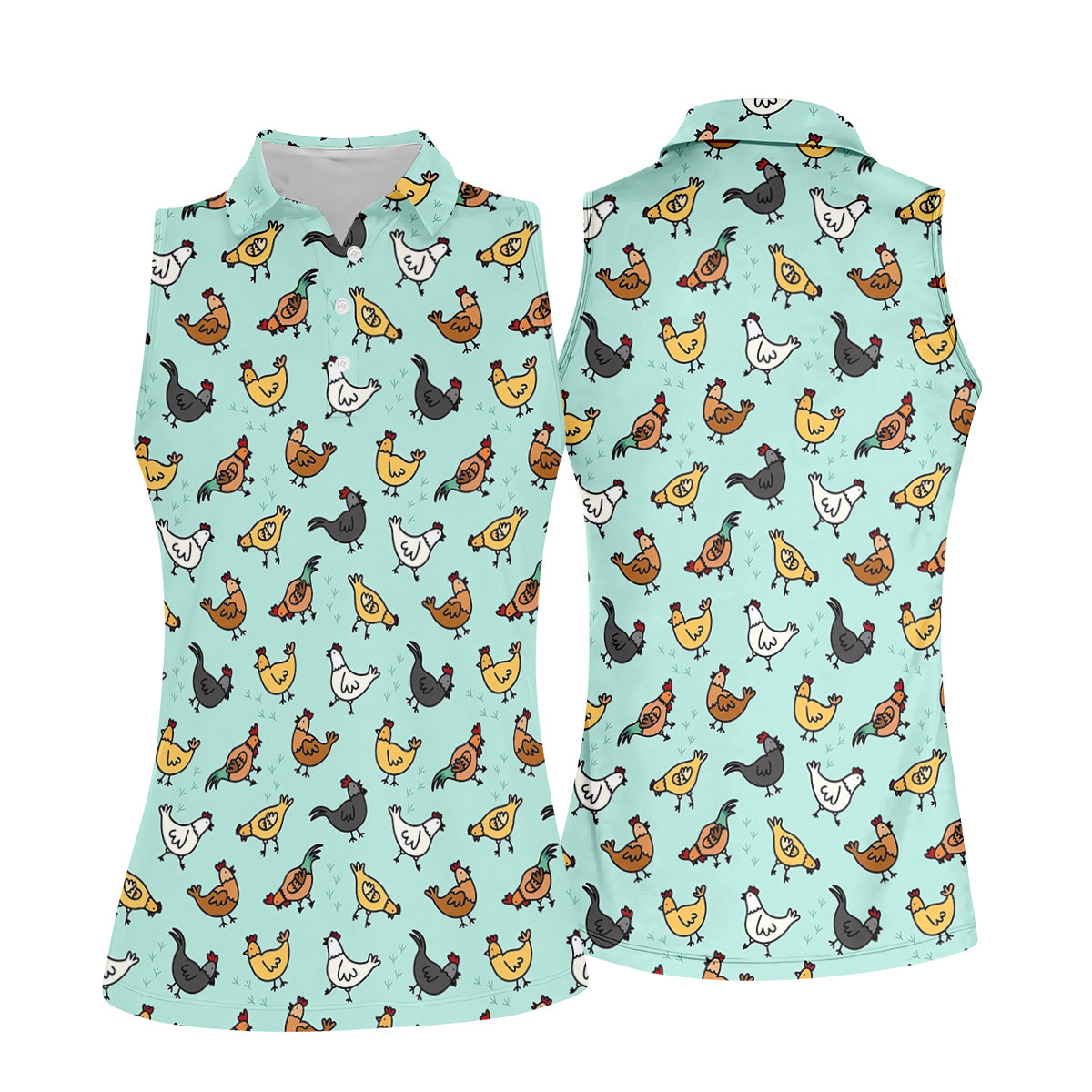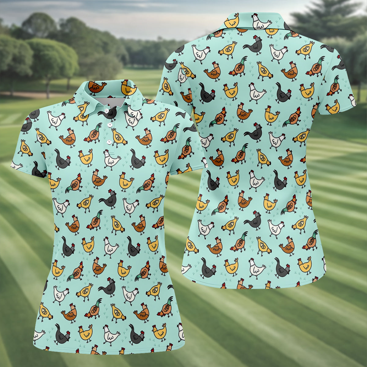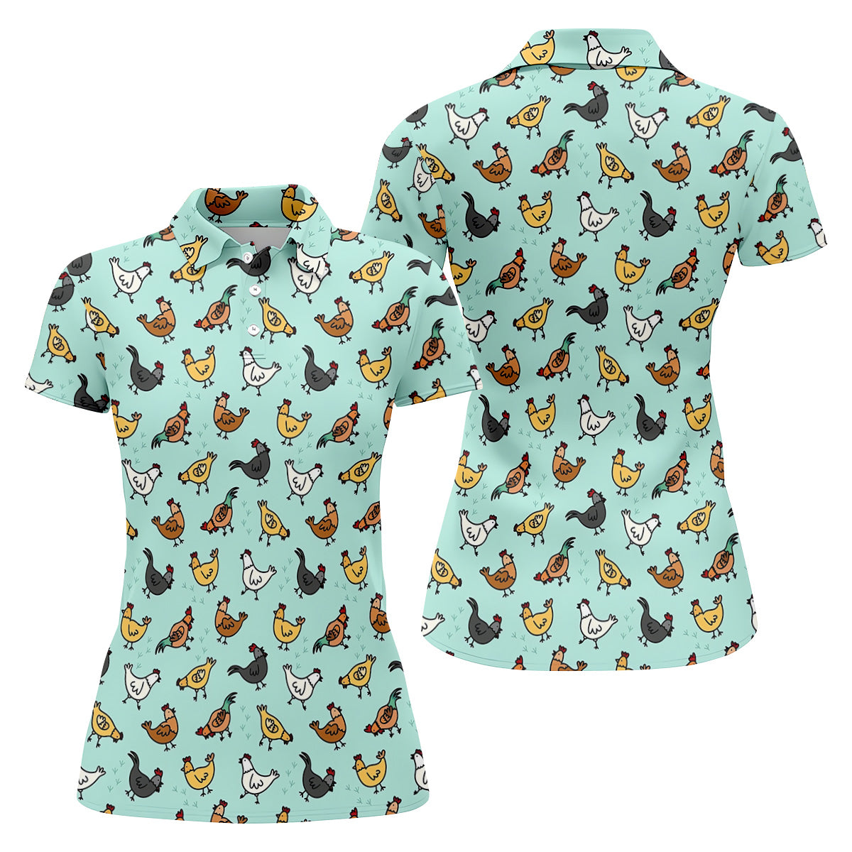 Chicken Rooster Mint Women Golf Top, Gift For Chicken Lover, Ladies Golf Shirts, Women's Polo Shirt
