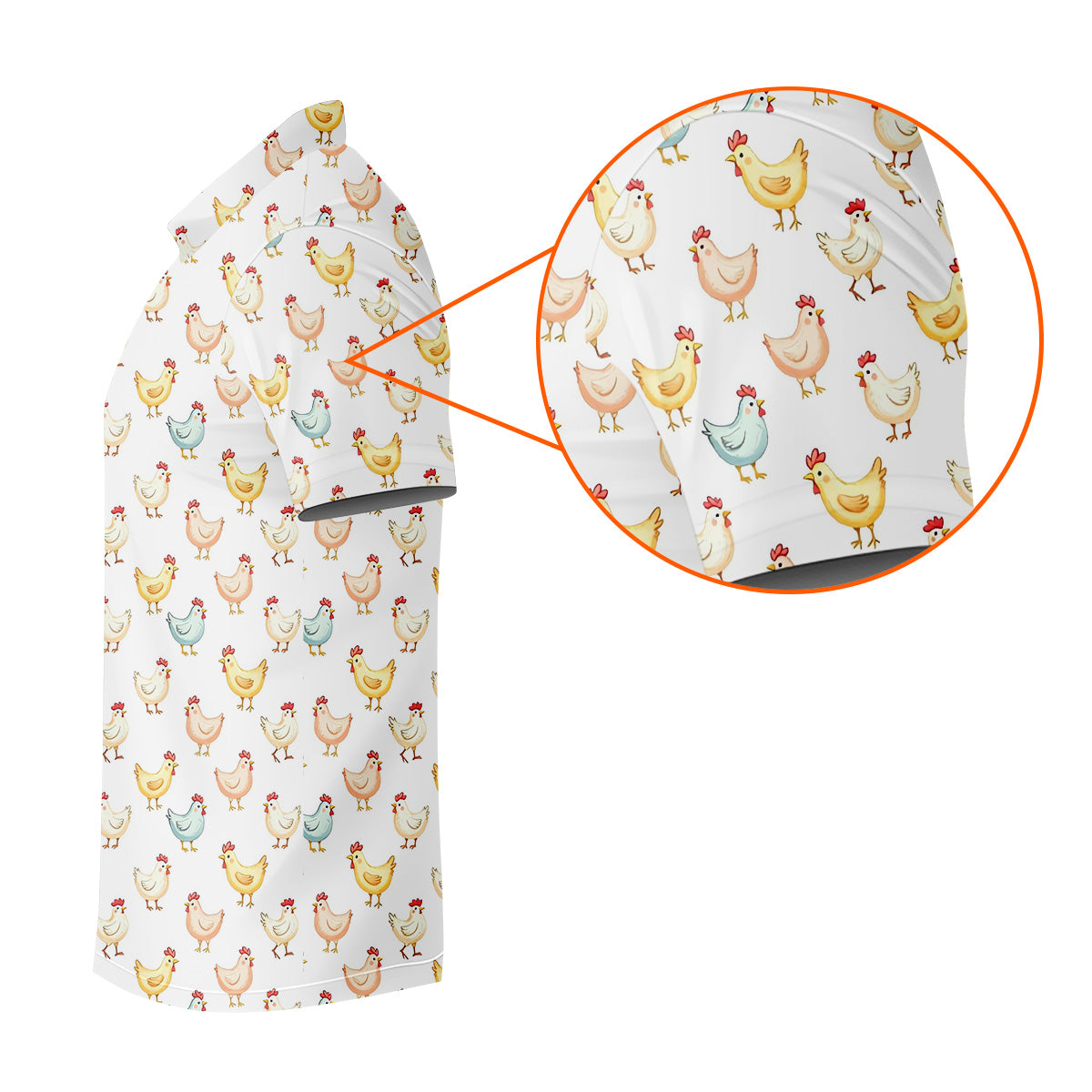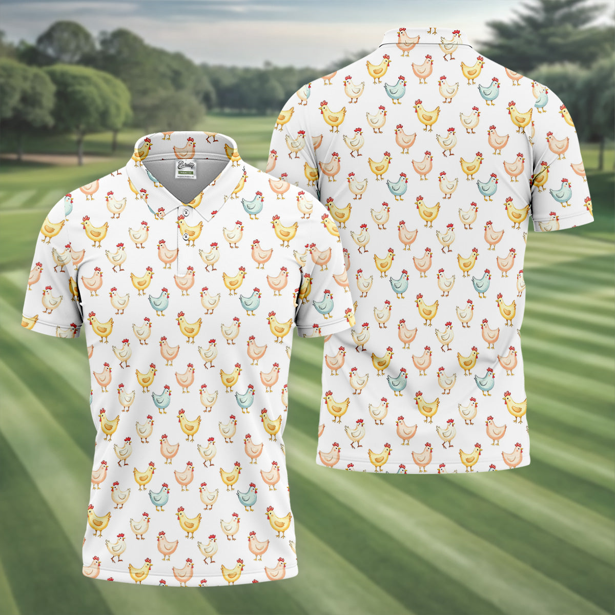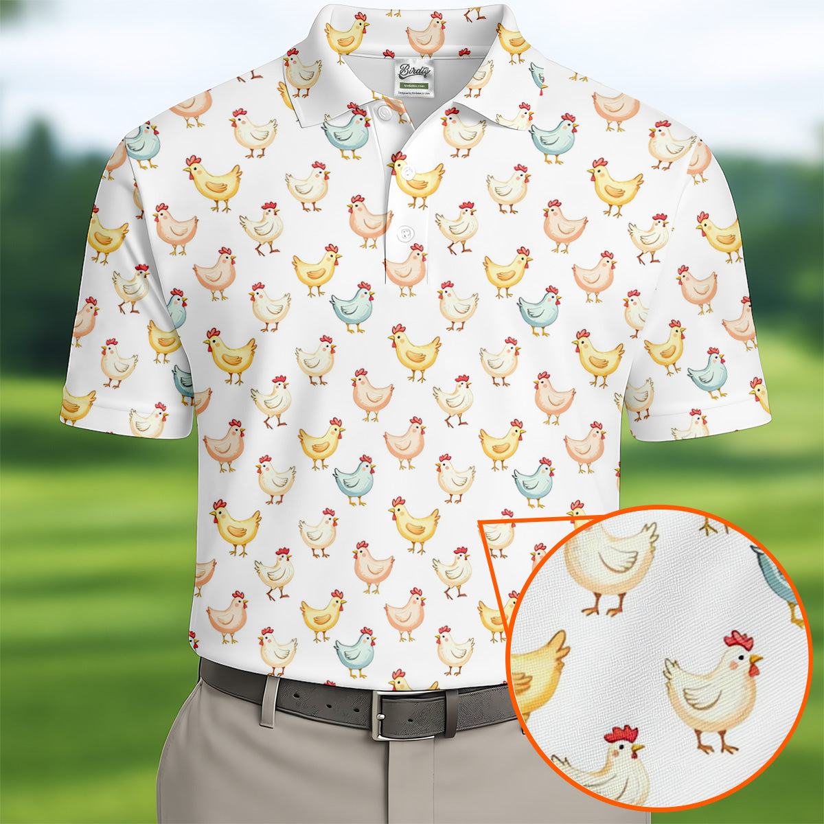 Chicken Rooster White Golf Tops For Men, Gift For Chicken Lover, Fun Golf Shirts For Men, Golfing Apparel