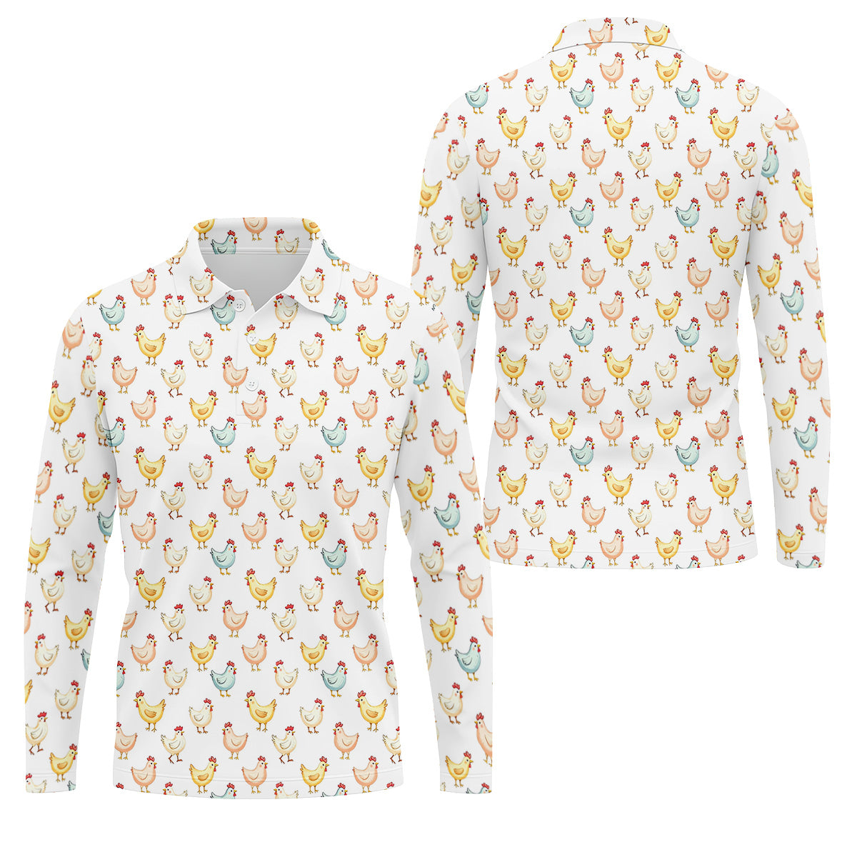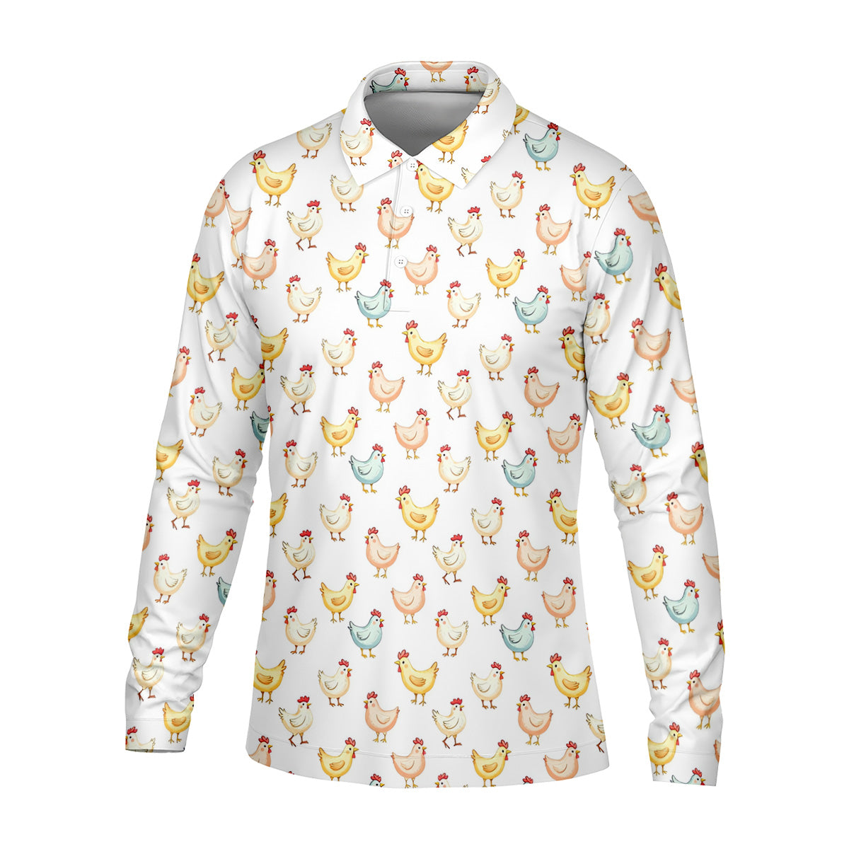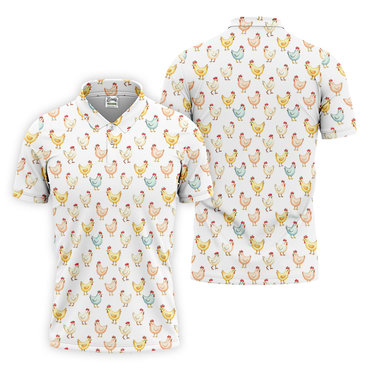Chicken Rooster White Golf Tops For Men, Gift For Chicken Lover, Fun Golf Shirts For Men, Golfing Apparel