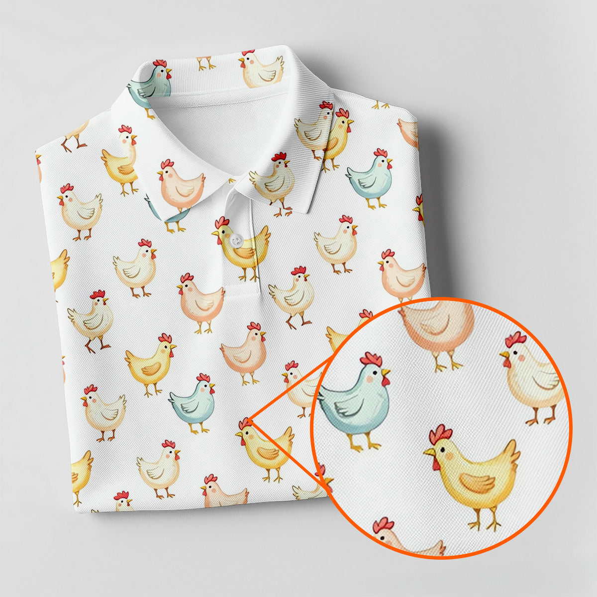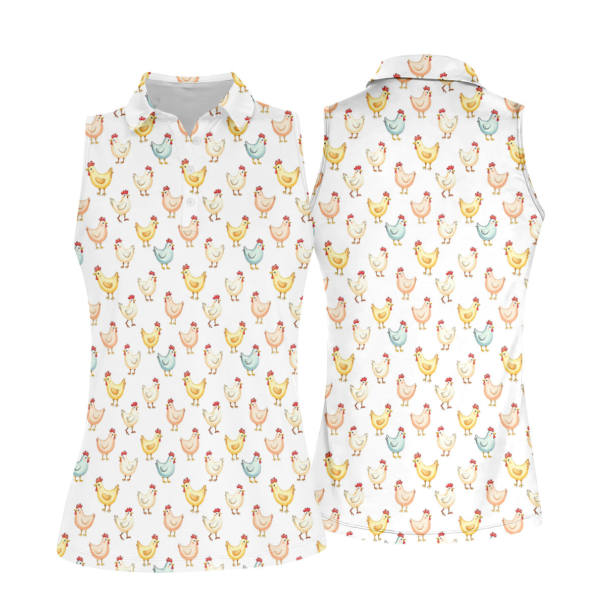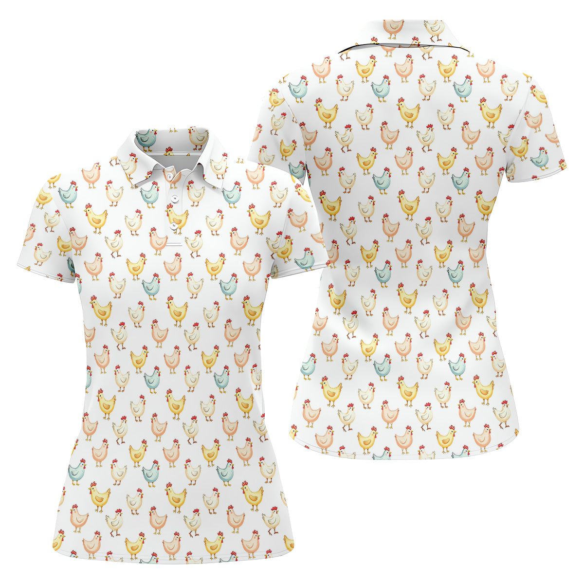 Chicken Rooster White Women Golf Top, Gift For Chicken Lover, Ladies Golf Shirts, Women's Polo Shirt