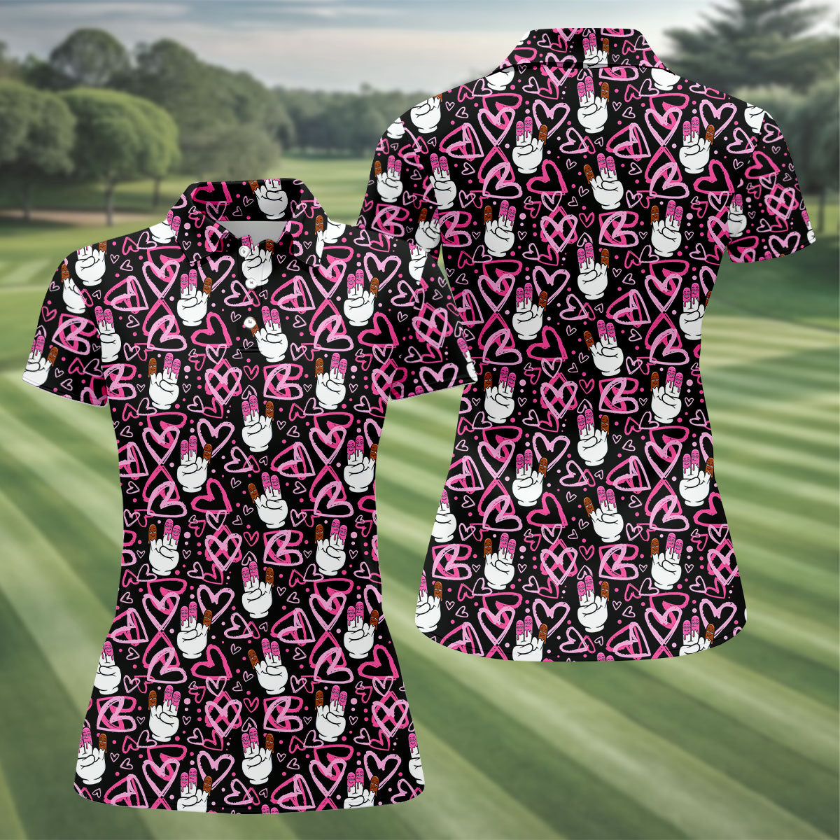 Whether you’re teeing off on Valentine’s Day, playing a couples’ scramble, or just giving your game a little extra heart — this shirt shows up ready to impress.