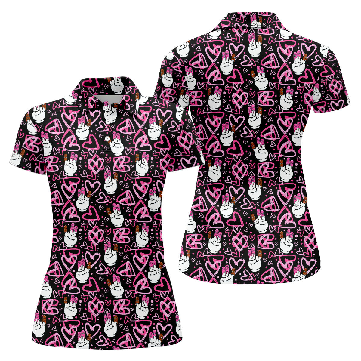 Chocolate Fingers Adult Humor Heart Pattern Fun Women's Golf Shirts, Valentines Golf Gift, Women's Golf Tops