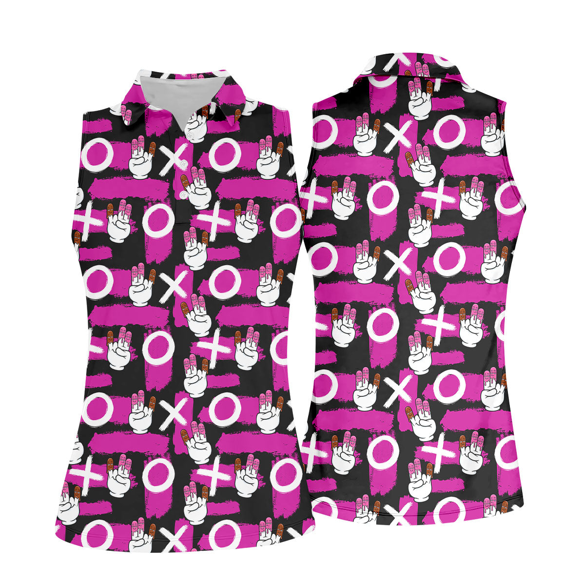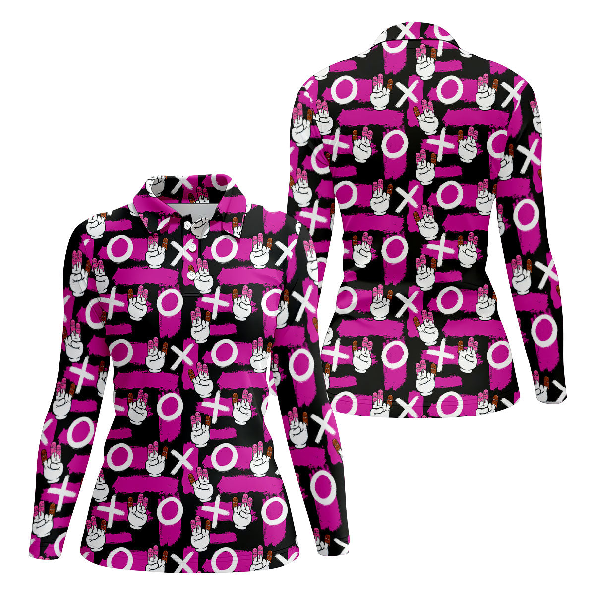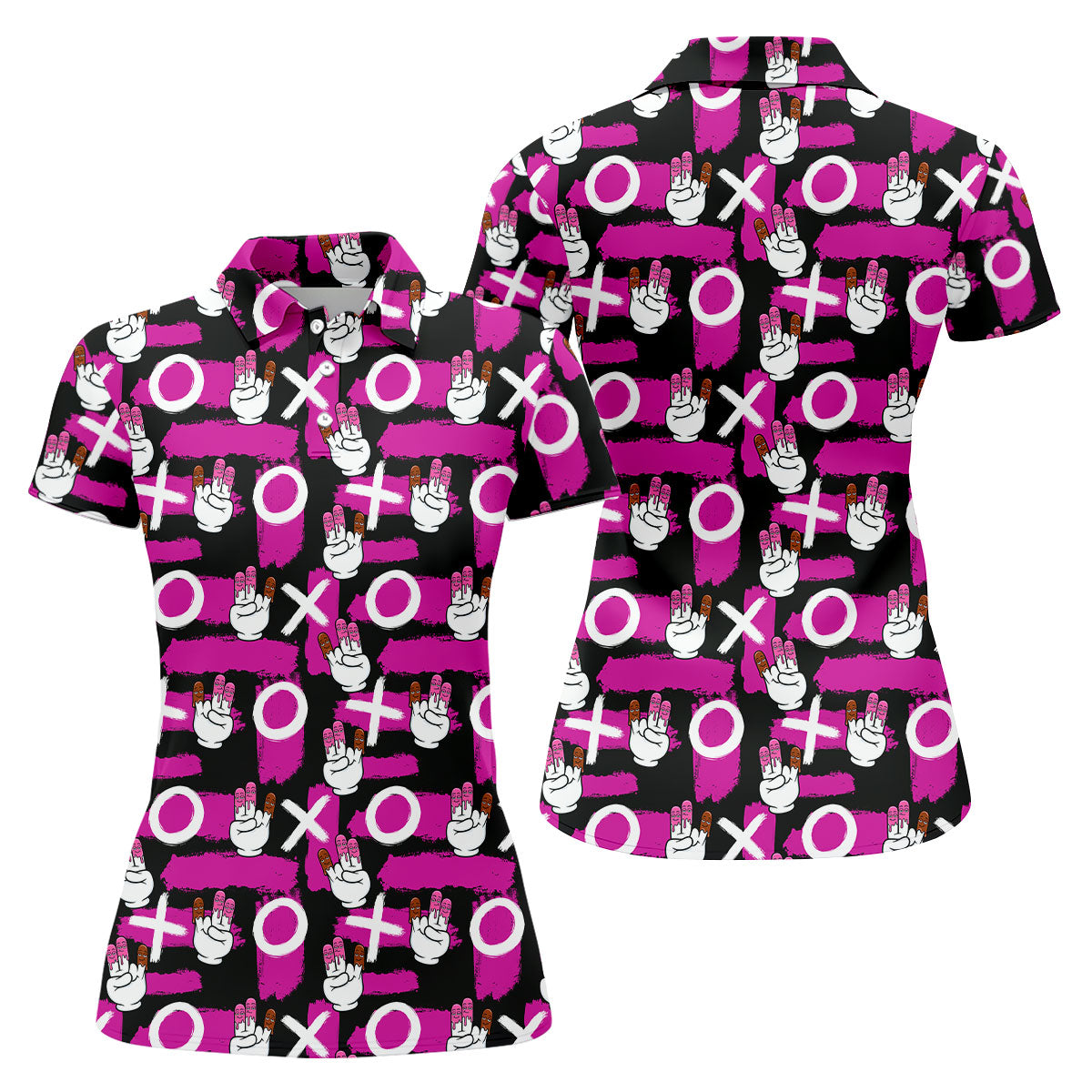 Chocolate Fingers Adult Humor XOXO Black Purple Fun Women's Golf Shirts, Valentines Golf Gift, Women's Golf Tops