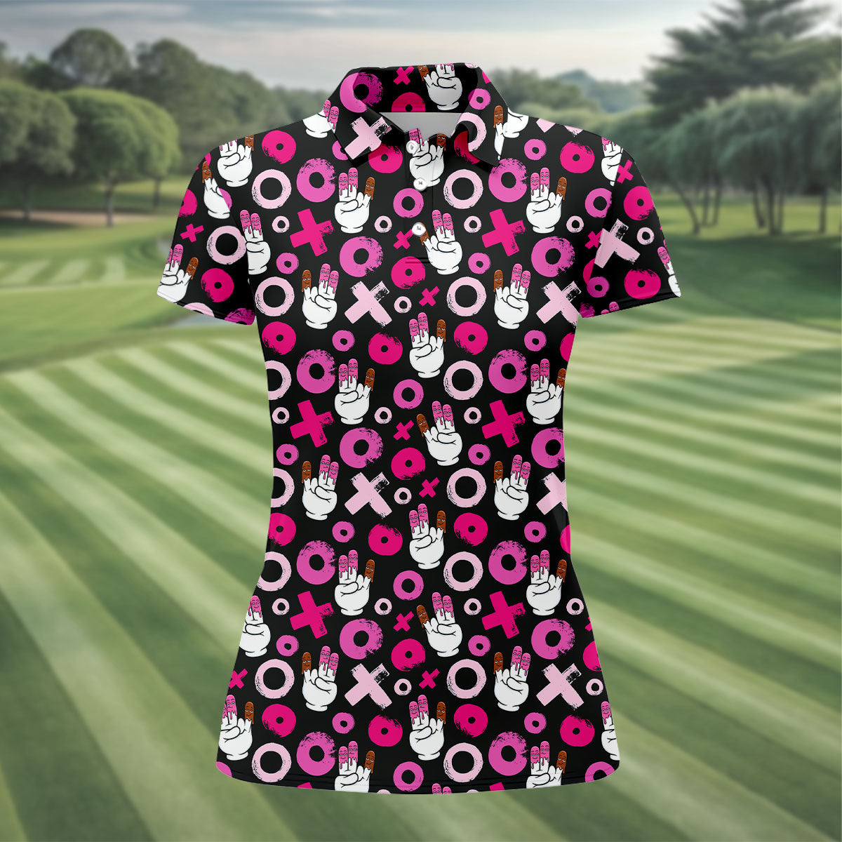 Chocolate Fingers Adult Humor XOXO Fun Women's Golf Shirts, Valentines Golf Gift, Women's Golf Tops