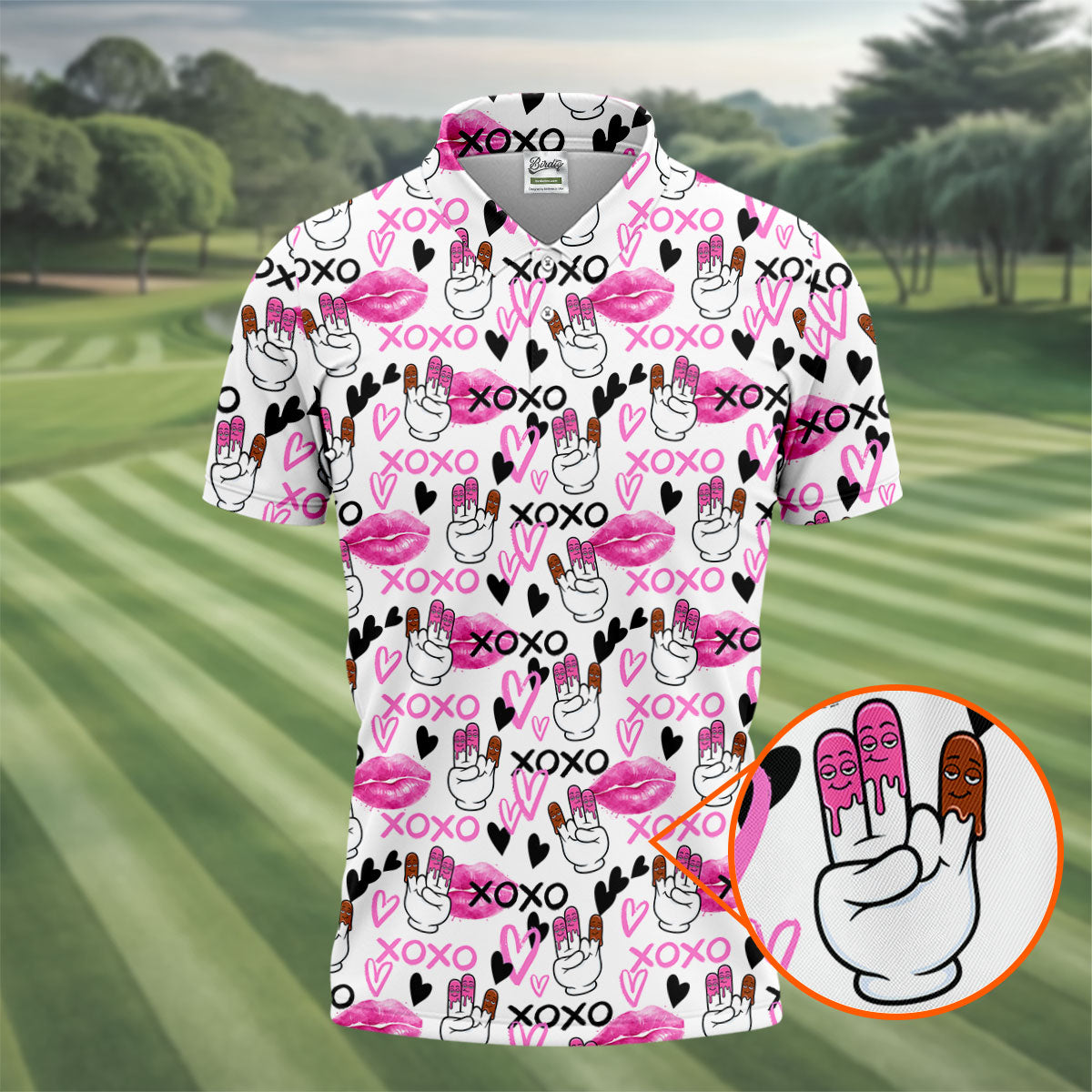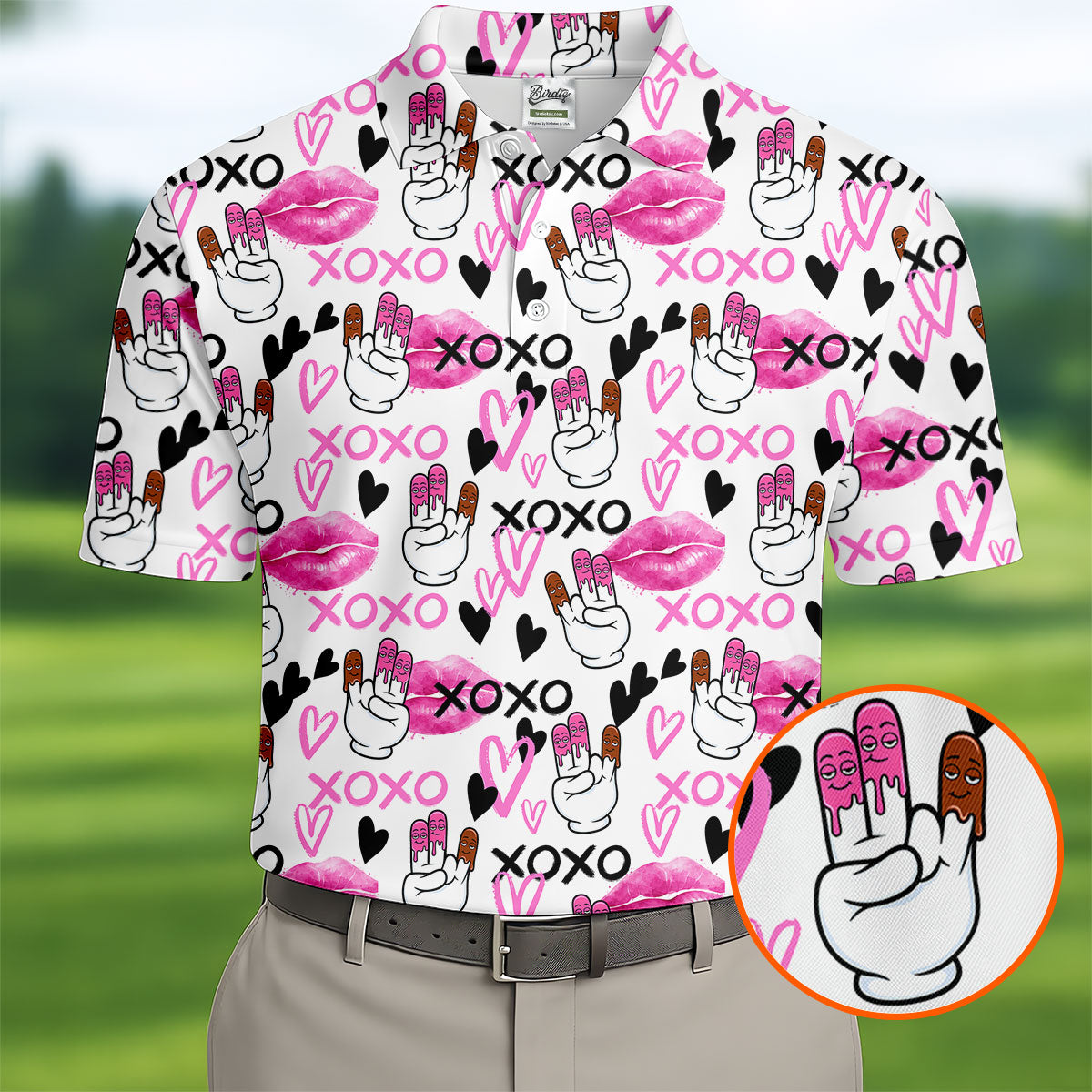 Chocolate Fingers Adult Humor XOXO Lipstick Mark Fun Golf Shirts For Men, Valentines Golf Gift, Polo Shirts For Men