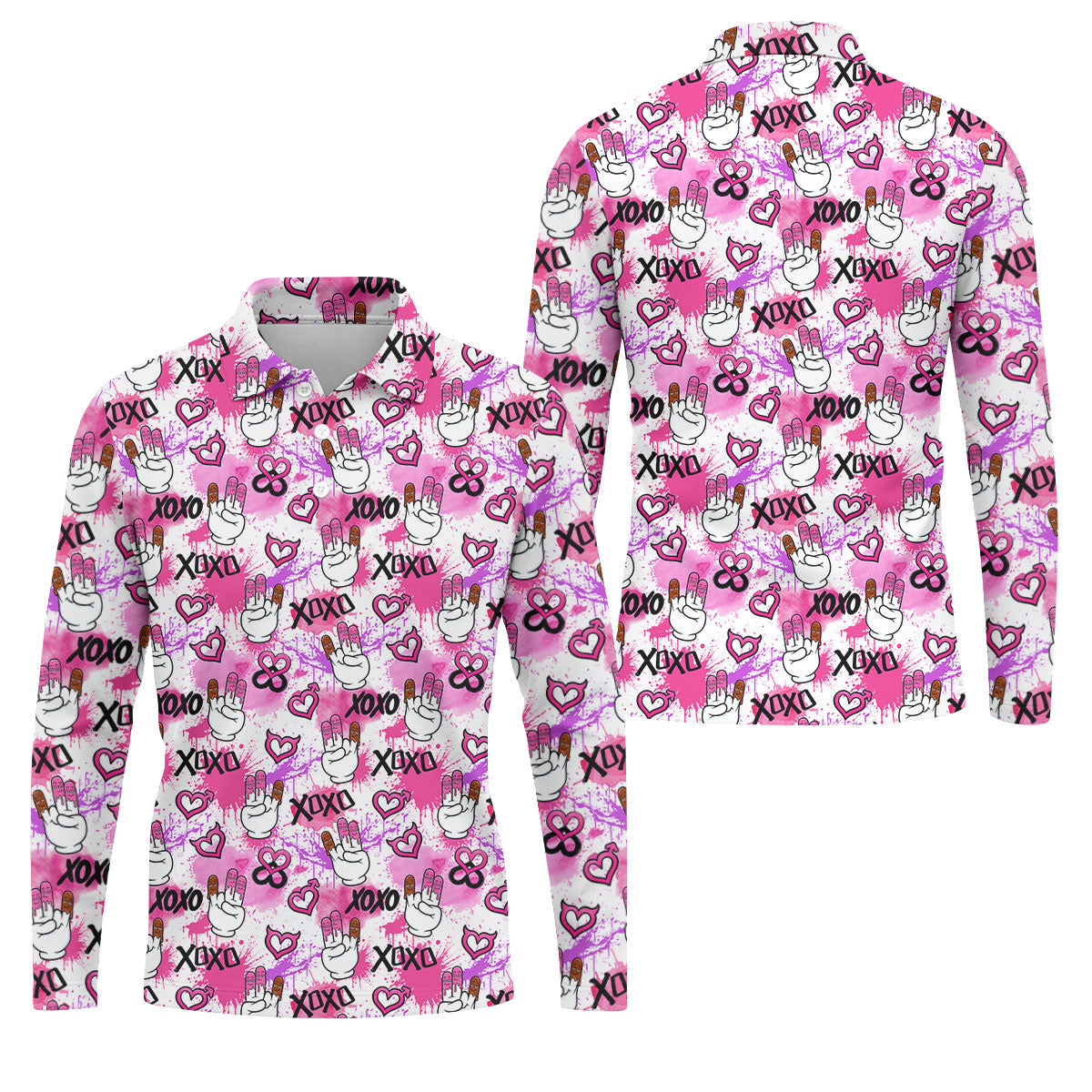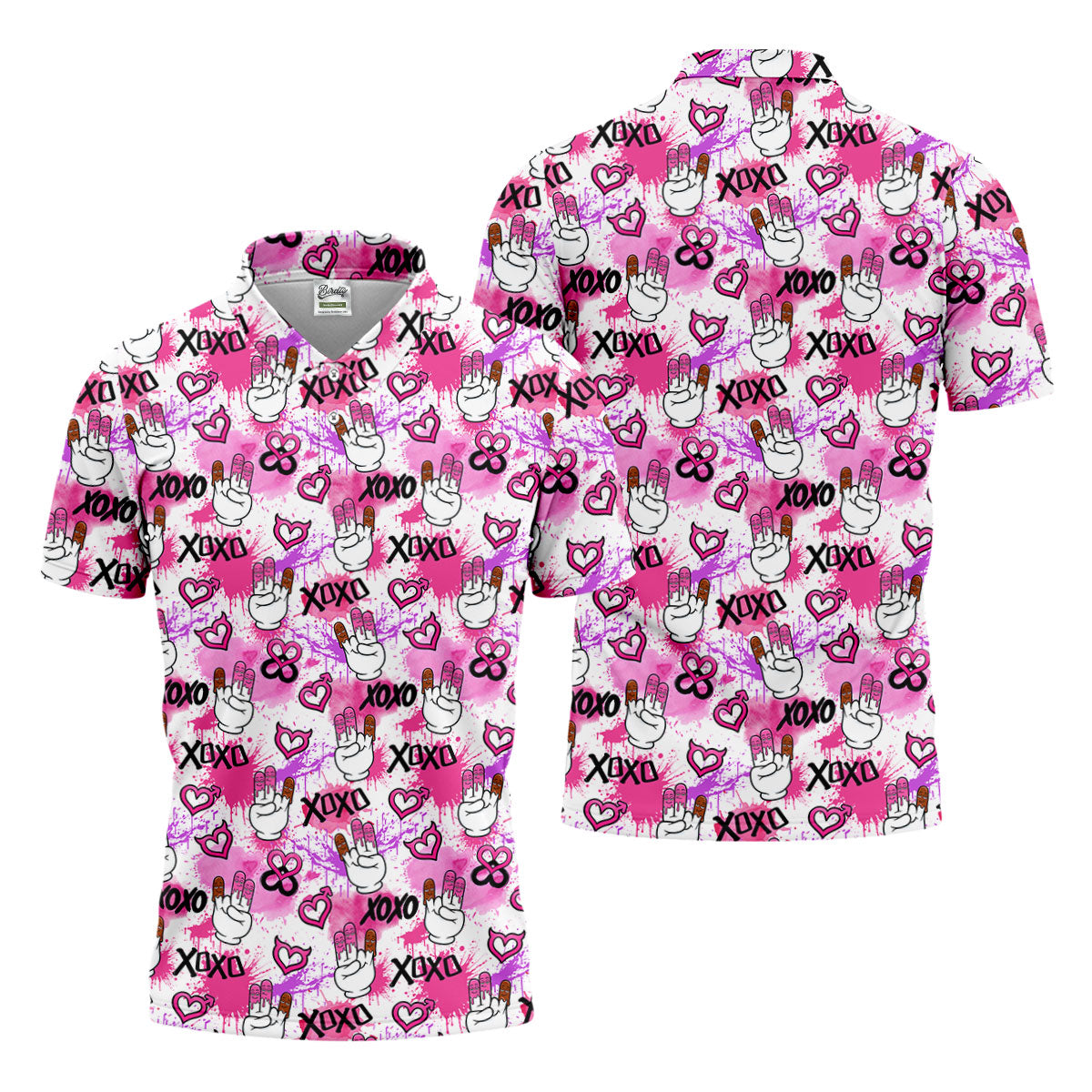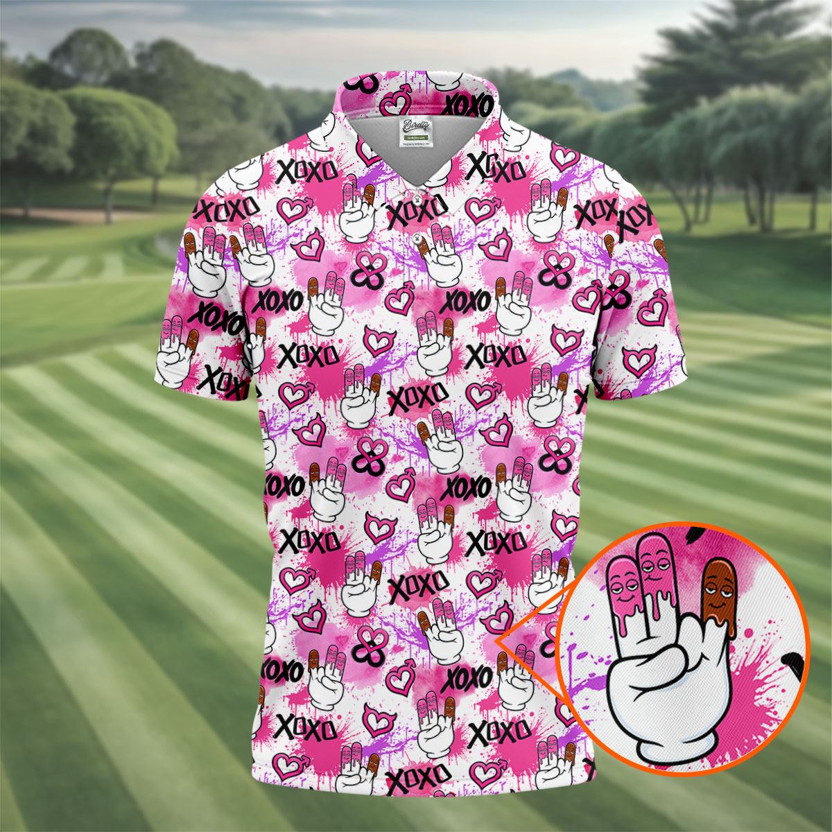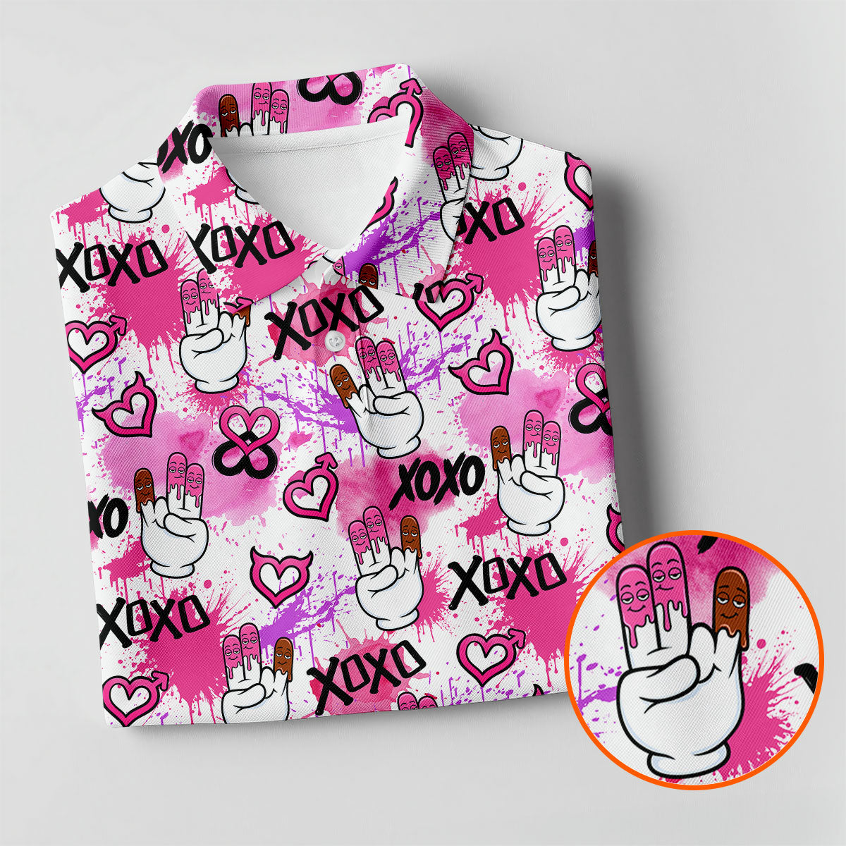 Chocolate Fingers Adult Humor XOXO Pink Splatter Fun Golf Shirts For Men, Valentines Golf Gift, Polo Shirts For Men