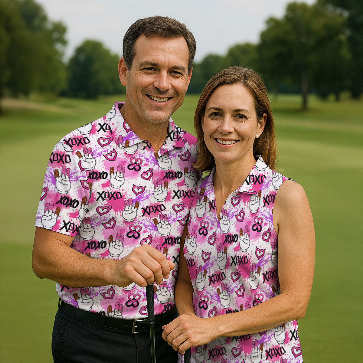 Whether you’re teeing off on Valentine’s Day, playing a couples’ scramble, or just giving your game a little extra heart — this shirt shows up ready to impress.
