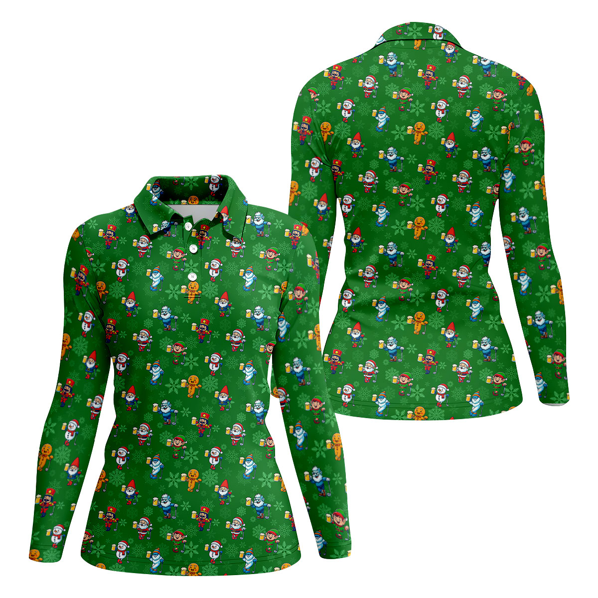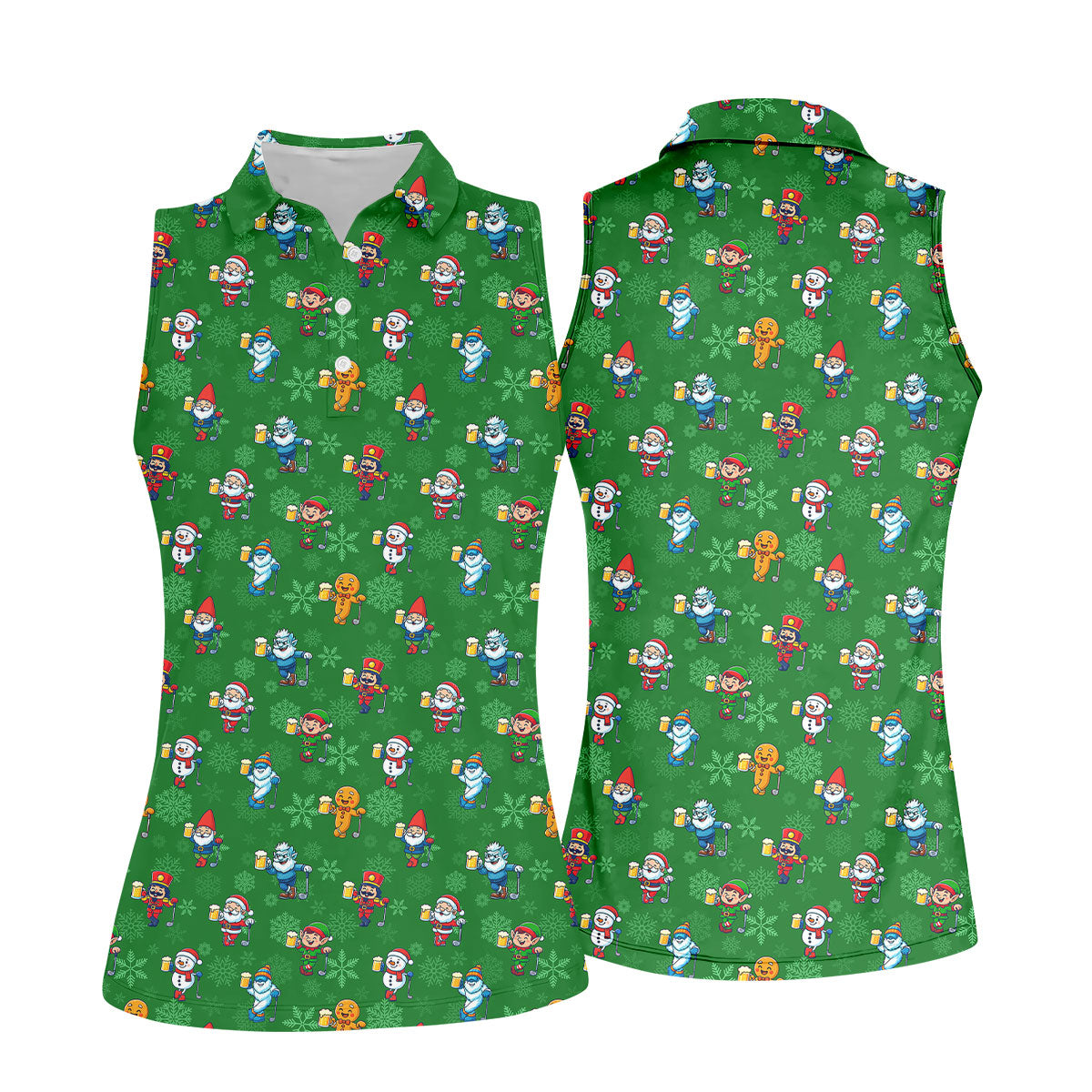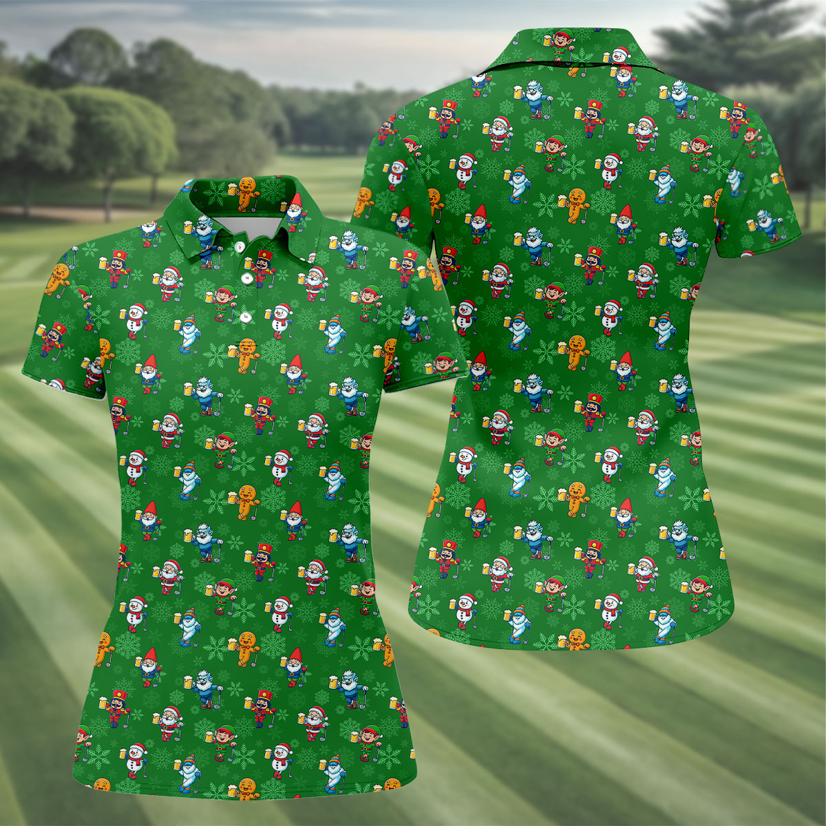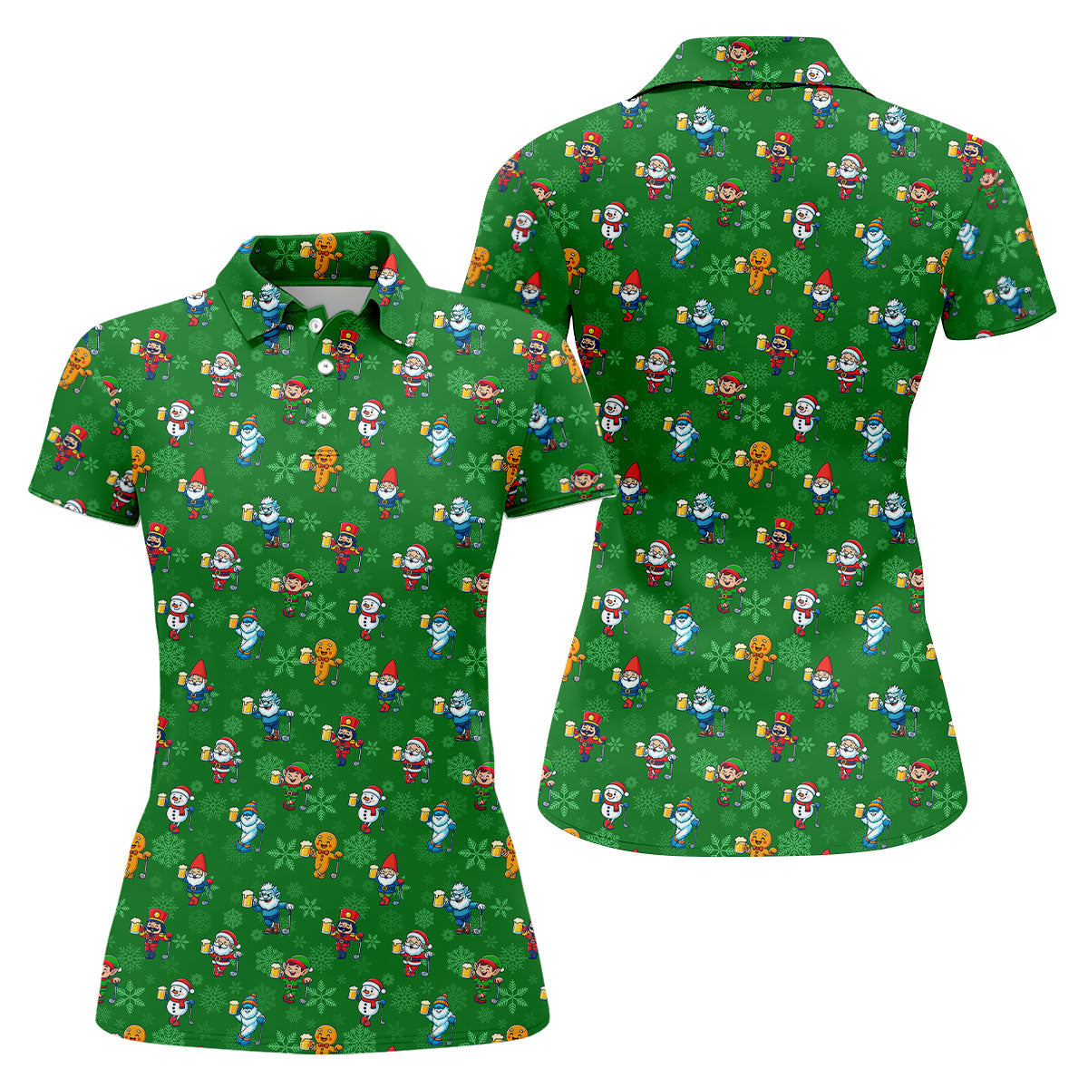 Christmas Characters Golf And Beer Green Women's Funny Golf Shirts, Christmas Golf Shirt, Polo Shirts For Women