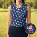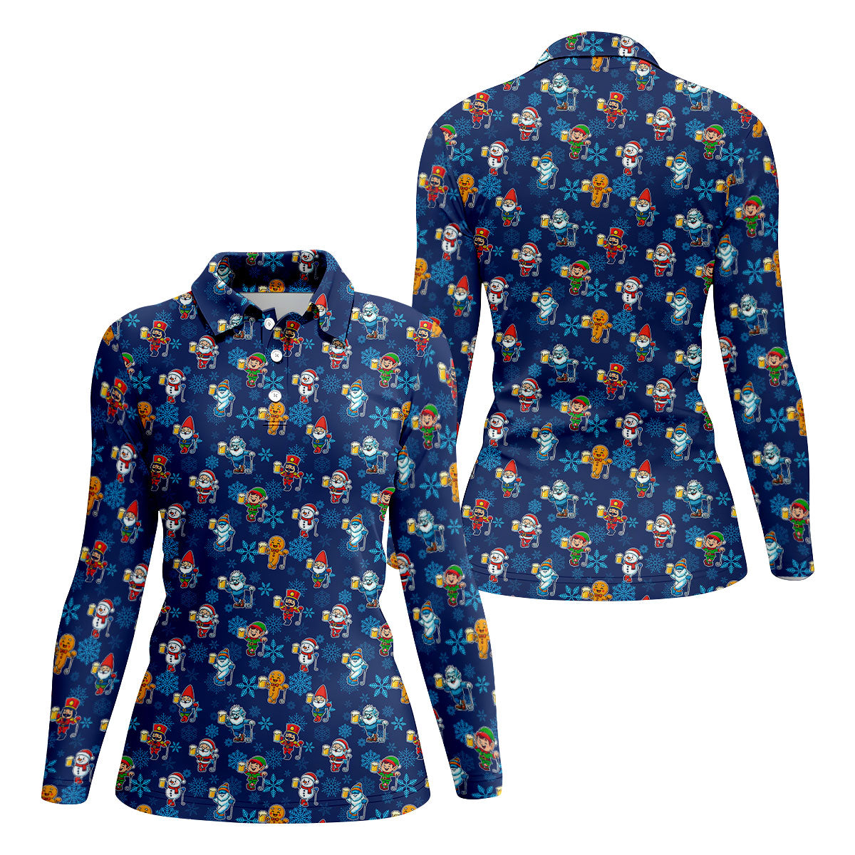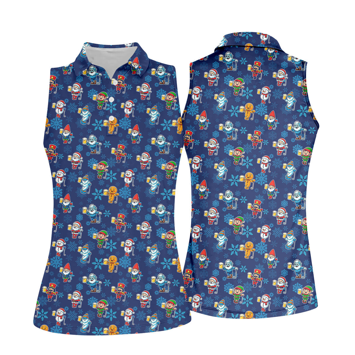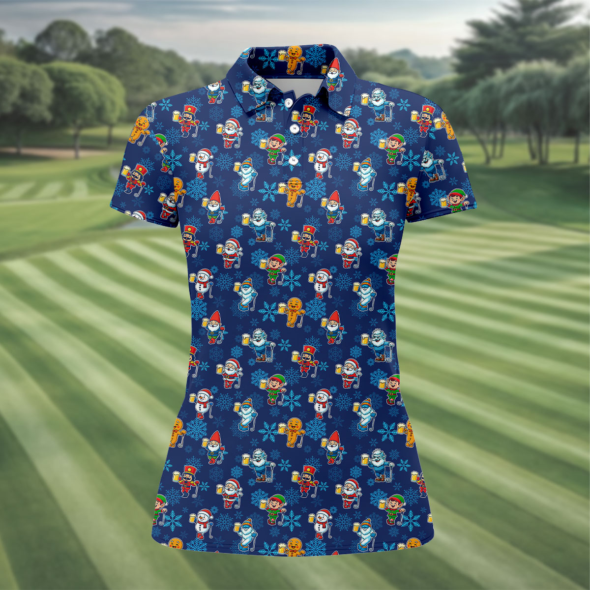 Christmas Characters Golf And Beer Navy Women's Funny Golf Shirts, Christmas Golf Shirt, Polo Shirts For Women