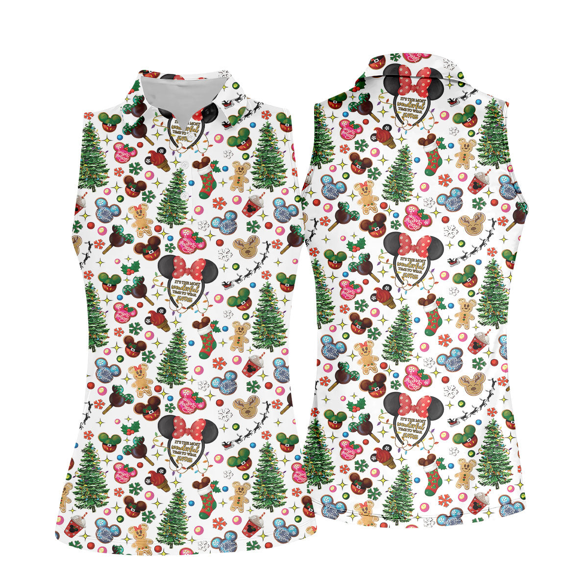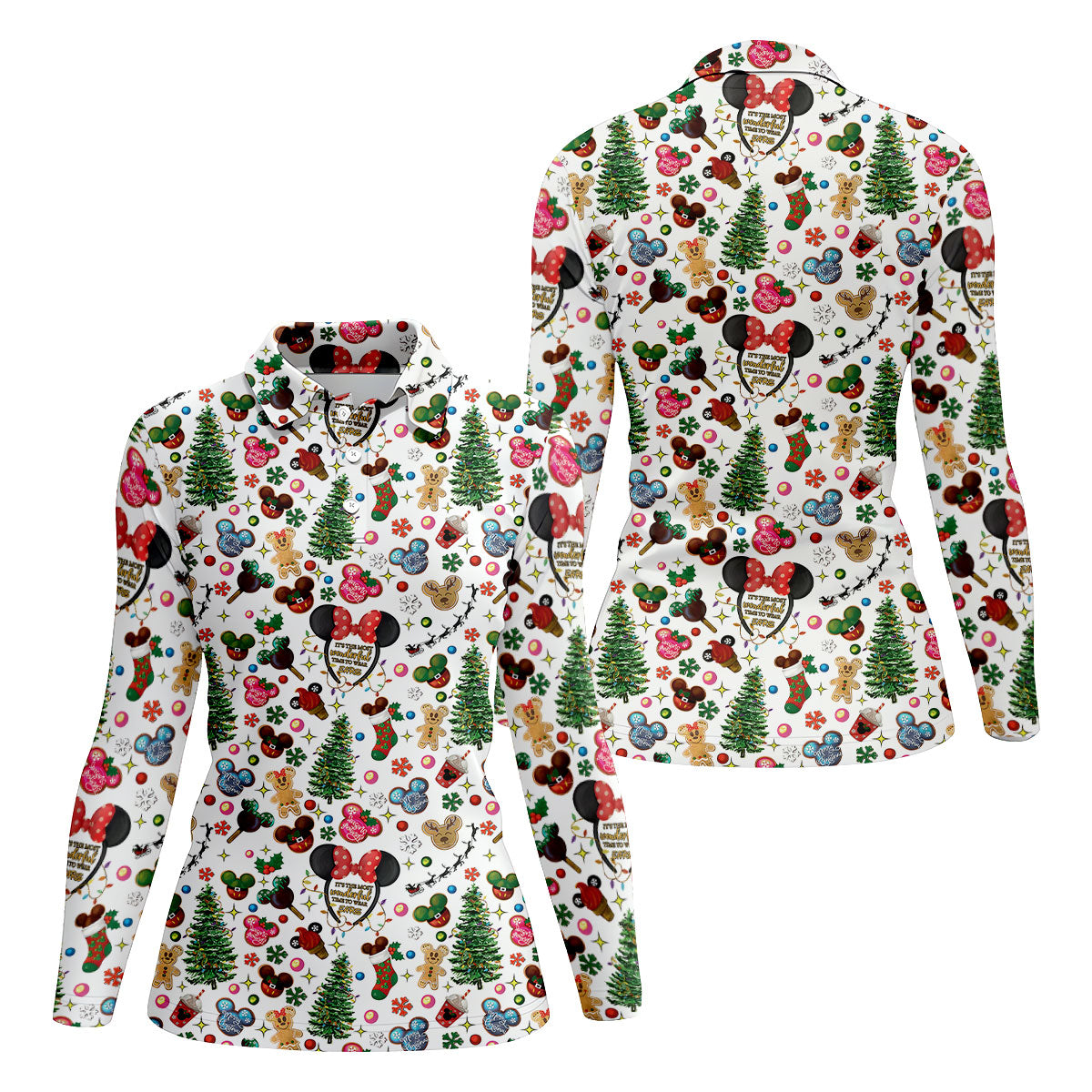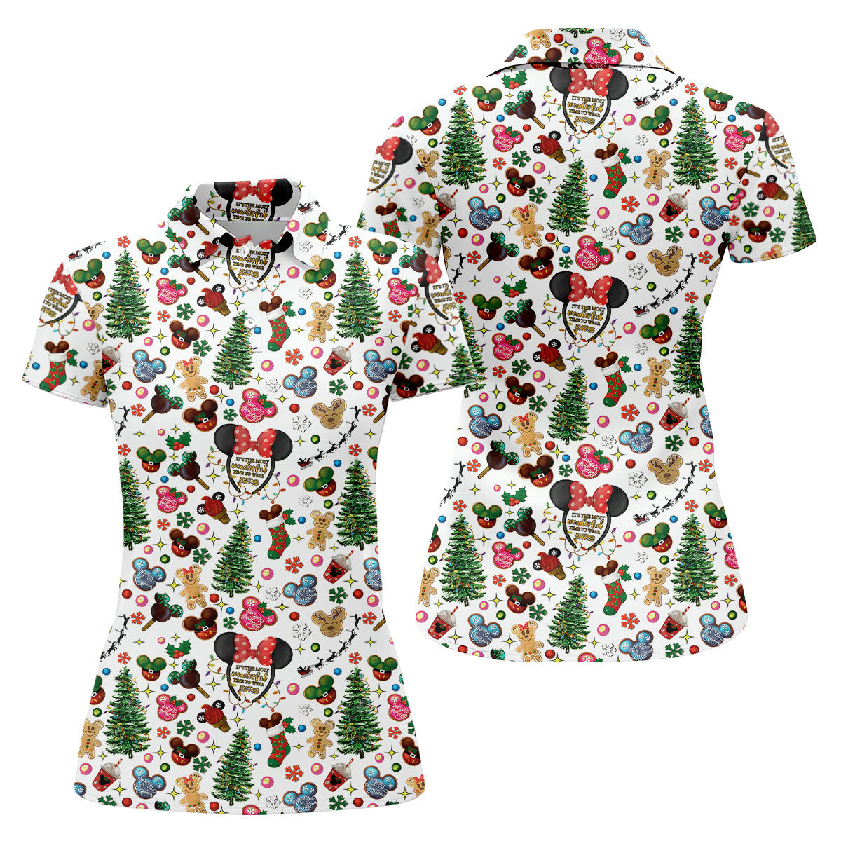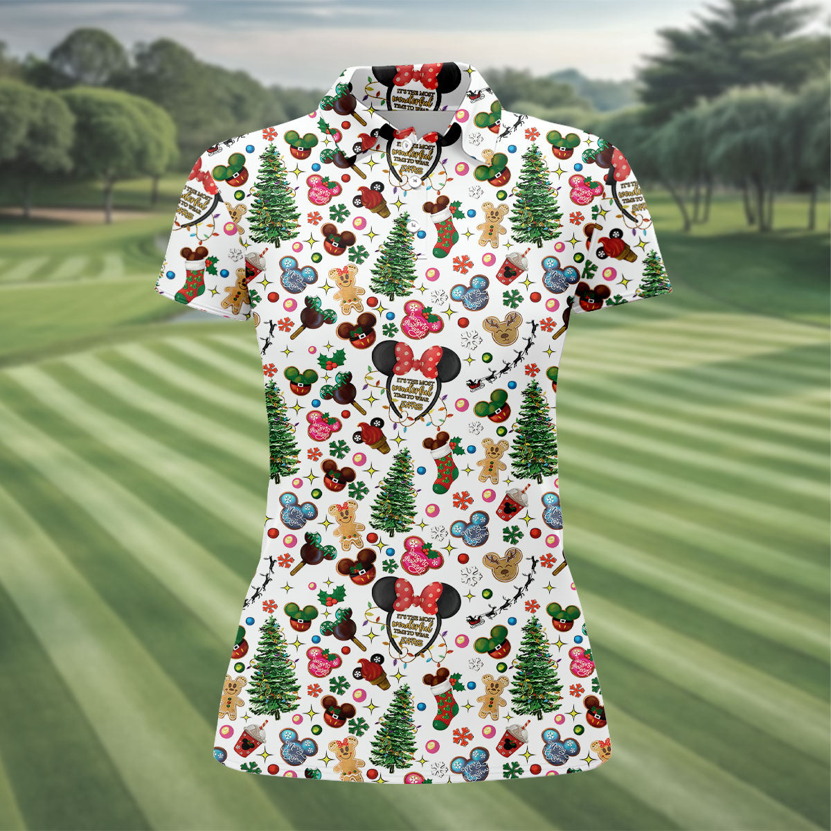 Christmas Cute Pattern Women Golf Top, Cartoon Print Ladies Golf Polos, Christmas Golf Shirt, Golfing Apparel