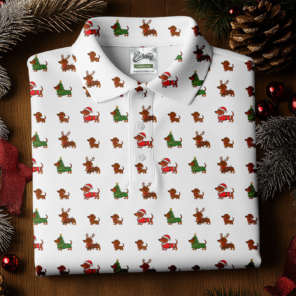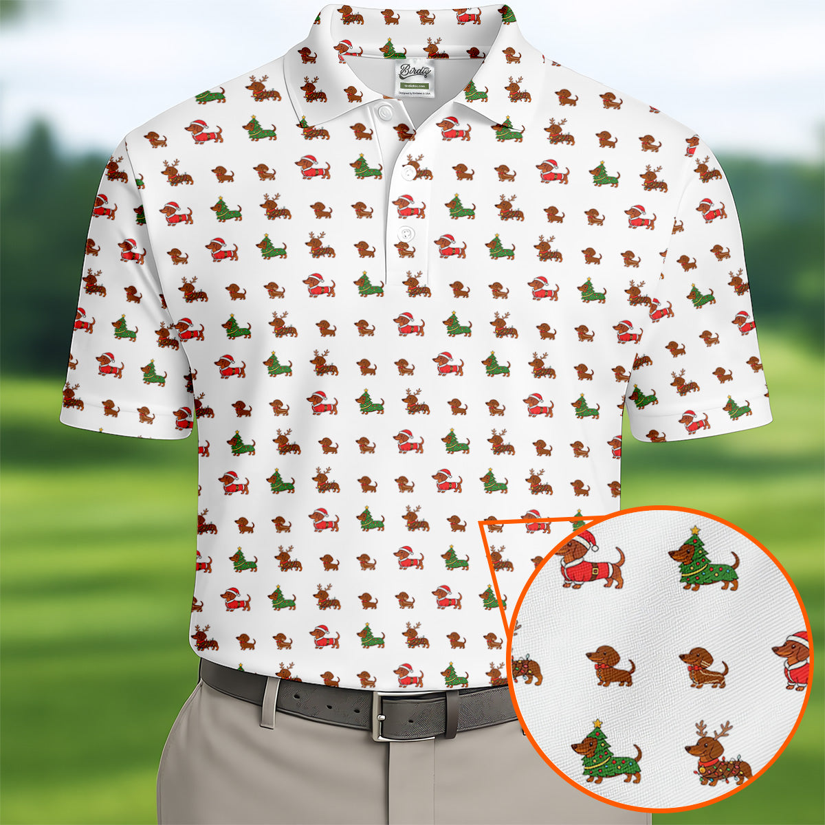 Christmas Dachshund Golf Tops For Men, Christmas Golf Shirt, Polo Shirts For Men, Golf Shirts For Men