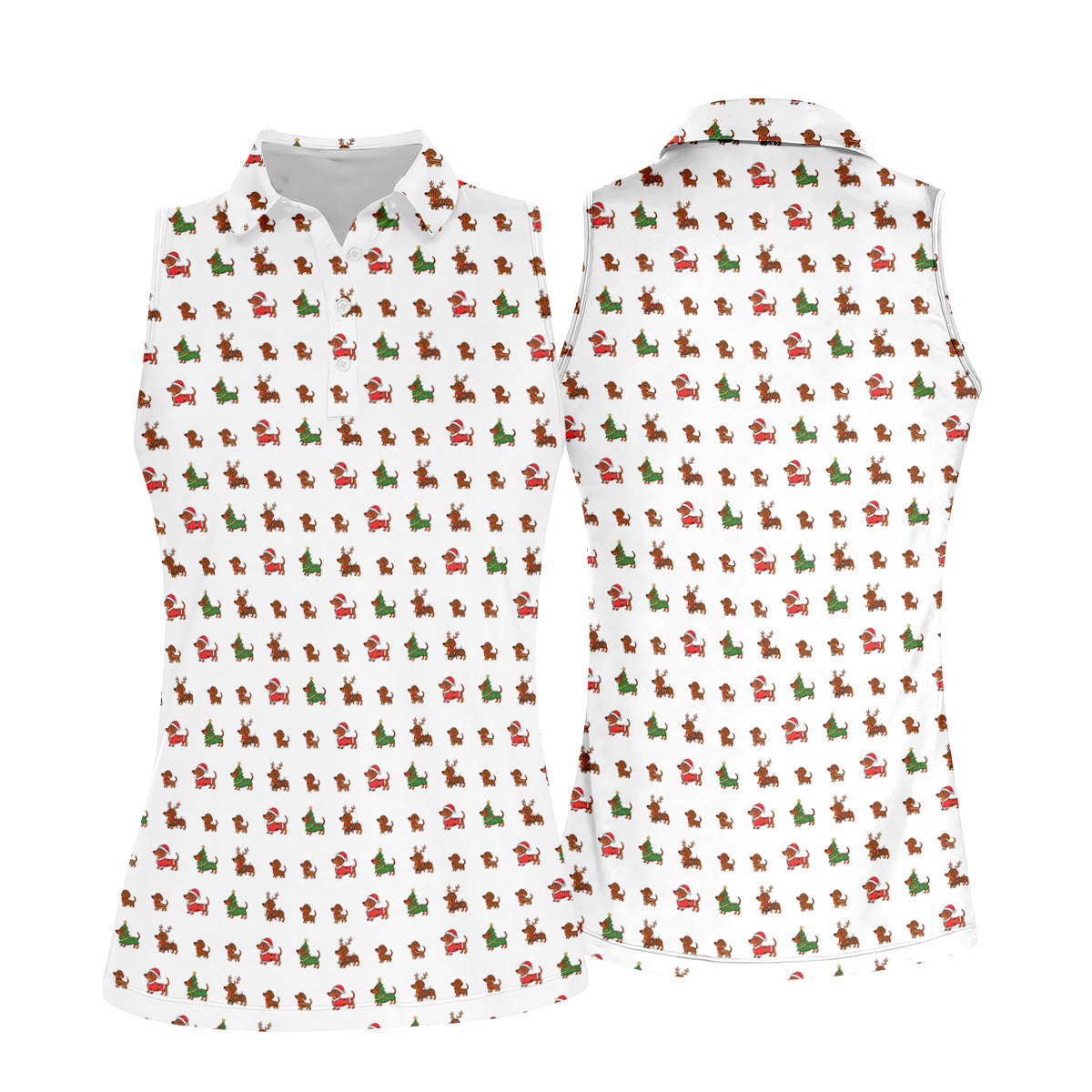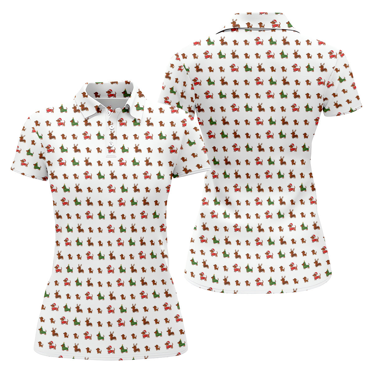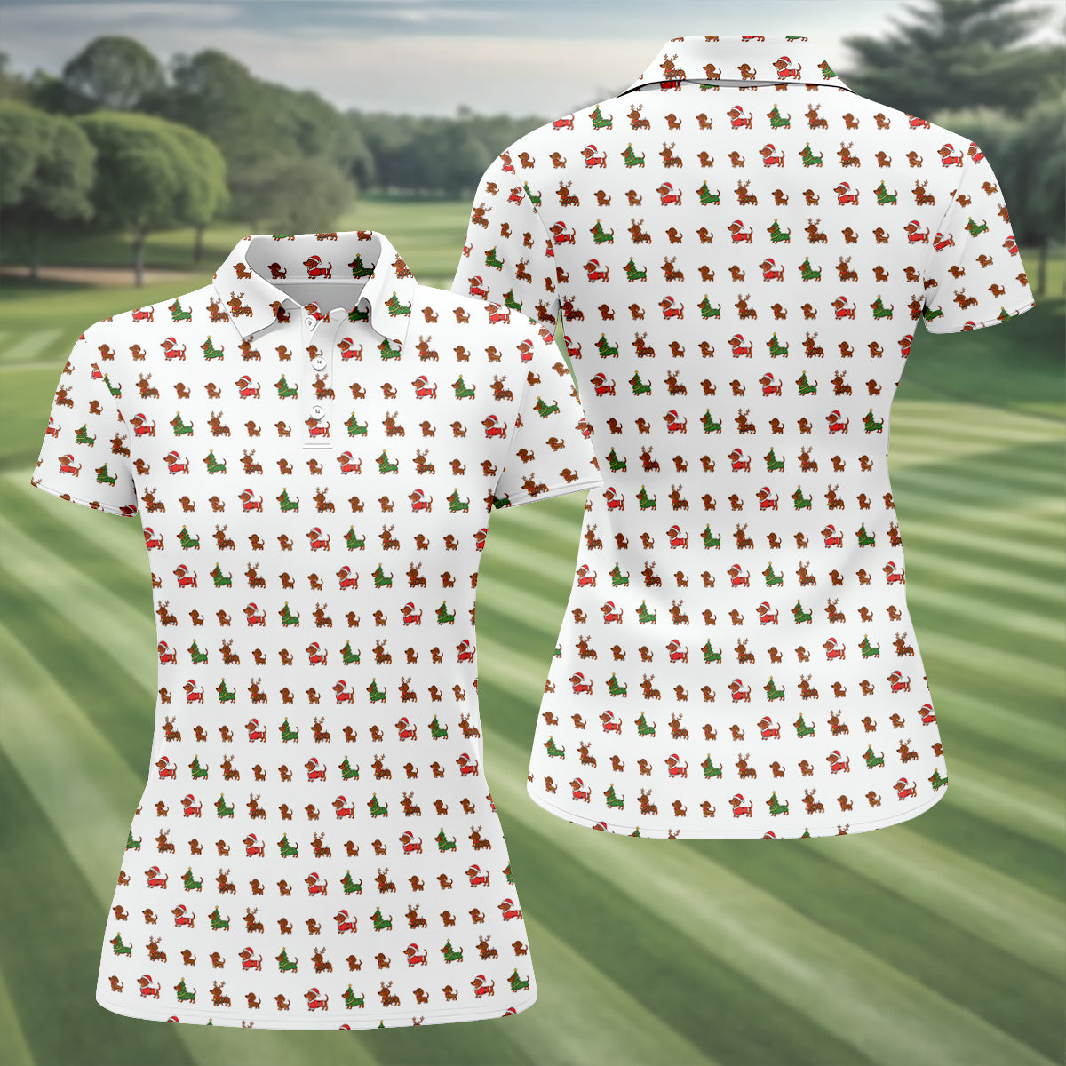 Christmas Dachshund Women's Golf Tops, Christmas Golf Shirt, Ladies Golf Polos, Golfing Apparel