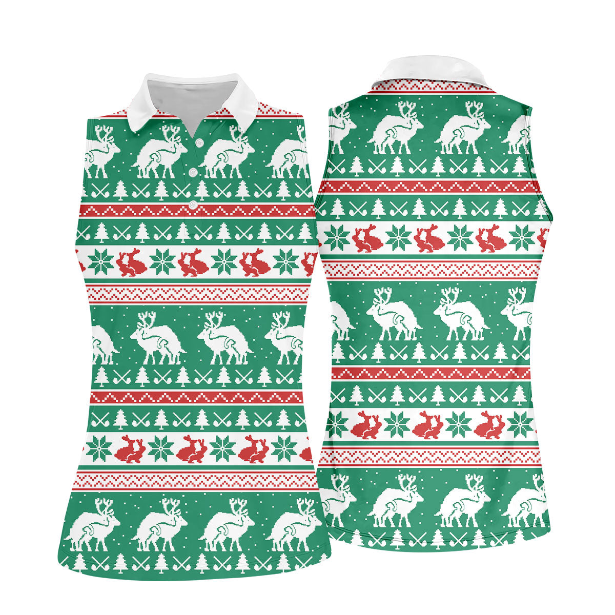 Christmas Festive Reindeer Snowflakes Christmas Golf Shirt, Ladies Golf Shirts, Golf Gifts For Women
