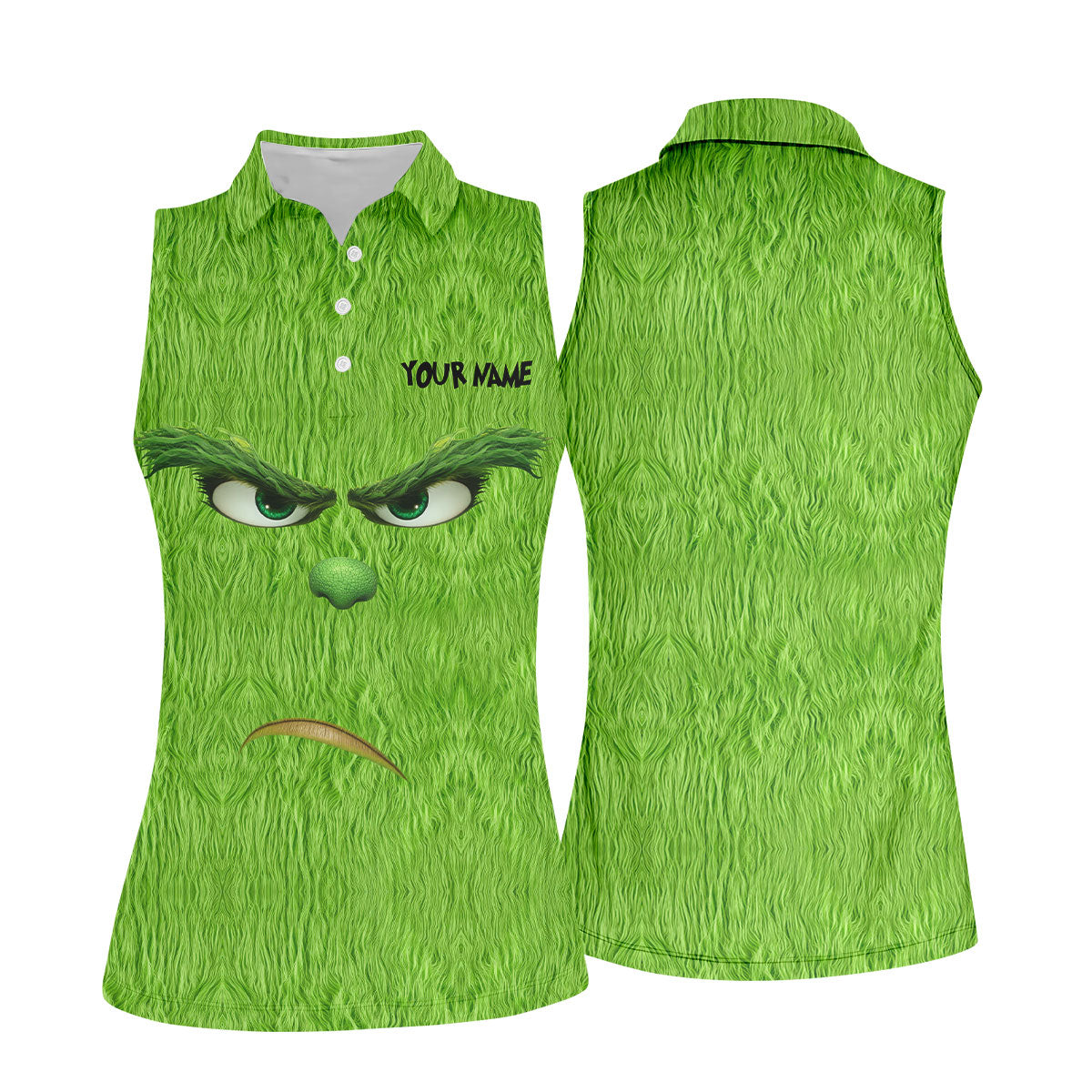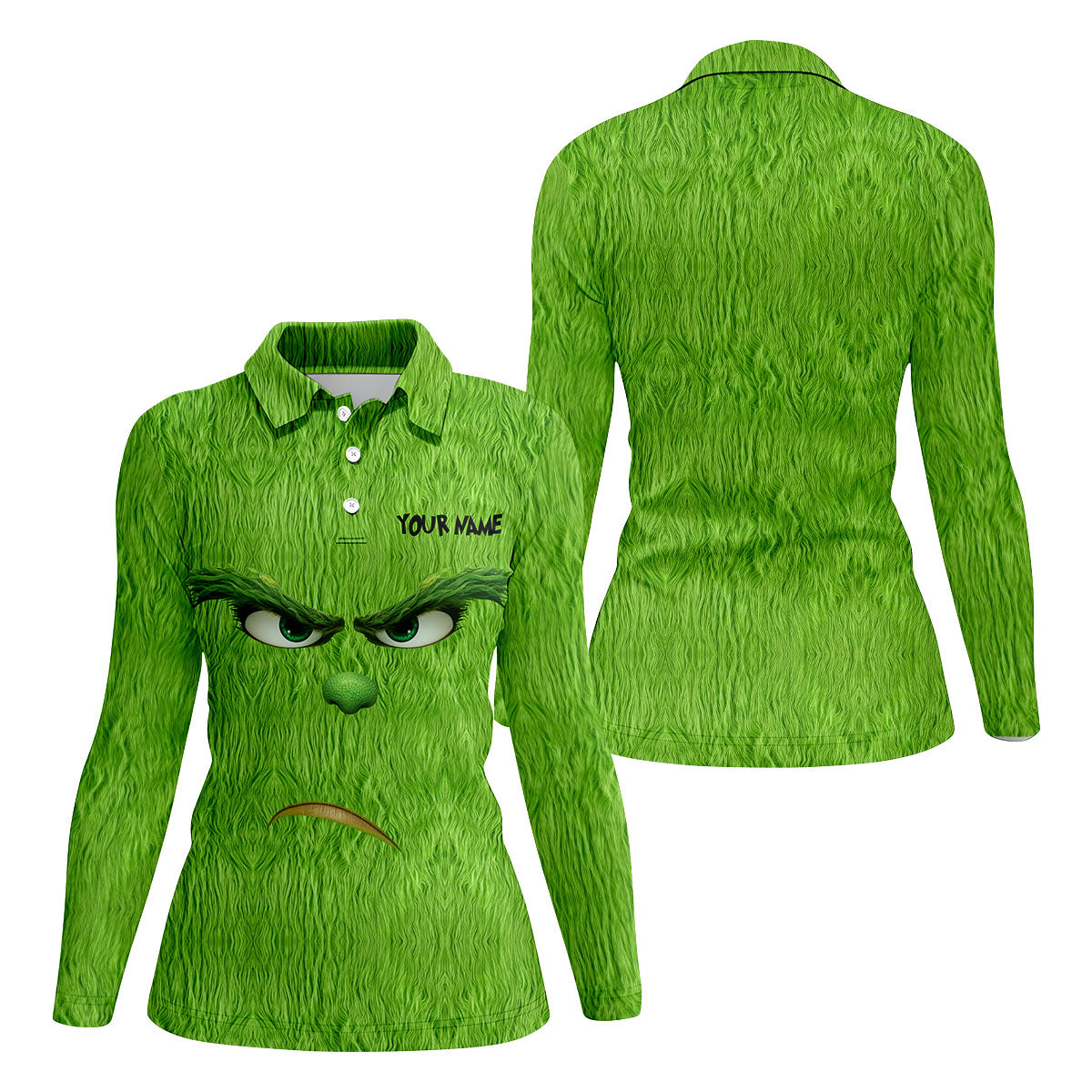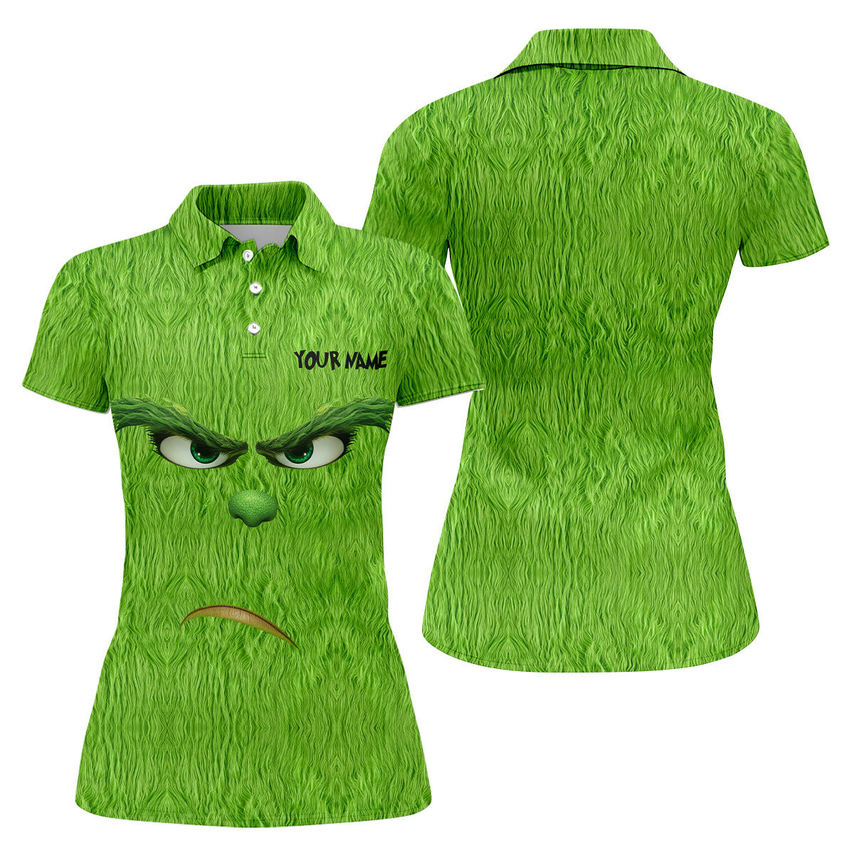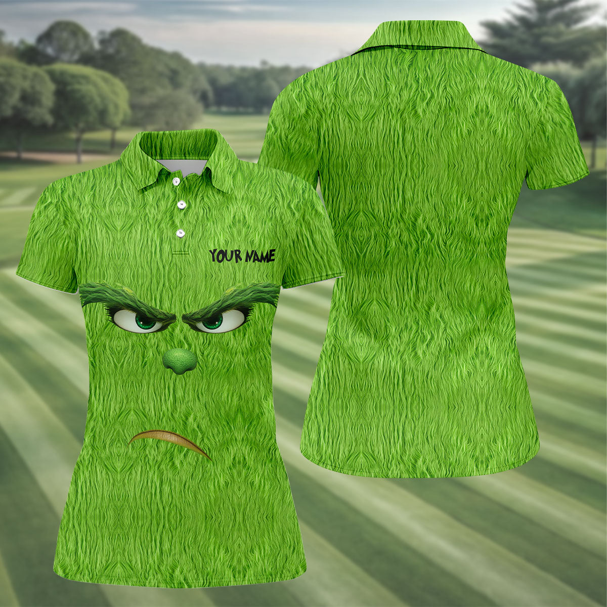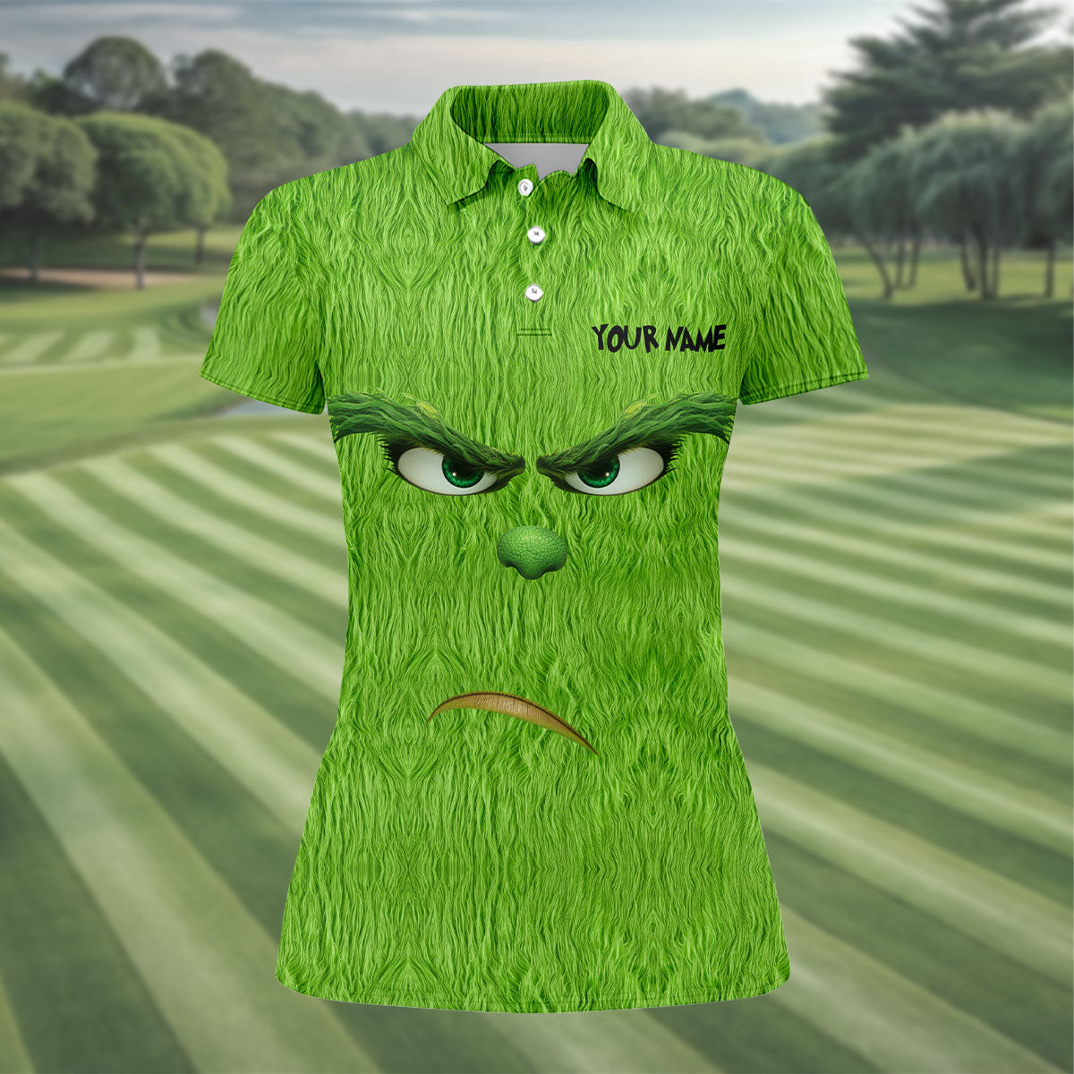 Christmas Monster With Green Fur Print Golf Shirt, Funny Golf Shirts Women, Christmas Golf Shirt