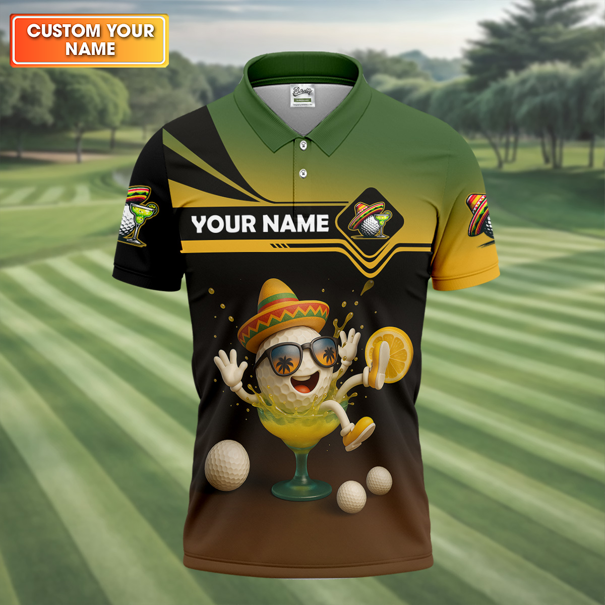 Cinco de Mayo Golf Shirt, Sombrero And Margarita Fun Golf Shirts For Men, Cool Golf Gift, Polo For Men