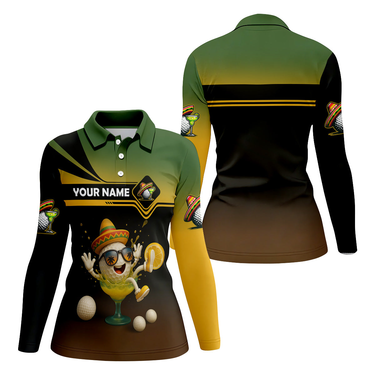 Cinco de Mayo Golf Shirt, Sombrero And Margarita Fun Womens Golf Shirts, Ladies Golf Polos, Cool Golf Gift